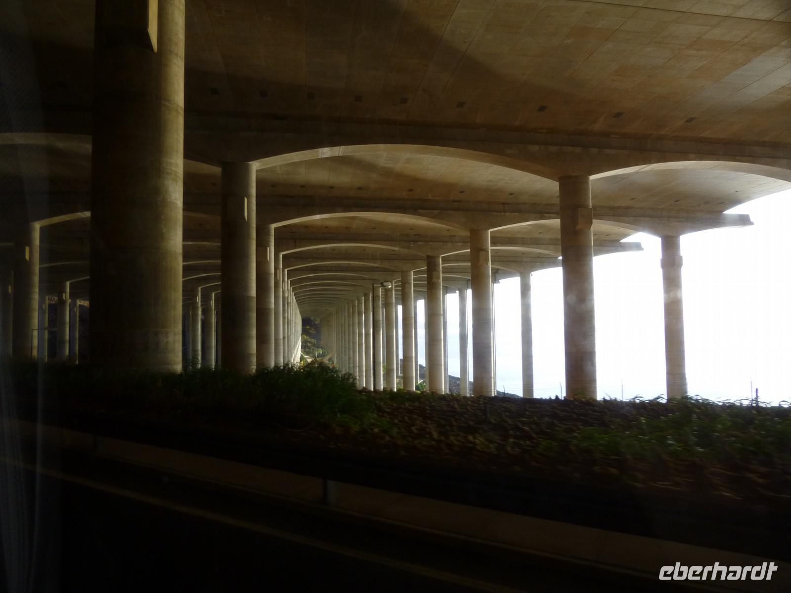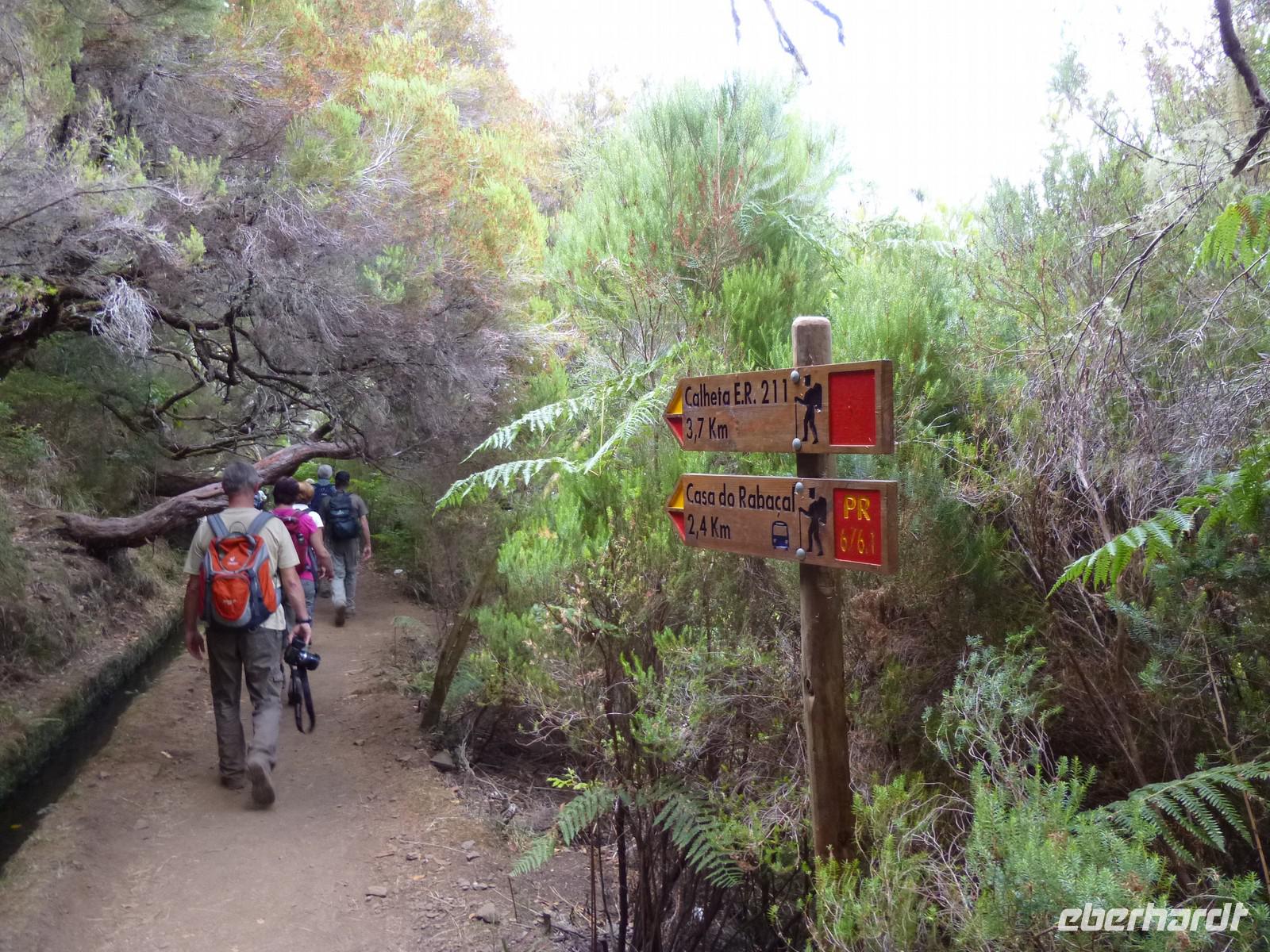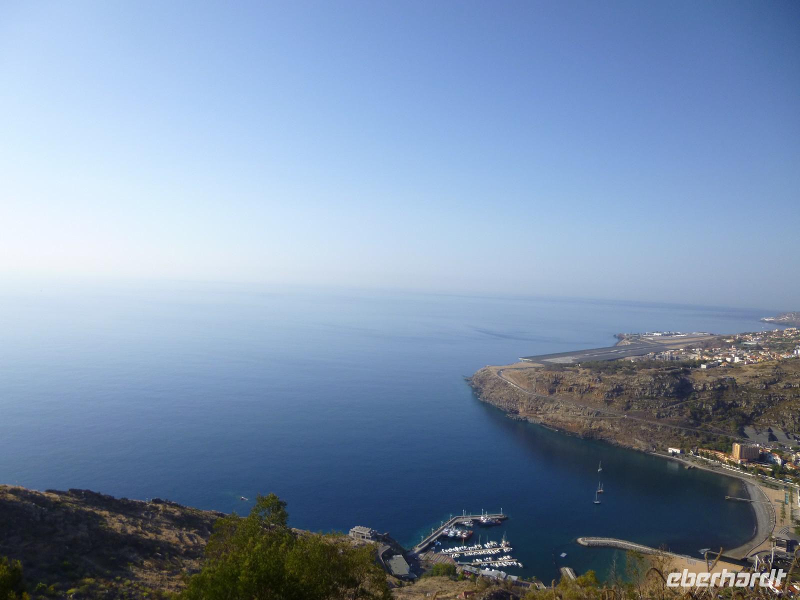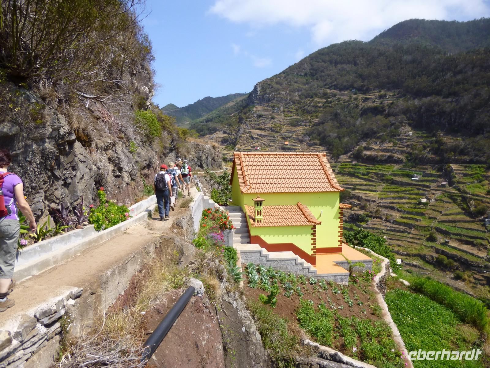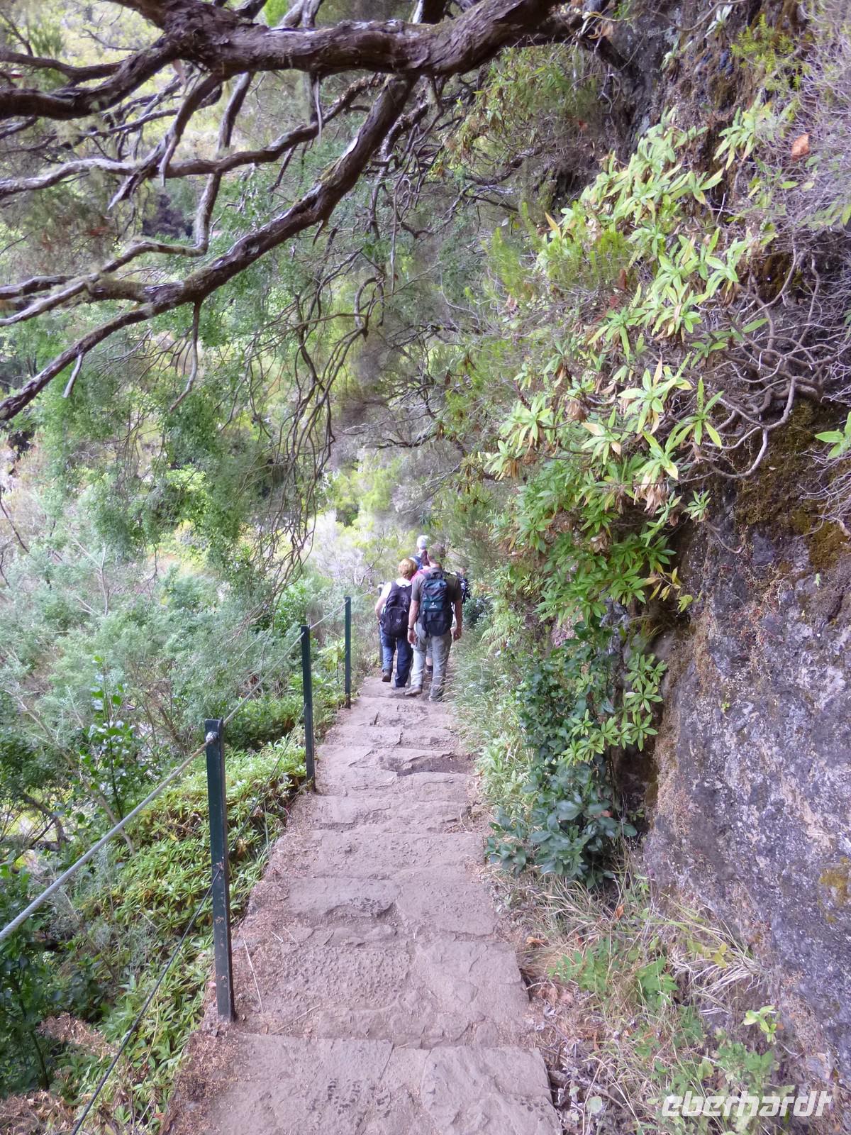 Nach dem Frühstück im Roca Mar, unserem Hotel, holte uns Sergio zur Wanderung ab. Auf der Fahrt zur unser Wanderung unterfuhren wir die Landebahn des Flughafens. Die auf Säulen gestützte Verlängerung der Bahn ist ein imposantes Bauwerk und erweitert den Flughafen zum dritten Mal in seiner Geschichte. Unser erster Stopp galt der Mittagsverpflegung. Dazu besuchten wir einen Supermarkt in dem sich jeder mit Snacks eindecken konnte. Der Wanderweg selbst führte immer entlang einer Levada - einem Bewässerungskanal. Sergio pausierte dabei immer wieder, um uns über die einheimischen Pflanzen zu informieren. Dazu zählen Pimpinella, Zuckerapfel, Zuckerrohr, Weintrauben Lorbeerbäume und viele weitere. Ungefähr in der Hälfte der Wanderung pausierten wir in einem Cafe. Entlang des gesamten Weges boten sich immer wieder fantastische Ausblicke auf das Tal. Sergio erklärte uns das Bewässerungssystem, seine Bedeutung für Madeira und seine Pflege. Lavadeure, die „Manager" der Kanäle, verteilen das Wasser indem sie Schleusen öffnen und schließen, sie säubern diese und beseitigen Schäden. Am Ende der Wanderung wartete unser Busfahrer schon auf uns und brachte uns nach Machico. Im Ort hatten wir Zeit um uns die Promenade, den goldgelben Sandstrand und das Stadtzentrum anzuschauen oder einfach ein Eis zu genießen. Wieder am Hotel angekommen verabredete ich mich mit den Gästen zu Abendessen. Einige nutzten aber auch die Möglichkeit sich selbst umzuschauen.