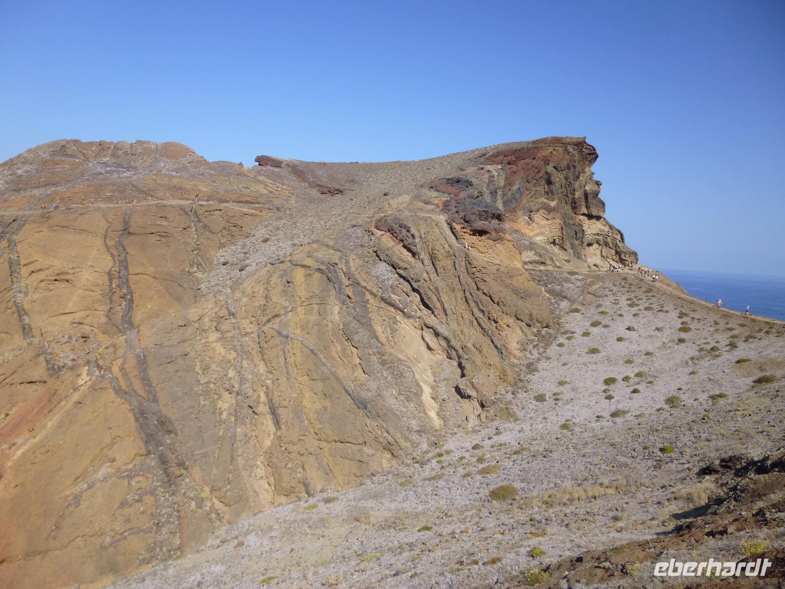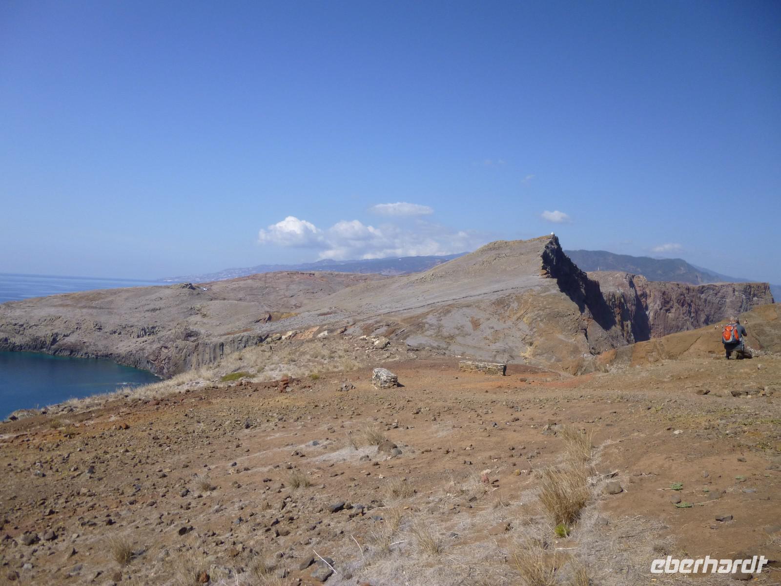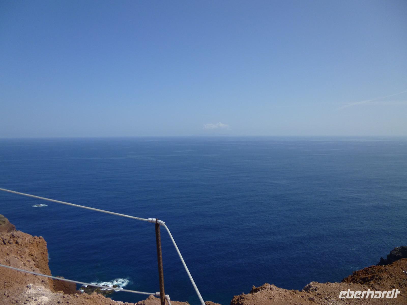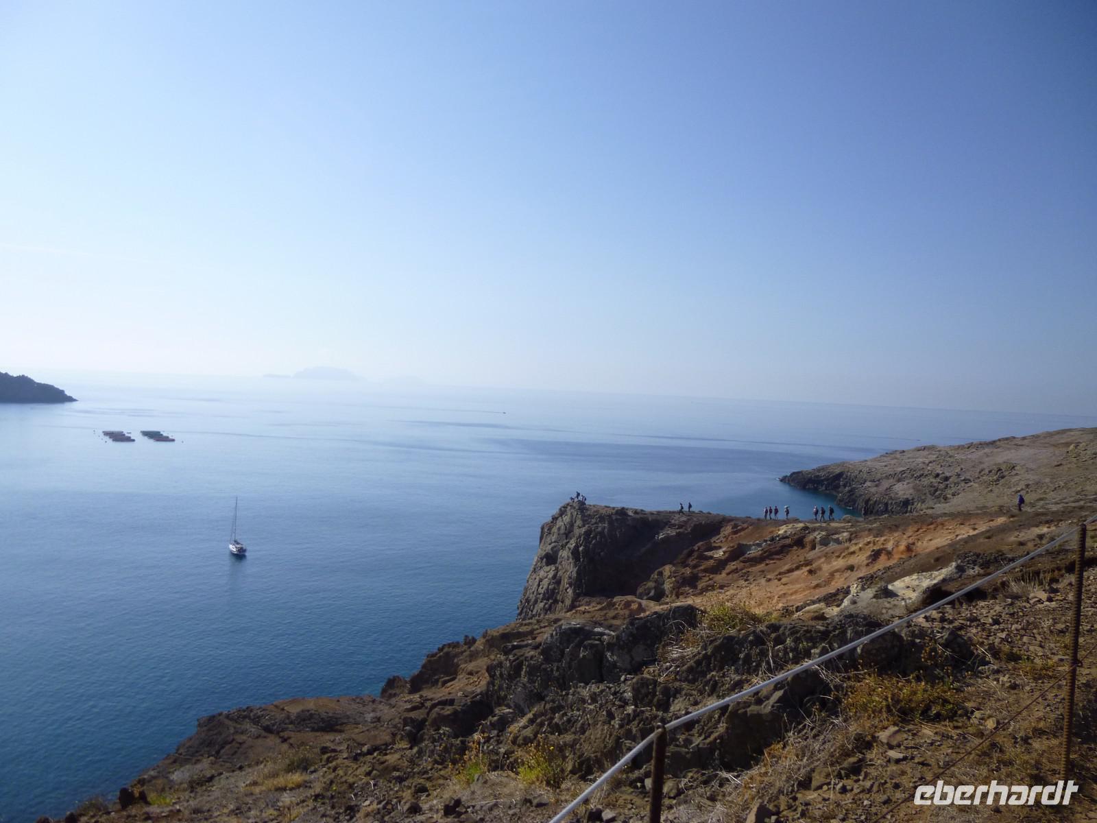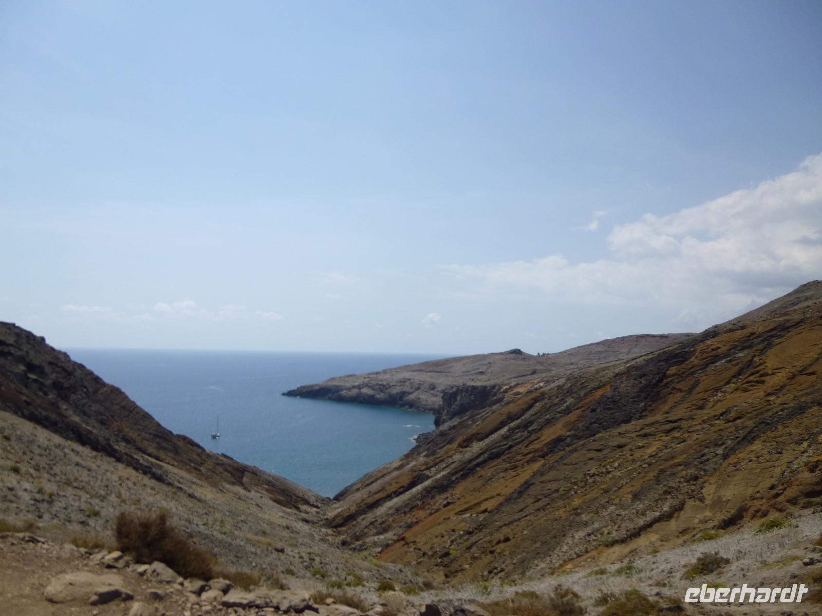 Heute fuhren wir mit Sergio in den Osten der Insel. Nach einem Zwischenstopp im Supermarkt in Santa Cruz begann unsere Wanderung um 10 Uhr. Die Gegend ist im Gegensatz zu den Lavadagebieten karg und trocken, aber genau das machte den Reiz der Halbinsel aus. Auch heute war es sehr heiß, wir legten immer wieder kleine Pausen um etwas zu trinken. Sergio erklärt uns die Gesteinsformationen an den Klippen, was uns gut gefiel. Auch der Blick über die Insel und auf das Meer weckte unser Interesse. An der Casa Sardinha angekommen, entschieden sich einige Gäste mit mir, den Gipfel des Tunnelberges zu ersteigen. Der andere Teil der Gruppe ging mit Sergio an einen kleinen Strandabschnitt. Ein Teil nutzte die Gelegenheit, um sich im Wasser etwas abzukühlen. Der Rückweg führte uns wieder zum Bus, der uns nach Carnisal brachte. Wir besuchten alle in das Cafe Amarelo und erholten uns bei einem Getränk von den Strapazen. Nach einiger Freizeit im Ort fuhren wir zurück zum Hotel.