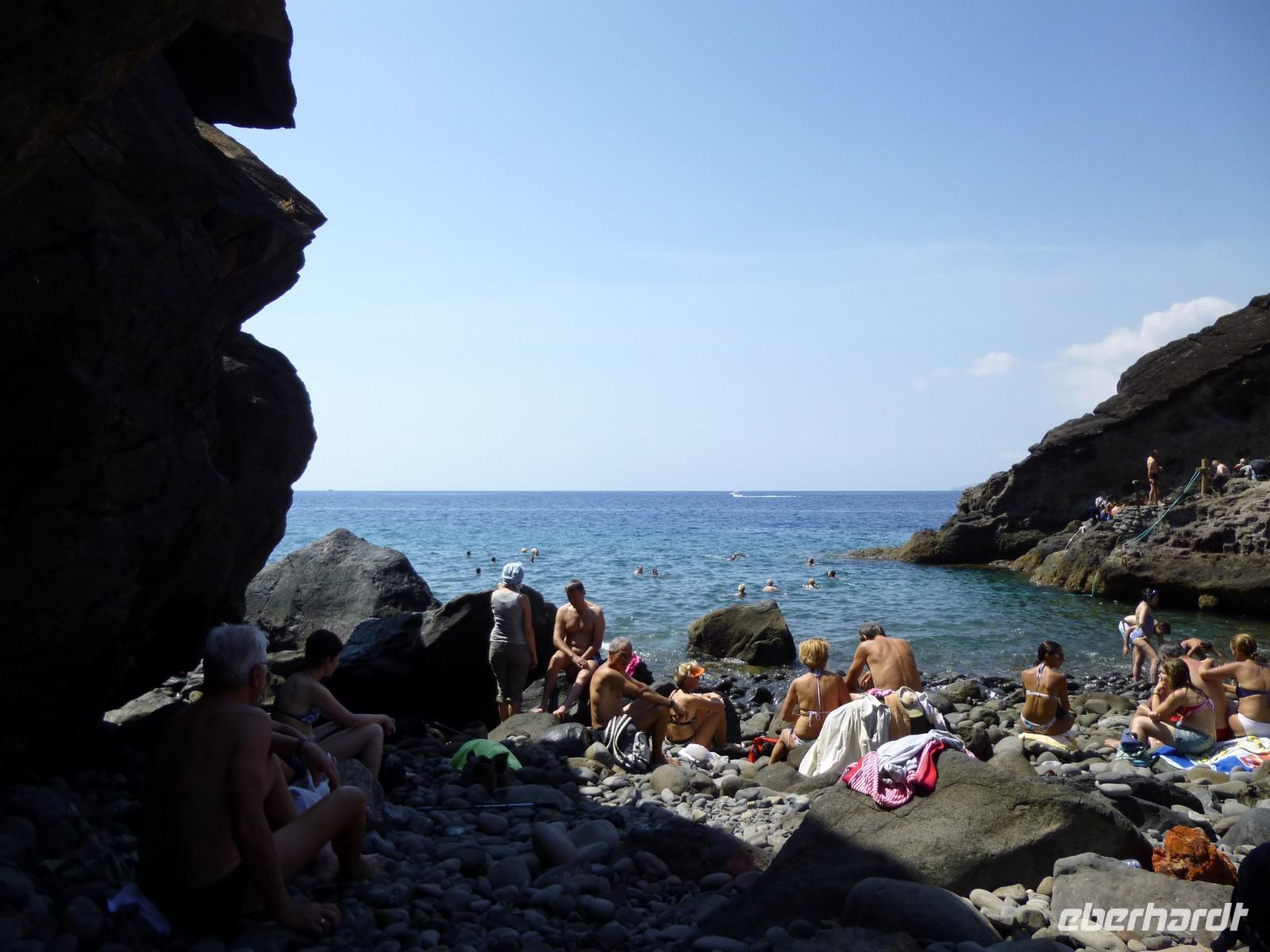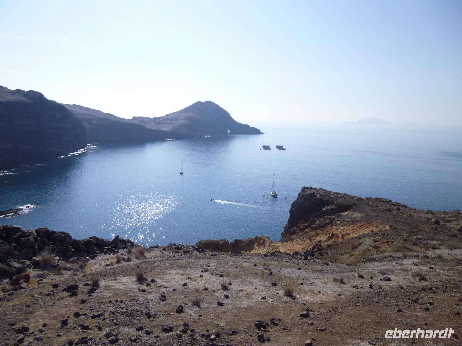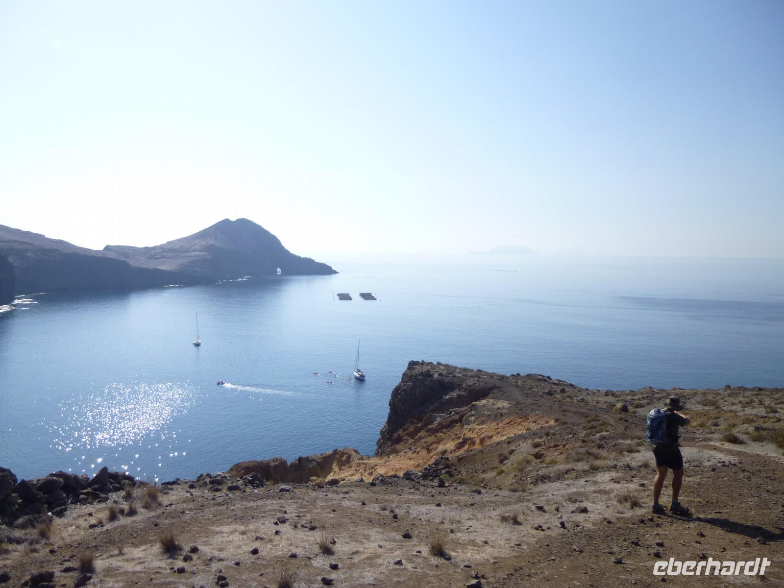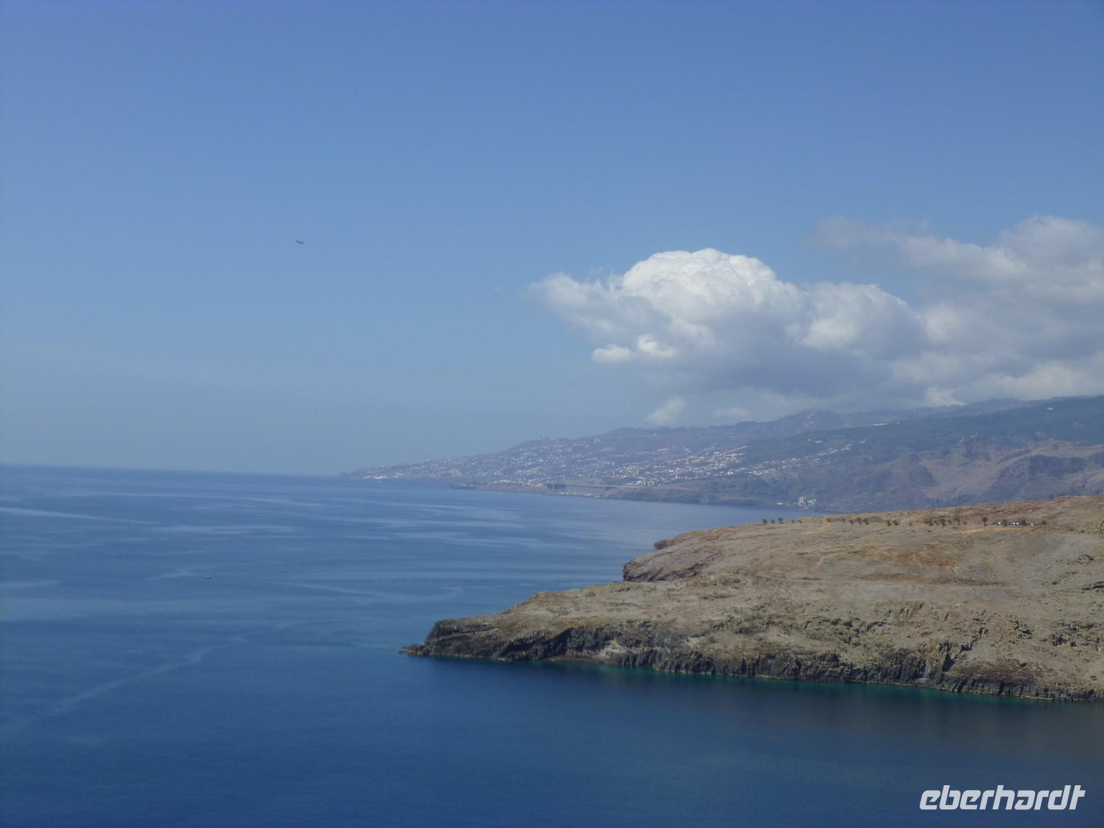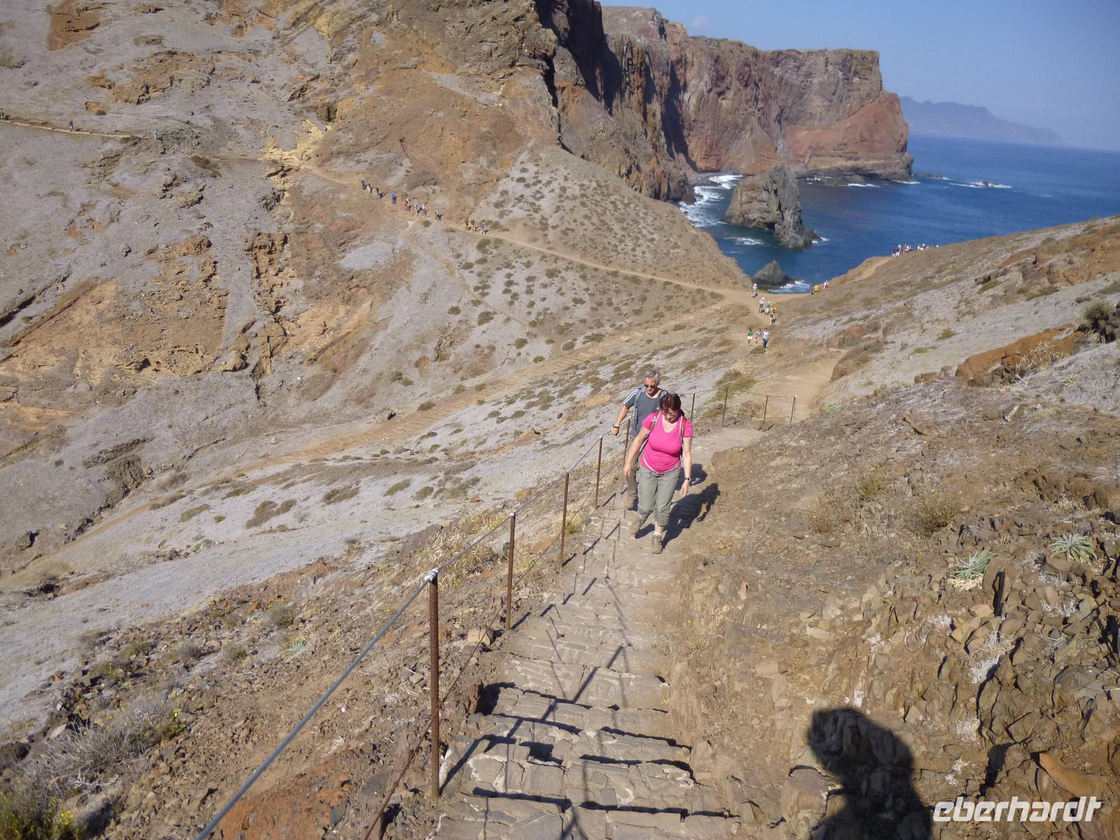Heute fuhren wir mit Sergio in den Osten der Insel. Nach einem Zwischenstopp im Supermarkt in Santa Cruz begann unsere Wanderung um 10 Uhr. Die Gegend ist im Gegensatz zu den Lavadagebieten karg und trocken, aber genau das machte den Reiz der Halbinsel aus. Auch heute war es sehr heiß, wir legten immer wieder kleine Pausen um etwas zu trinken. Sergio erklärt uns die Gesteinsformationen an den Klippen, was uns gut gefiel. Auch der Blick über die Insel und auf das Meer weckte unser Interesse. An der Casa Sardinha angekommen, entschieden sich einige Gäste mit mir, den Gipfel des Tunnelberges zu ersteigen. Der andere Teil der Gruppe ging mit Sergio an einen kleinen Strandabschnitt. Ein Teil nutzte die Gelegenheit, um sich im Wasser etwas abzukühlen. Der Rückweg führte uns wieder zum Bus, der uns nach Carnisal brachte. Wir besuchten alle in das Cafe Amarelo und erholten uns bei einem Getränk von den Strapazen. Nach einiger Freizeit im Ort fuhren wir zurück zum Hotel.