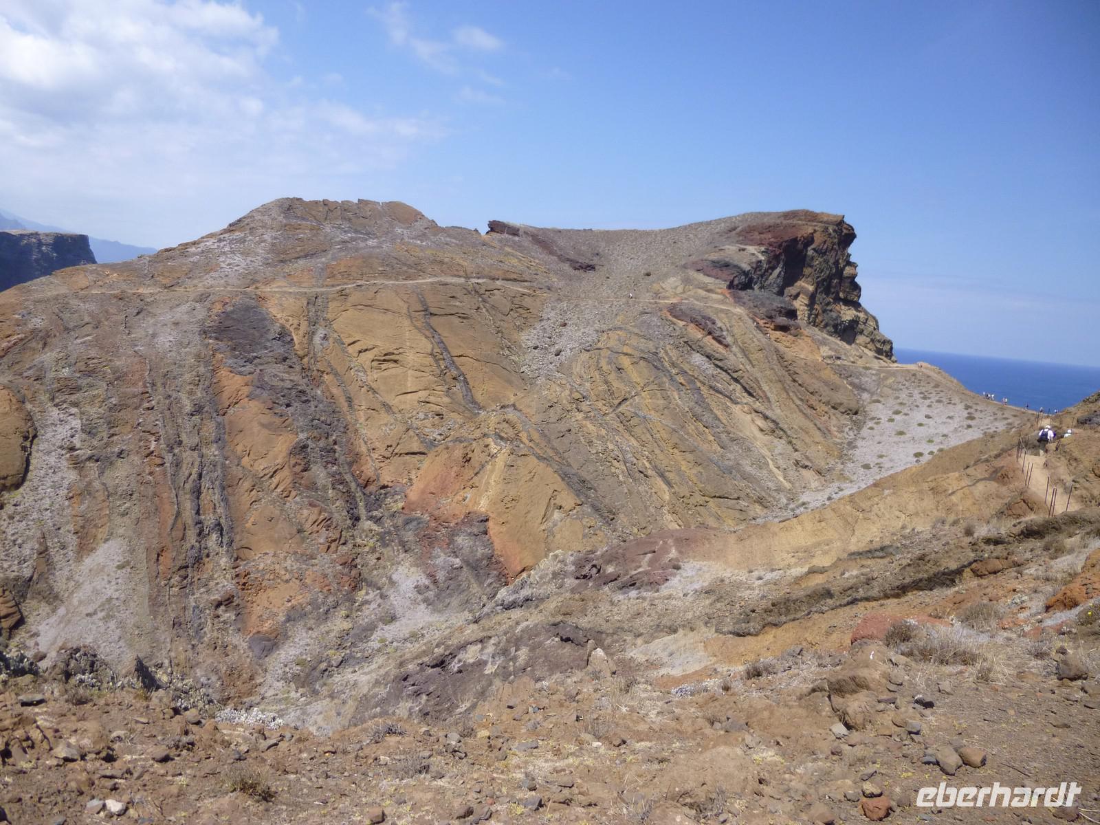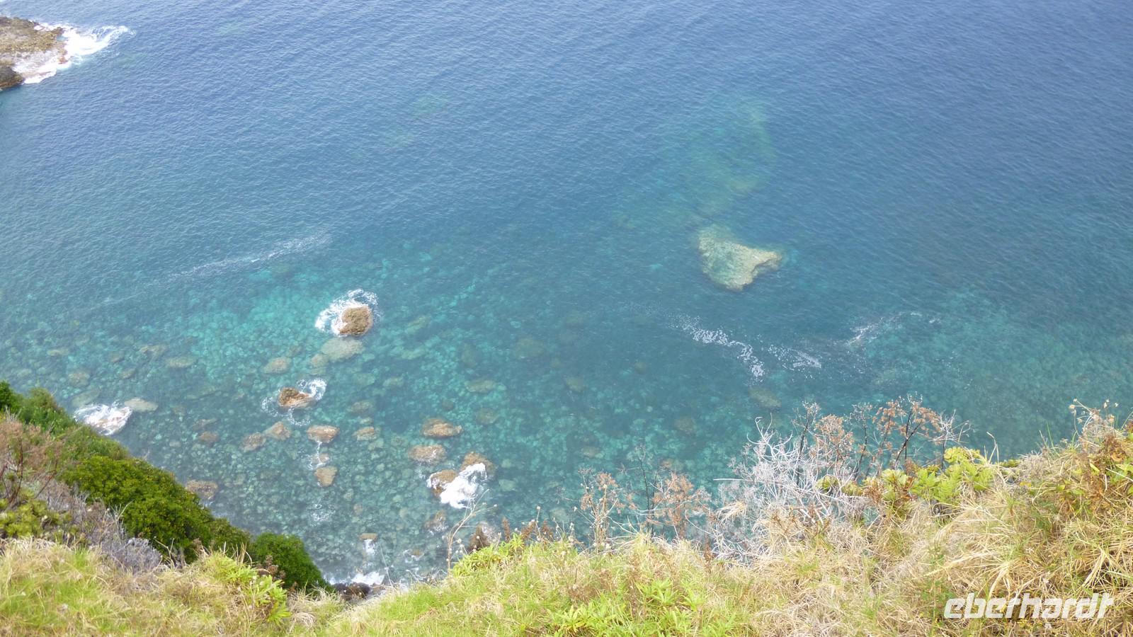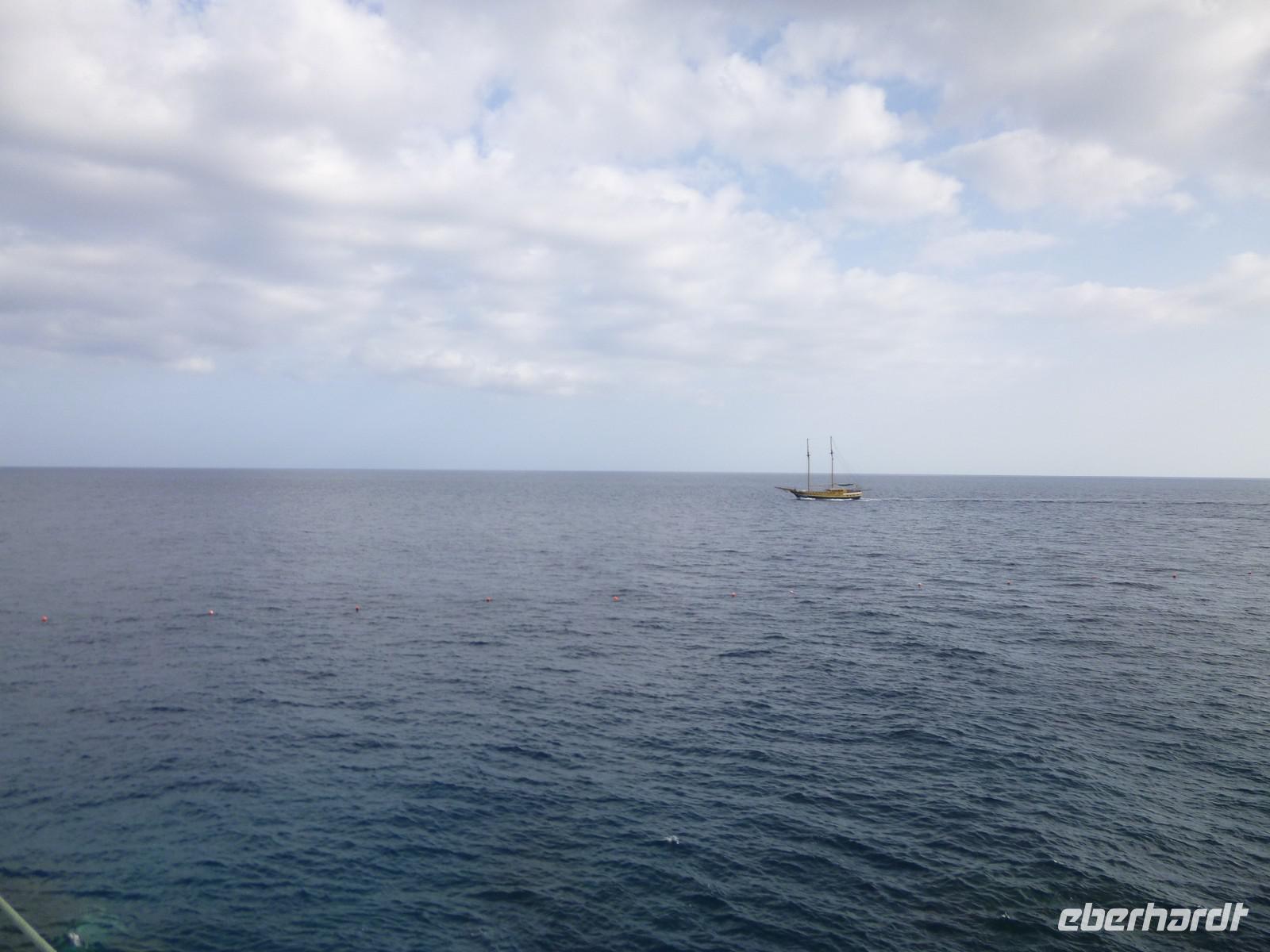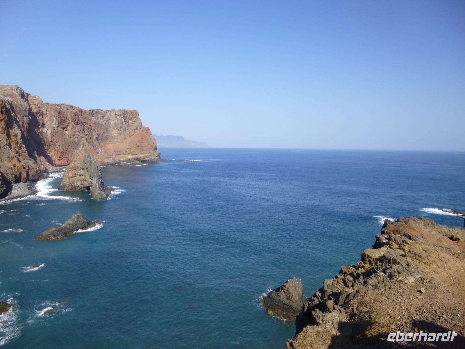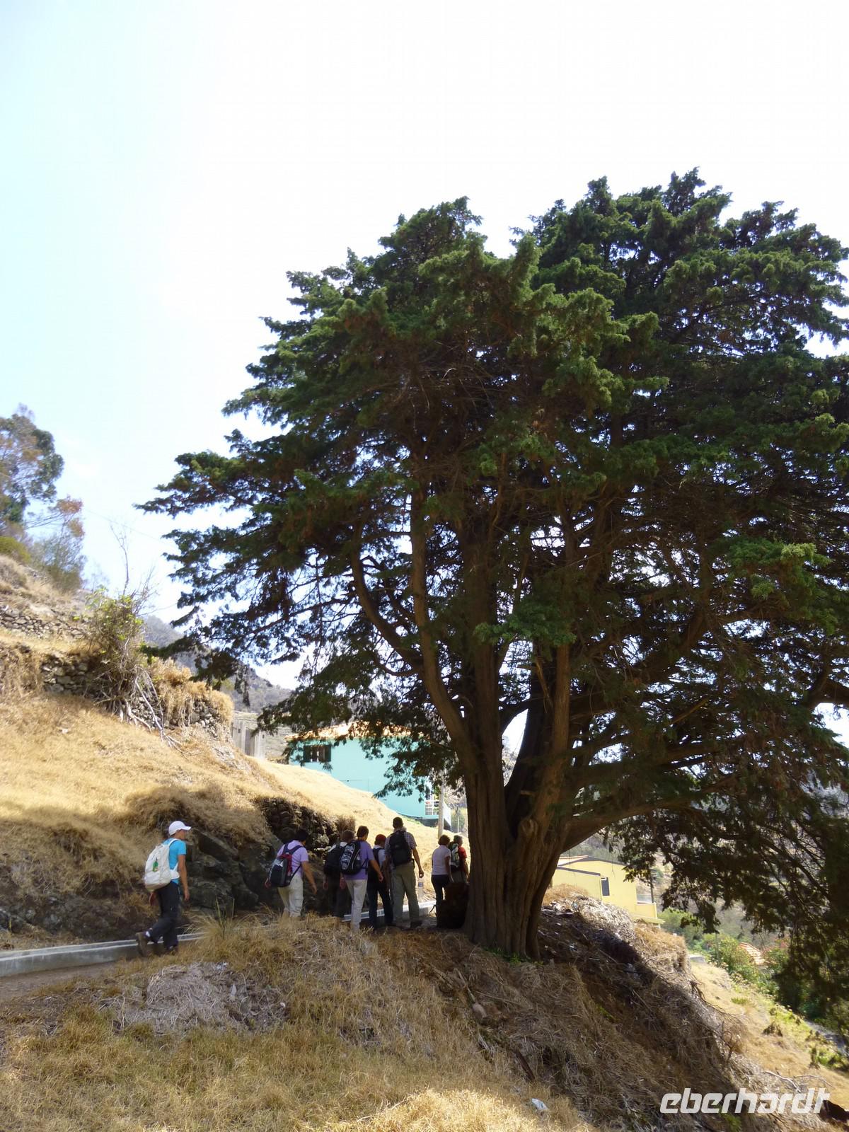 Heute fuhren wir mit Sergio in den Osten der Insel. Nach einem Zwischenstopp im Supermarkt in Santa Cruz begann unsere Wanderung um 10 Uhr. Die Gegend ist im Gegensatz zu den Lavadagebieten karg und trocken, aber genau das machte den Reiz der Halbinsel aus. Auch heute war es sehr heiß, wir legten immer wieder kleine Pausen um etwas zu trinken. Sergio erklärt uns die Gesteinsformationen an den Klippen, was uns gut gefiel. Auch der Blick über die Insel und auf das Meer weckte unser Interesse. An der Casa Sardinha angekommen, entschieden sich einige Gäste mit mir, den Gipfel des Tunnelberges zu ersteigen. Der andere Teil der Gruppe ging mit Sergio an einen kleinen Strandabschnitt. Ein Teil nutzte die Gelegenheit, um sich im Wasser etwas abzukühlen. Der Rückweg führte uns wieder zum Bus, der uns nach Carnisal brachte. Wir besuchten alle in das Cafe Amarelo und erholten uns bei einem Getränk von den Strapazen. Nach einiger Freizeit im Ort fuhren wir zurück zum Hotel.