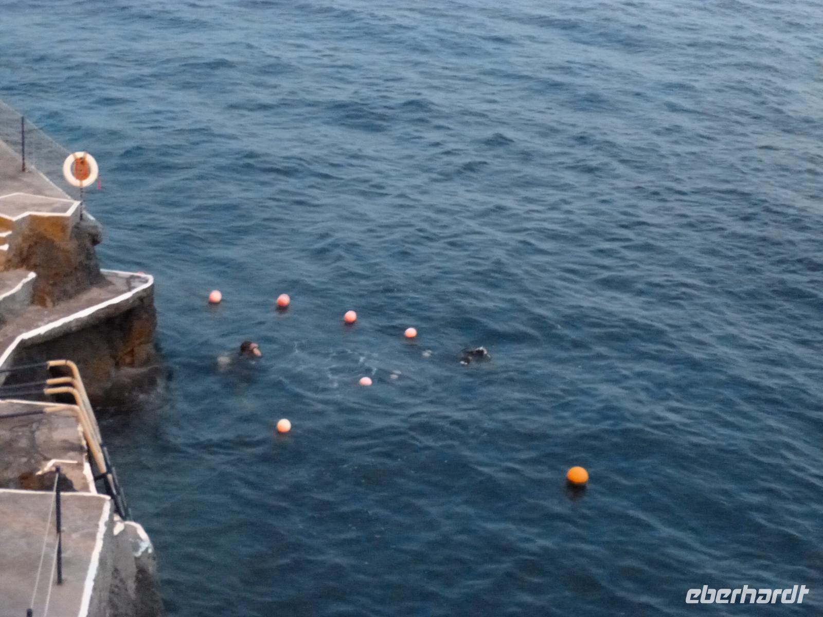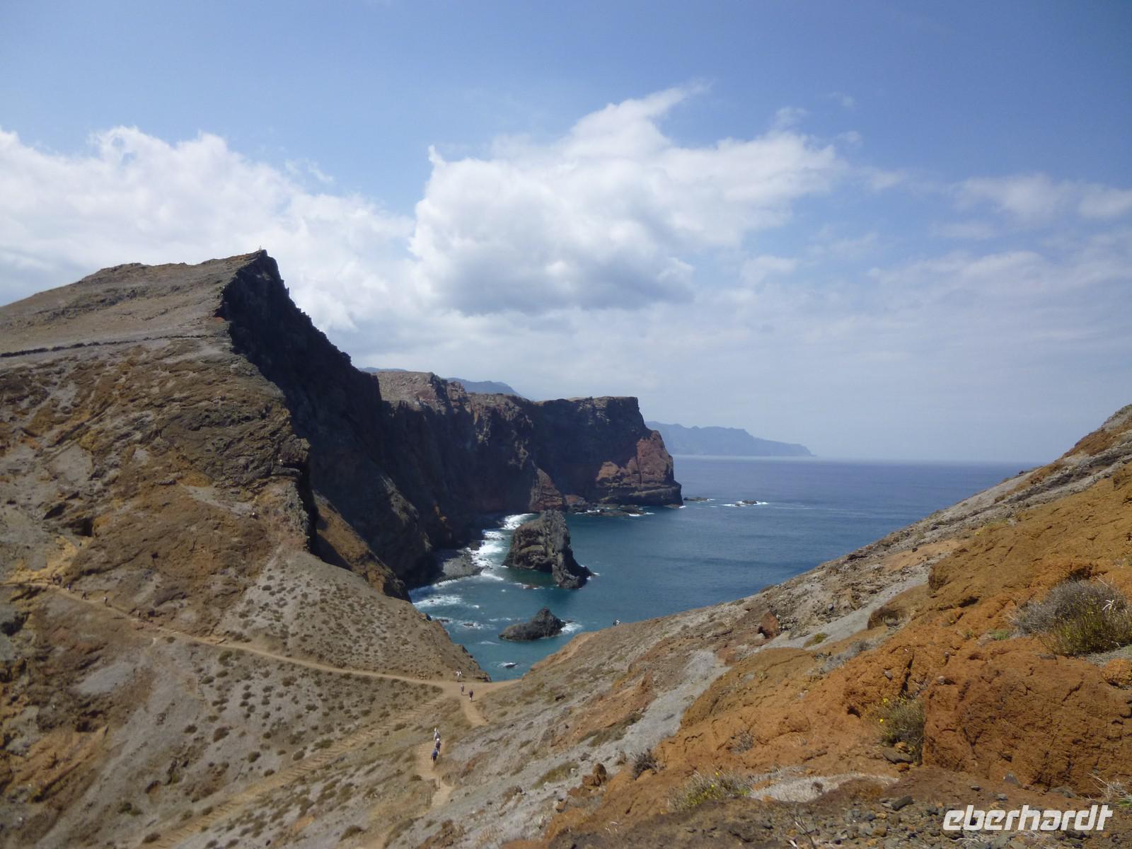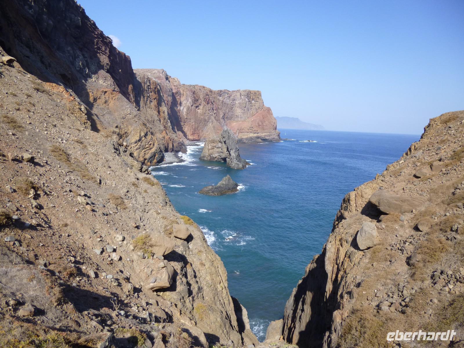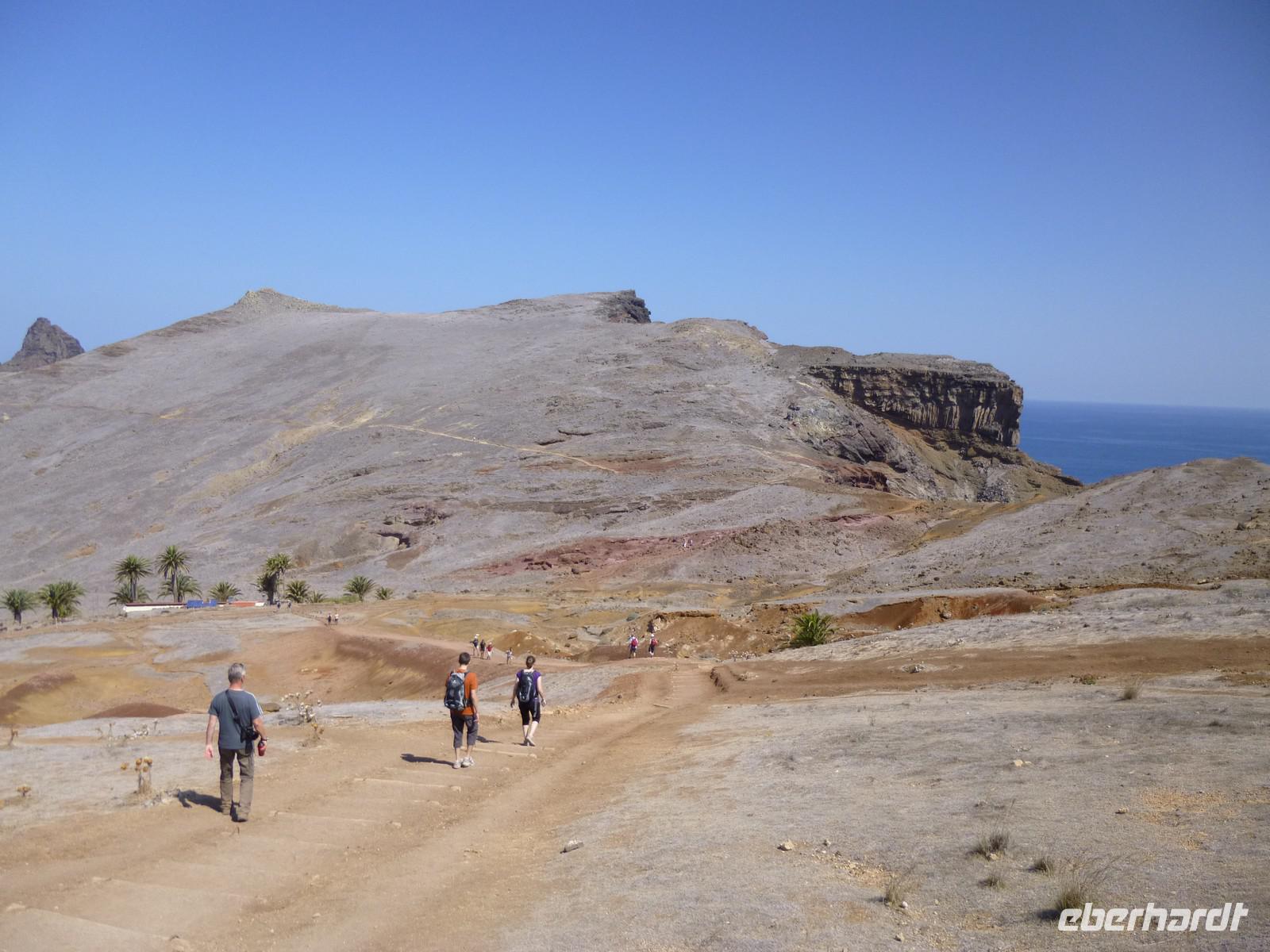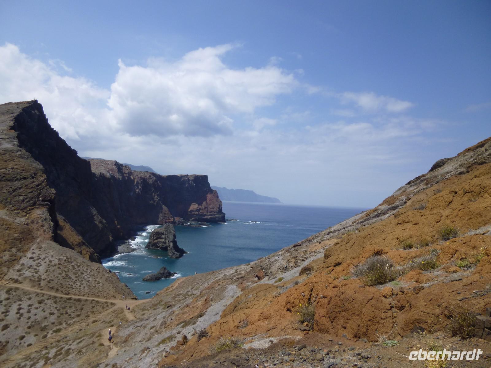 Heute fuhren wir mit Sergio in den Osten der Insel. Nach einem Zwischenstopp im Supermarkt in Santa Cruz begann unsere Wanderung um 10 Uhr. Die Gegend ist im Gegensatz zu den Lavadagebieten karg und trocken, aber genau das machte den Reiz der Halbinsel aus. Auch heute war es sehr heiß, wir legten immer wieder kleine Pausen um etwas zu trinken. Sergio erklärt uns die Gesteinsformationen an den Klippen, was uns gut gefiel. Auch der Blick über die Insel und auf das Meer weckte unser Interesse. An der Casa Sardinha angekommen, entschieden sich einige Gäste mit mir, den Gipfel des Tunnelberges zu ersteigen. Der andere Teil der Gruppe ging mit Sergio an einen kleinen Strandabschnitt. Ein Teil nutzte die Gelegenheit, um sich im Wasser etwas abzukühlen. Der Rückweg führte uns wieder zum Bus, der uns nach Carnisal brachte. Wir besuchten alle in das Cafe Amarelo und erholten uns bei einem Getränk von den Strapazen. Nach einiger Freizeit im Ort fuhren wir zurück zum Hotel.