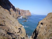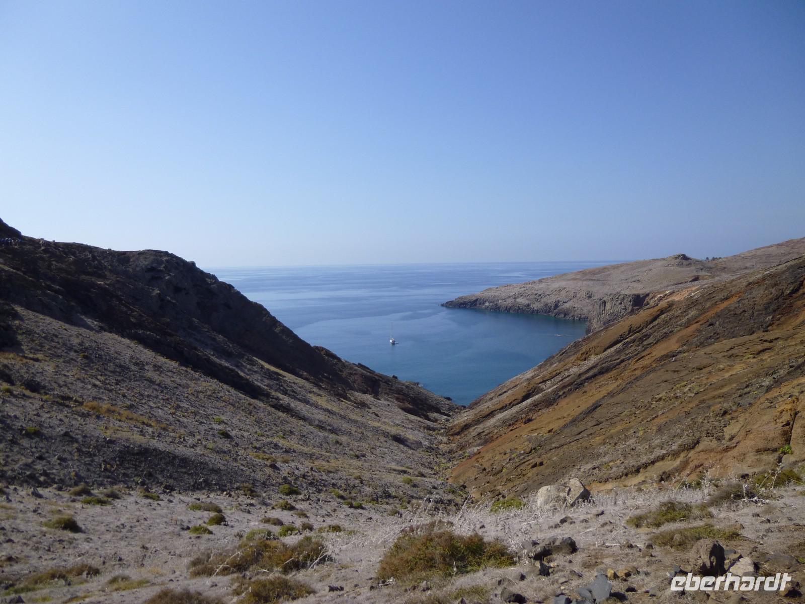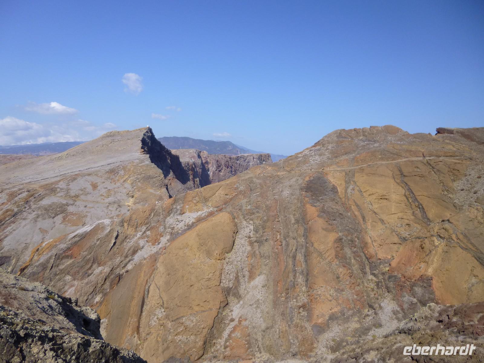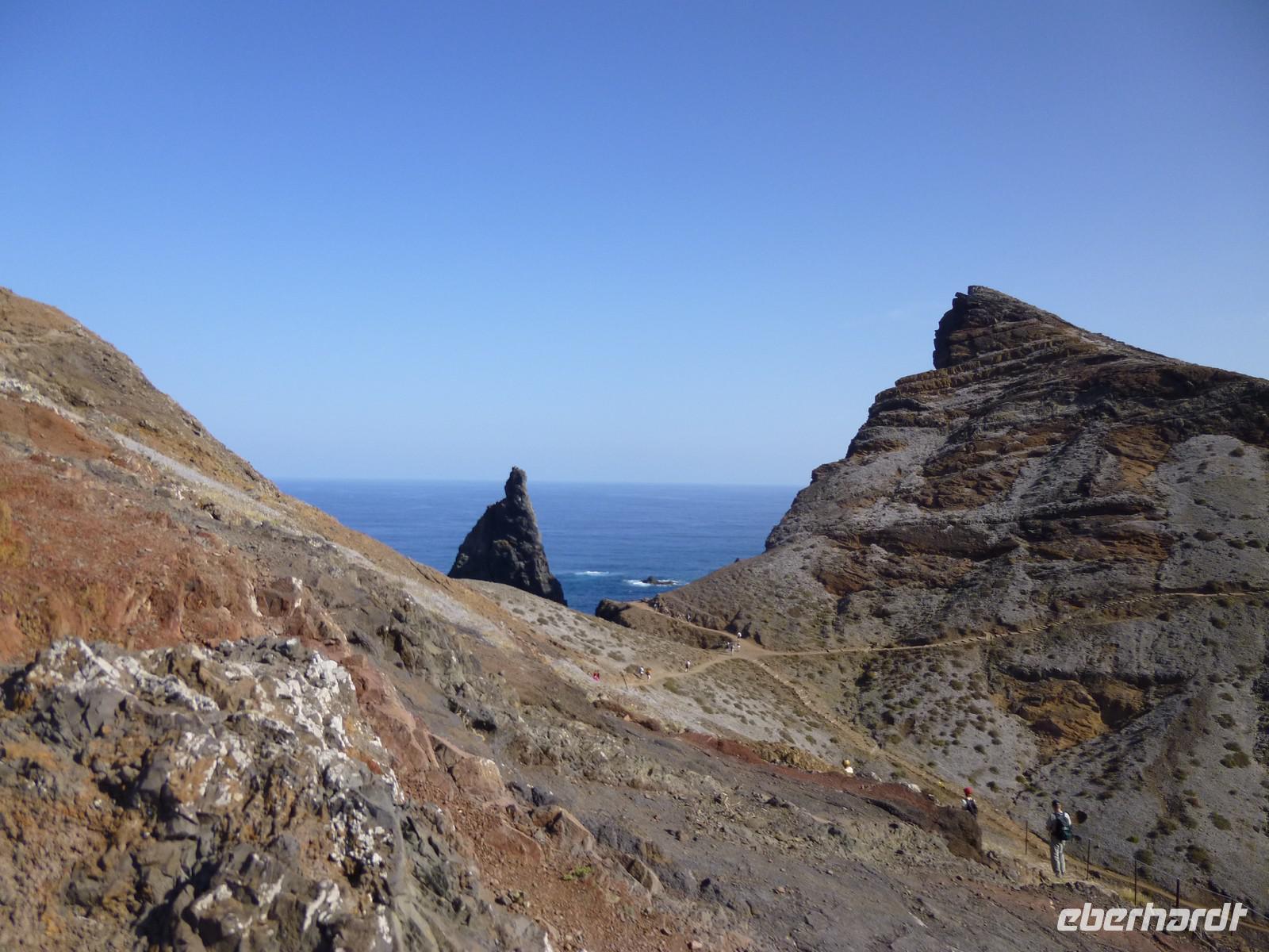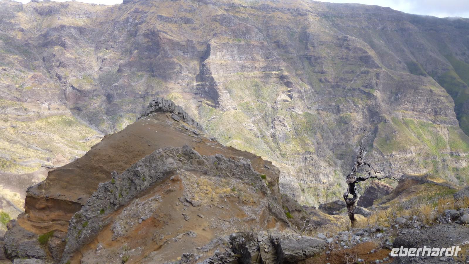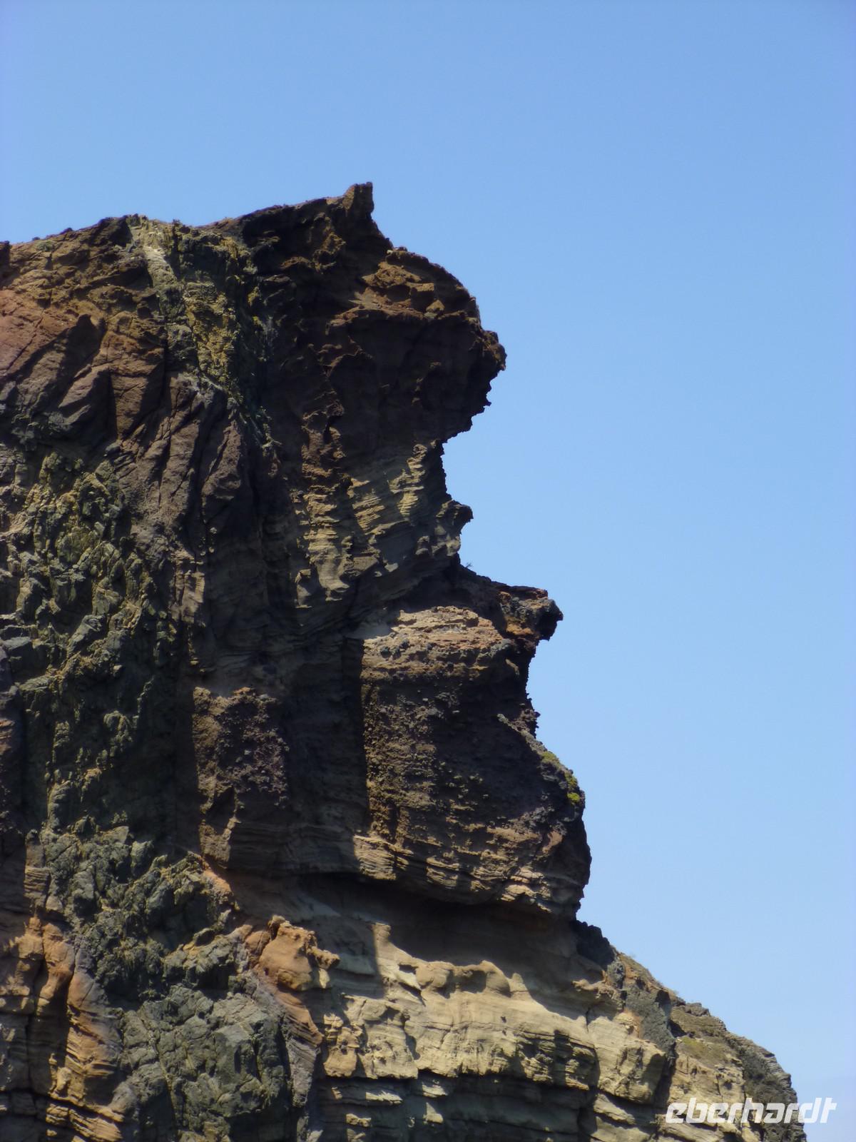 Heute fuhren wir mit Sergio in den Osten der Insel. Nach einem Zwischenstopp im Supermarkt in Santa Cruz begann unsere Wanderung um 10 Uhr. Die Gegend ist im Gegensatz zu den Lavadagebieten karg und trocken, aber genau das machte den Reiz der Halbinsel aus. Auch heute war es sehr heiß, wir legten immer wieder kleine Pausen um etwas zu trinken. Sergio erklärt uns die Gesteinsformationen an den Klippen, was uns gut gefiel. Auch der Blick über die Insel und auf das Meer weckte unser Interesse. An der Casa Sardinha angekommen, entschieden sich einige Gäste mit mir, den Gipfel des Tunnelberges zu ersteigen. Der andere Teil der Gruppe ging mit Sergio an einen kleinen Strandabschnitt. Ein Teil nutzte die Gelegenheit, um sich im Wasser etwas abzukühlen. Der Rückweg führte uns wieder zum Bus, der uns nach Carnisal brachte. Wir besuchten alle in das Cafe Amarelo und erholten uns bei einem Getränk von den Strapazen. Nach einiger Freizeit im Ort fuhren wir zurück zum Hotel.