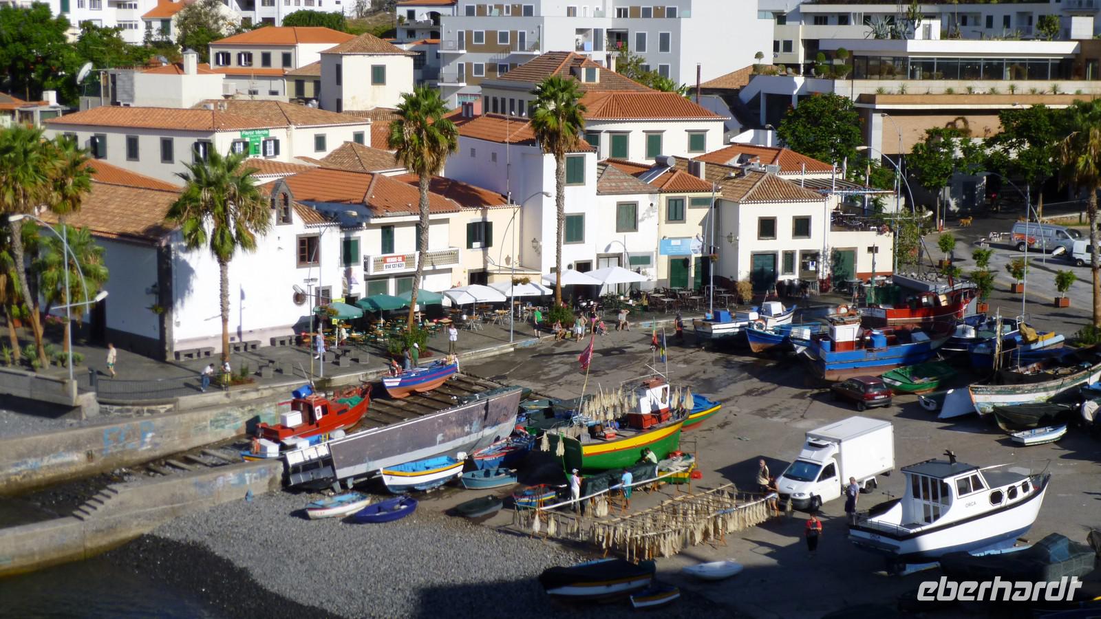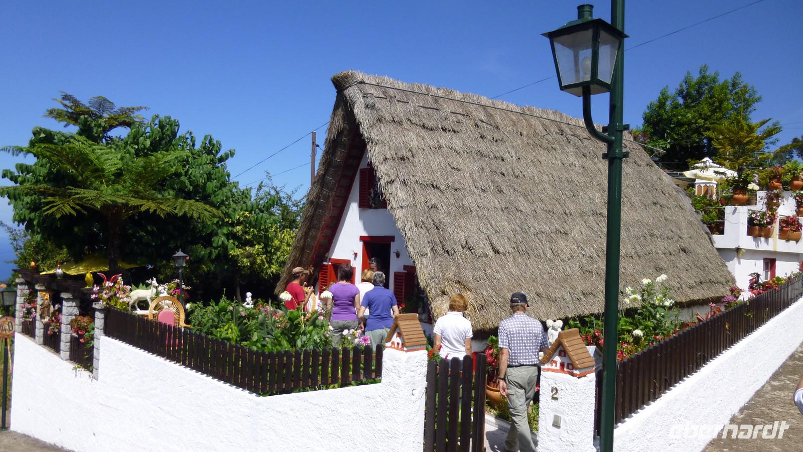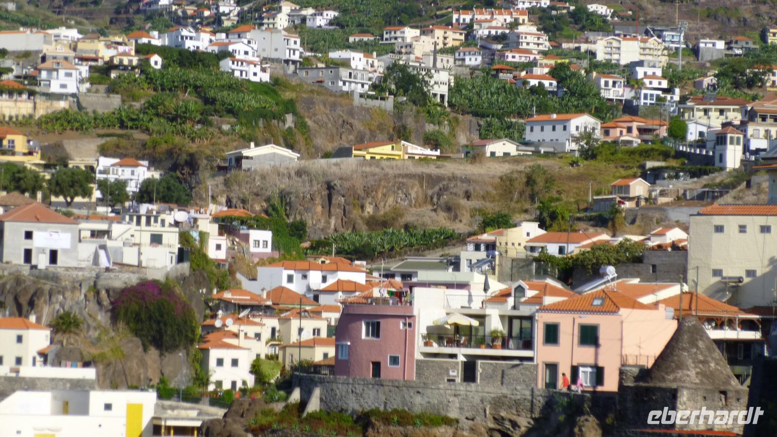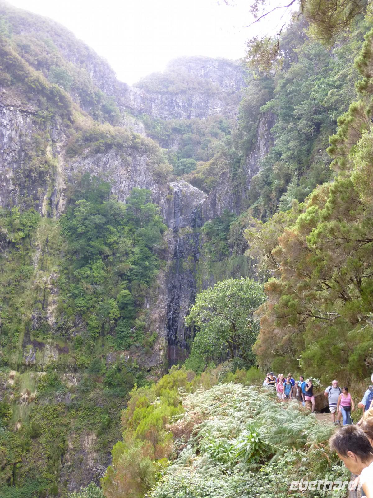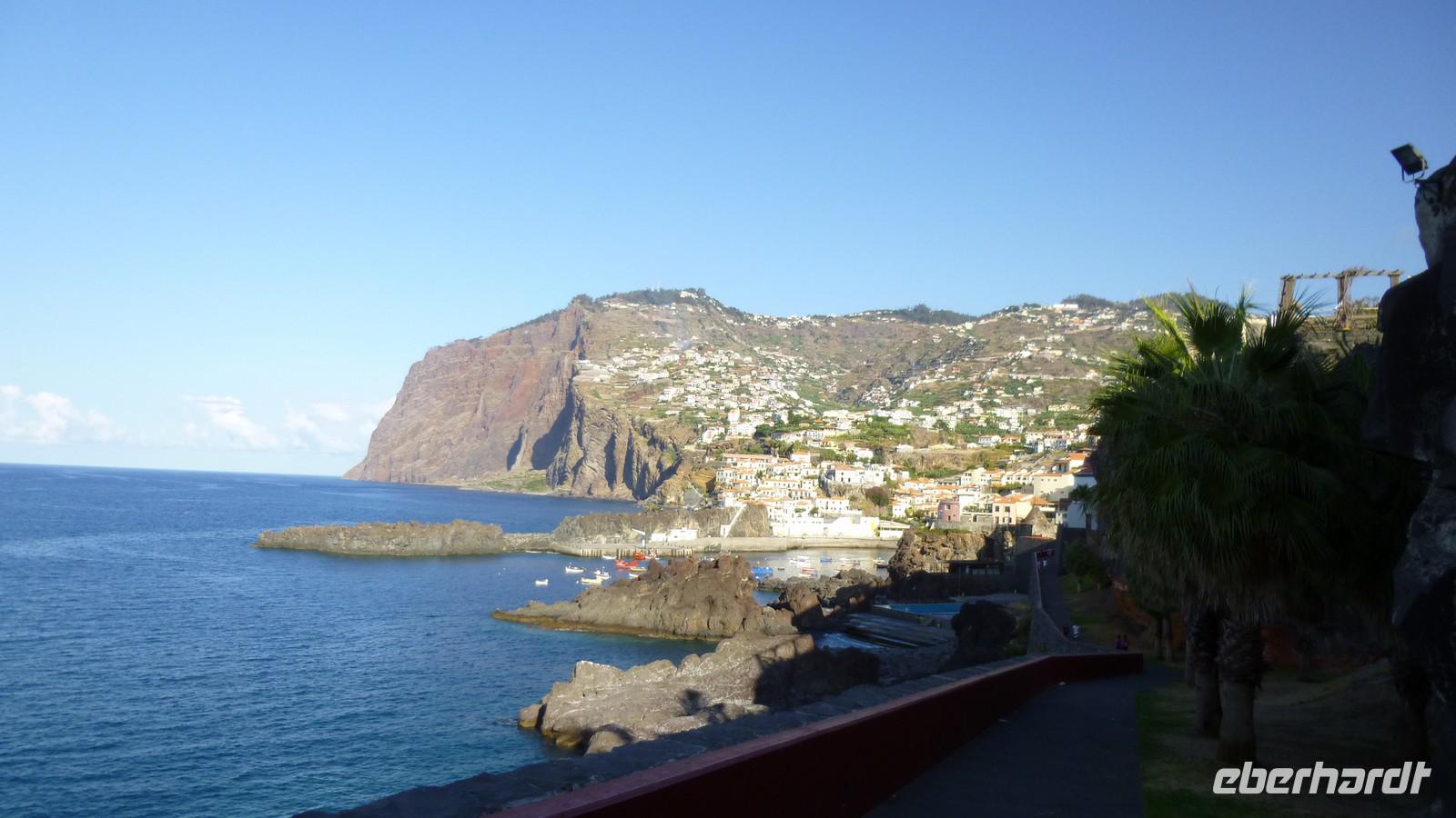 Der letzte Ausflug der Reise war die Nord-Westrundfaht. Von unserem Hotel aus starteten wir nach Camera de Lobos und besichtigten den Hafen und die umliegenden Gassen. Ein örtlicher Barbesitzer zeigte uns wie ein Ponca zubereitet wird und Sergio erklärte uns den Vorgang. Unser nächster größerer Stopp war in Riberia Brava. Hier hatten wir Gelegenheit in den unzähligen Geschäften zu bummeln oder ein zweites Frühstück einzunehmen. Über die Hochebene Paul de Serra ging es weiter in den Norden der Insel. Wir legten auch hier noch einen Fotostopp ein, da uns Sergio ein paar uralte Lorbeerbäume zeigen wollte. In Porto Moniz verbrachten wir unsere Mittagspause. Im Anschluss blieb noch Zeit sich im Natruschwimmbecken etwas abzukühlen. Auf unserer Tour kamen wir noch an einen Wasserfall und einigen Aussichtspunkten vorbei. Ich hatte noch einen Madeirawein besorgt, um mit den Gästen auf die schöne Reise anzustoßen. Der letzte Stopp galt einer Poncabar, die auf Madeira sehr bekannt und beliebt ist. In dieser Bar waren alle Wände mit Visitenkarten "tapeziert". Ich ließ die Gäste auf einer Eberhardt Tischkarte unterschreiben und hing diese auch mit an die Wand, so hinterließen wir unsere Spuren. Die Gruppe genoss den Ausflug bei gutem Wetter, so dass viele, viele Fotos gemacht wurden, die den Tag festhielten. Am Abend trafen wir uns alle wieder um essen zu gehen.