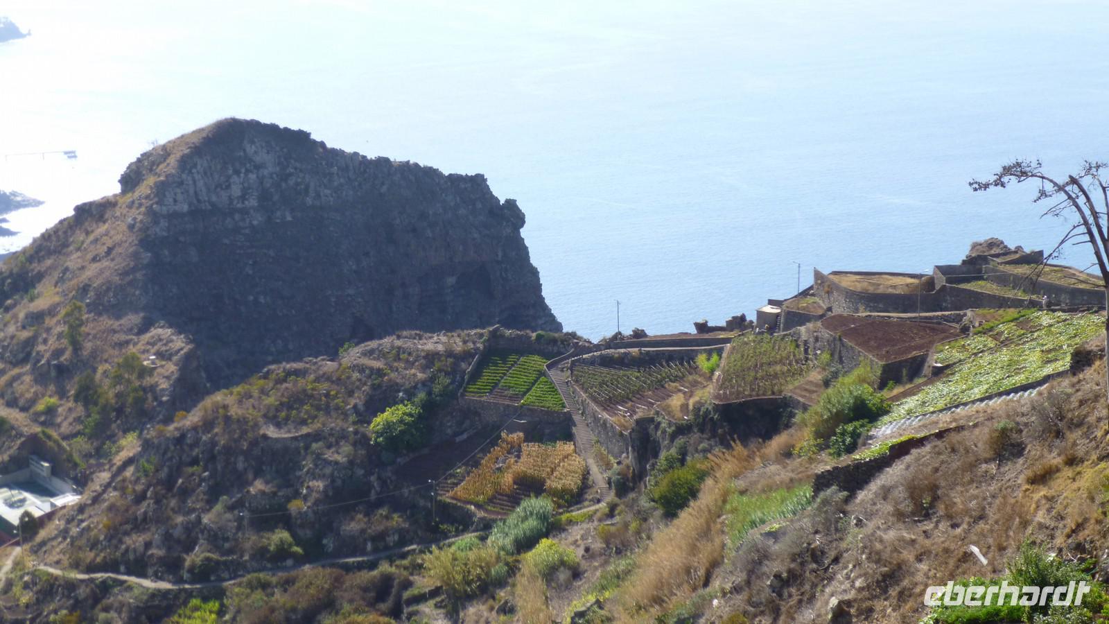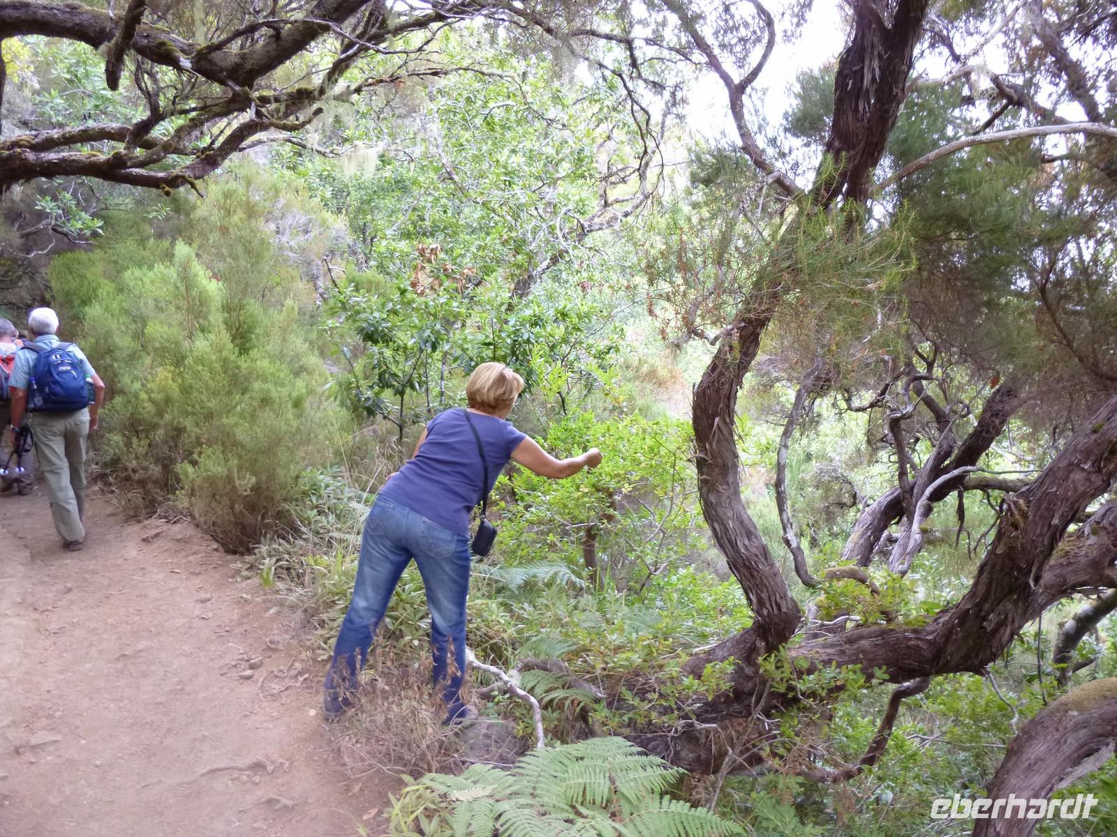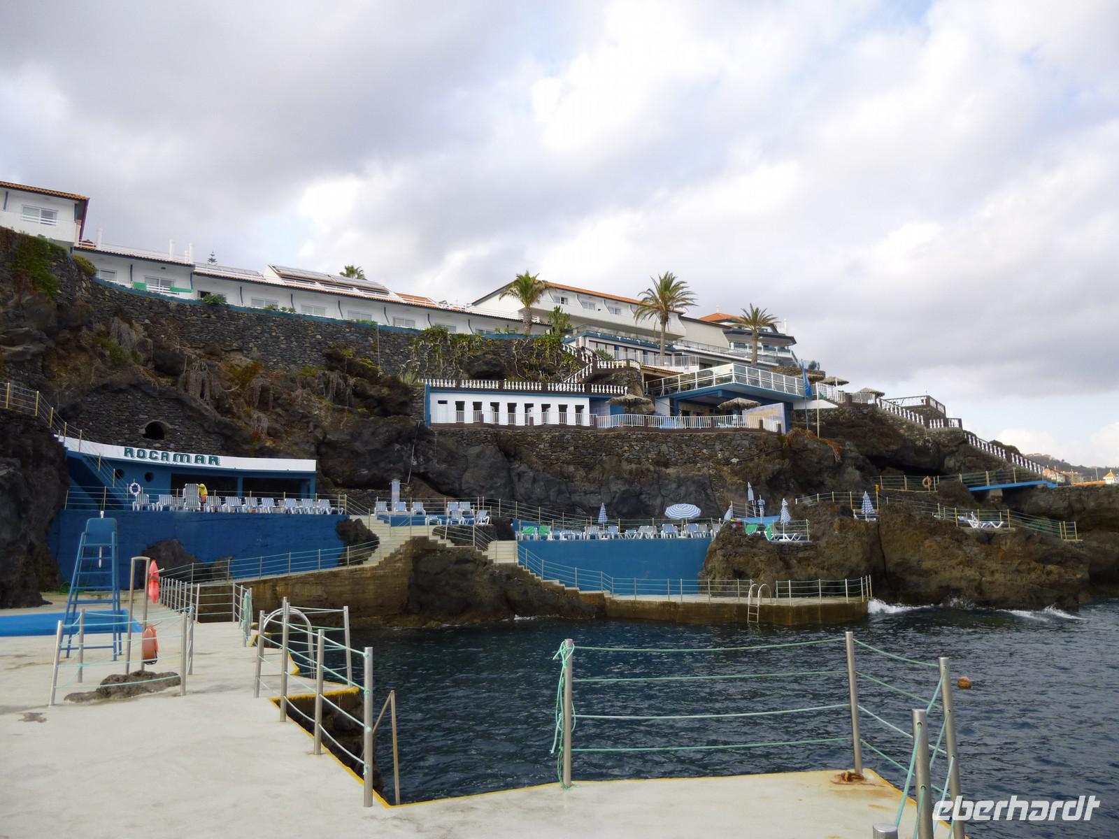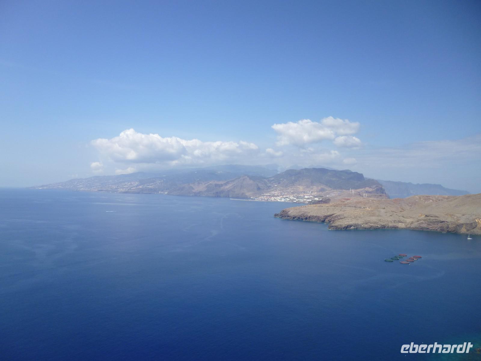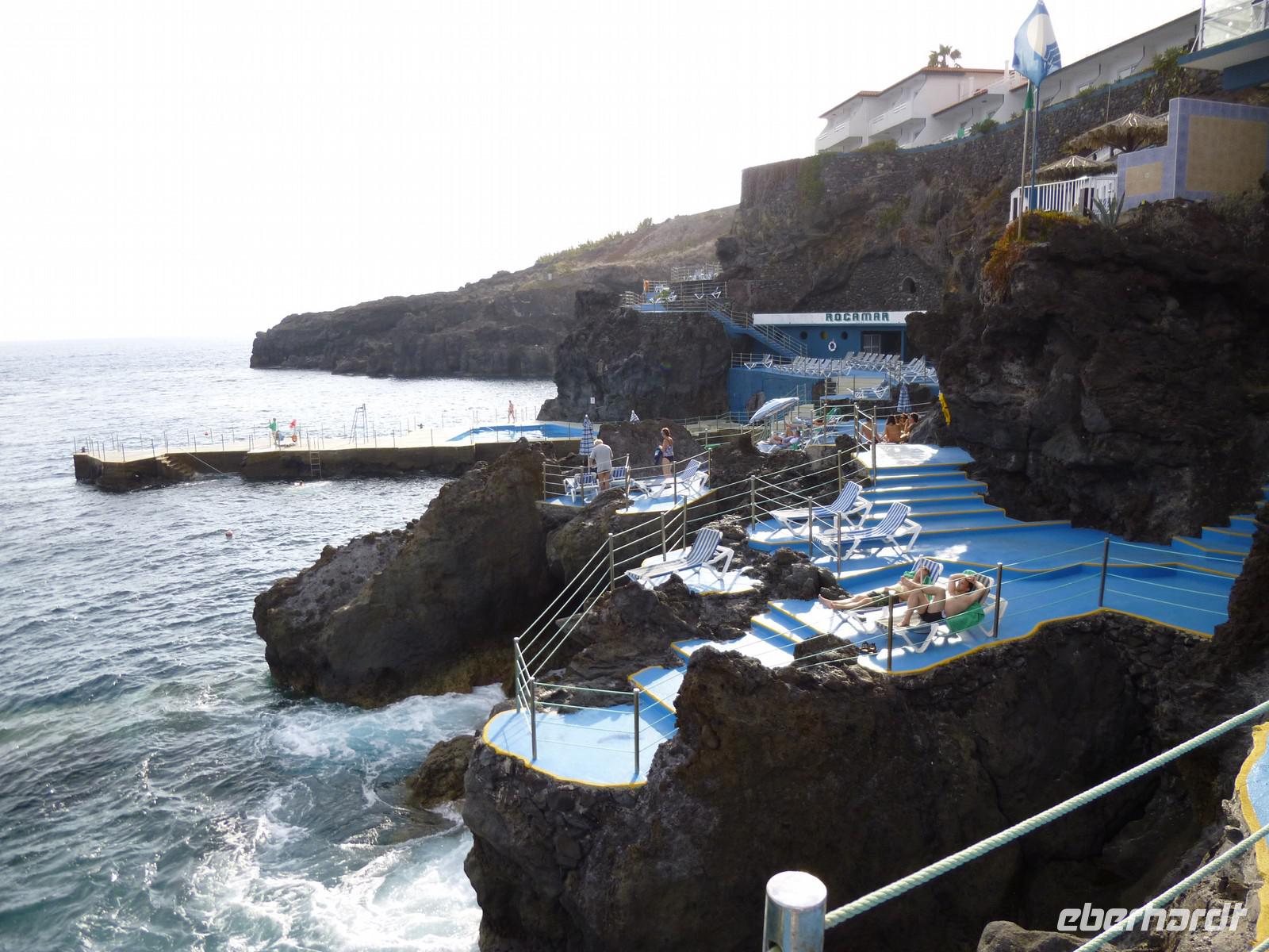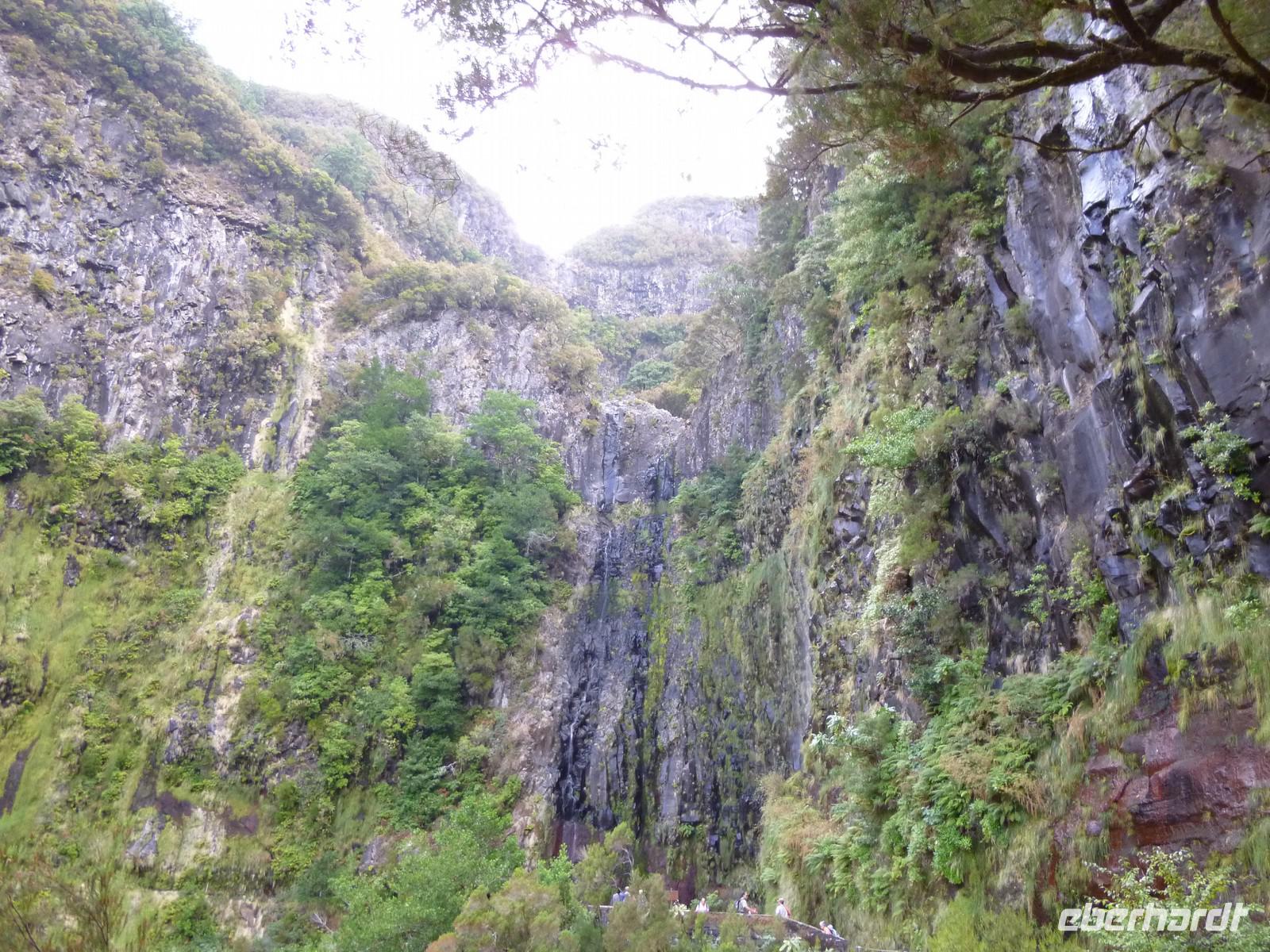 Der letzte Ausflug der Reise war die Nord-Westrundfaht. Von unserem Hotel aus starteten wir nach Camera de Lobos und besichtigten den Hafen und die umliegenden Gassen. Ein örtlicher Barbesitzer zeigte uns wie ein Ponca zubereitet wird und Sergio erklärte uns den Vorgang. Unser nächster größerer Stopp war in Riberia Brava. Hier hatten wir Gelegenheit in den unzähligen Geschäften zu bummeln oder ein zweites Frühstück einzunehmen. Über die Hochebene Paul de Serra ging es weiter in den Norden der Insel. Wir legten auch hier noch einen Fotostopp ein, da uns Sergio ein paar uralte Lorbeerbäume zeigen wollte. In Porto Moniz verbrachten wir unsere Mittagspause. Im Anschluss blieb noch Zeit sich im Natruschwimmbecken etwas abzukühlen. Auf unserer Tour kamen wir noch an einen Wasserfall und einigen Aussichtspunkten vorbei. Ich hatte noch einen Madeirawein besorgt, um mit den Gästen auf die schöne Reise anzustoßen. Der letzte Stopp galt einer Poncabar, die auf Madeira sehr bekannt und beliebt ist. In dieser Bar waren alle Wände mit Visitenkarten "tapeziert". Ich ließ die Gäste auf einer Eberhardt Tischkarte unterschreiben und hing diese auch mit an die Wand, so hinterließen wir unsere Spuren. Die Gruppe genoss den Ausflug bei gutem Wetter, so dass viele, viele Fotos gemacht wurden, die den Tag festhielten. Am Abend trafen wir uns alle wieder um essen zu gehen.