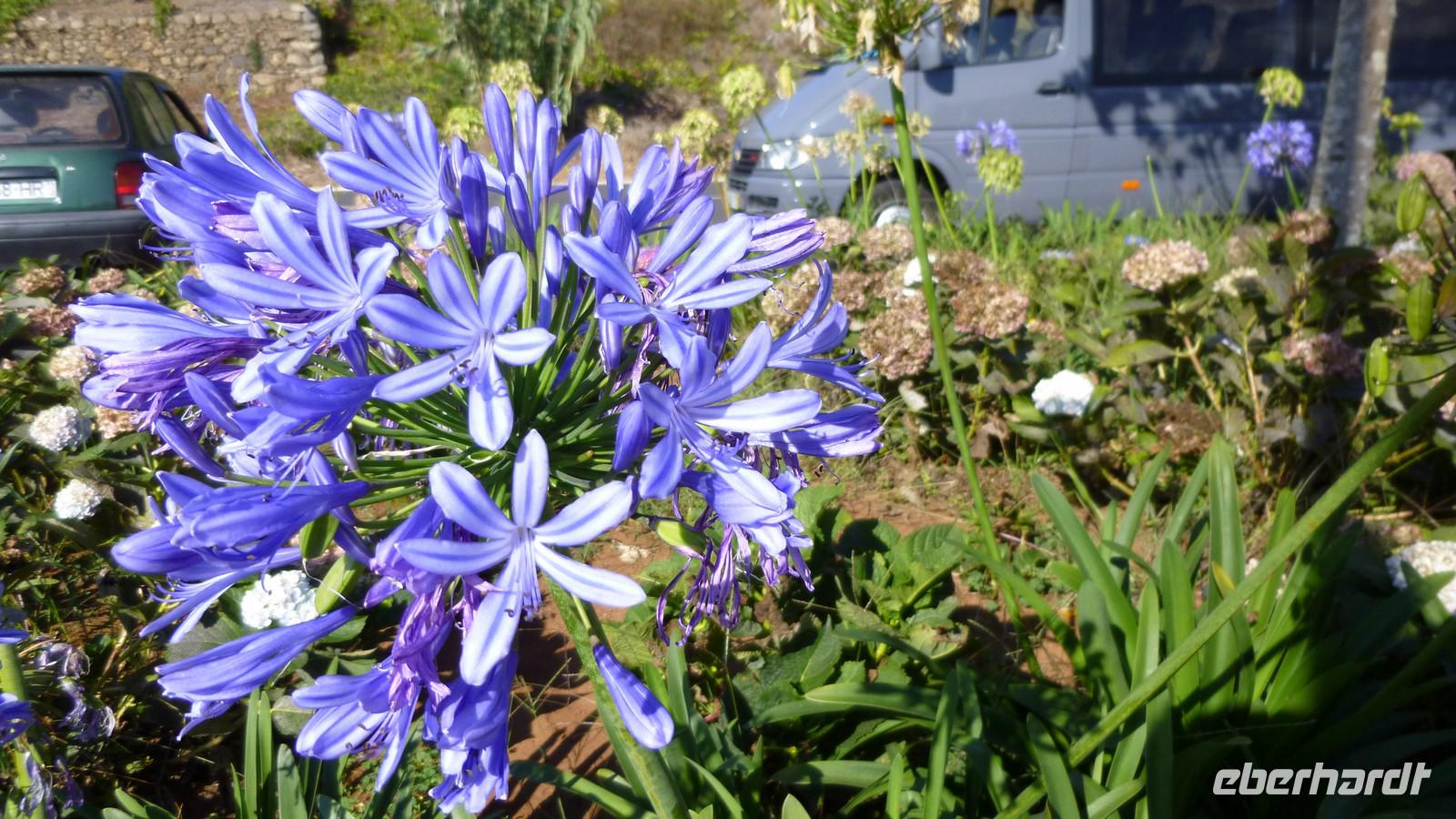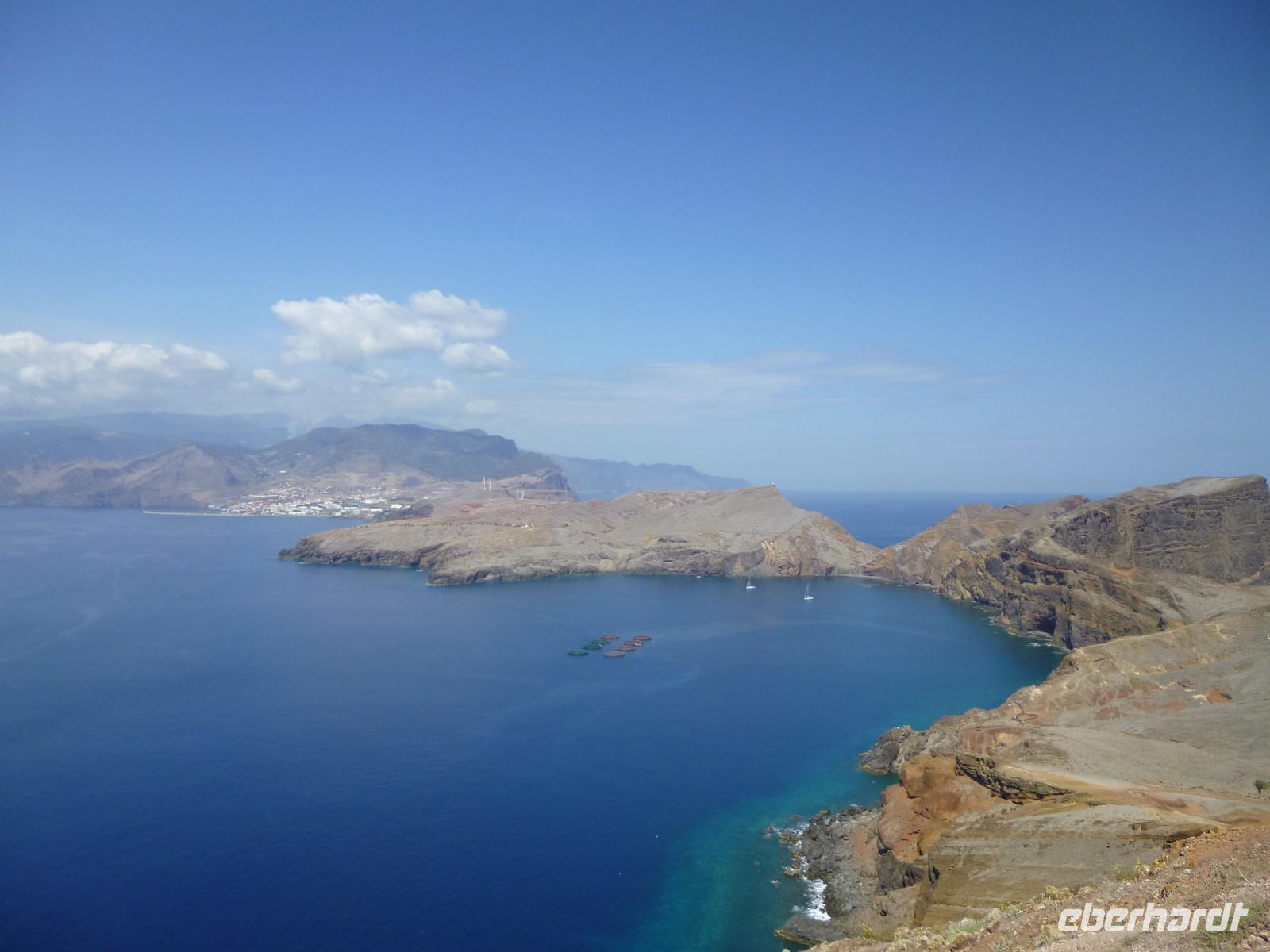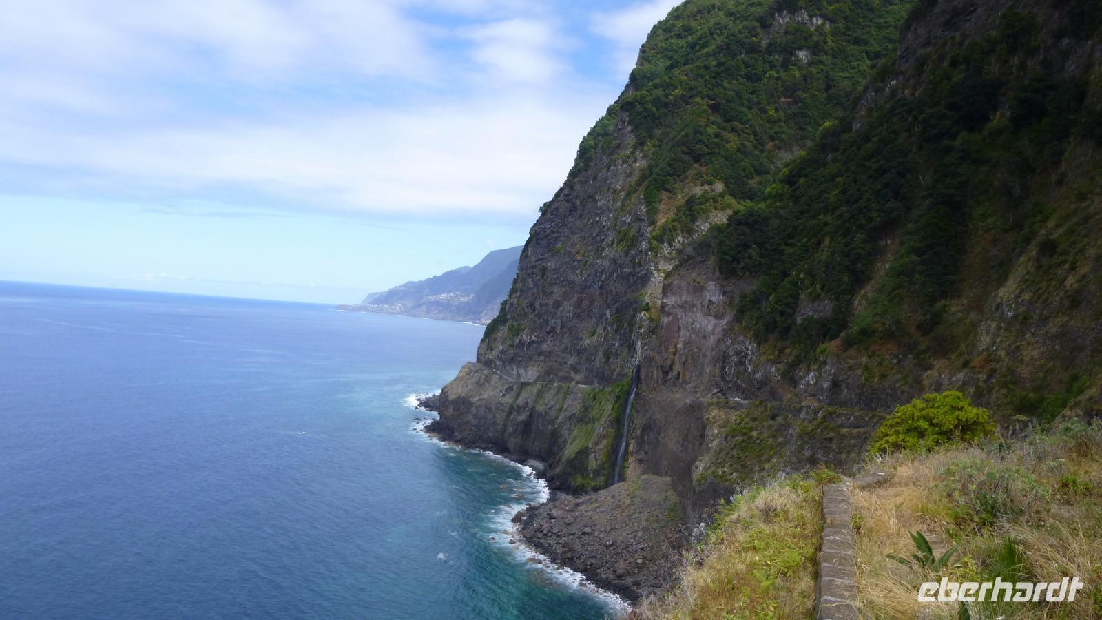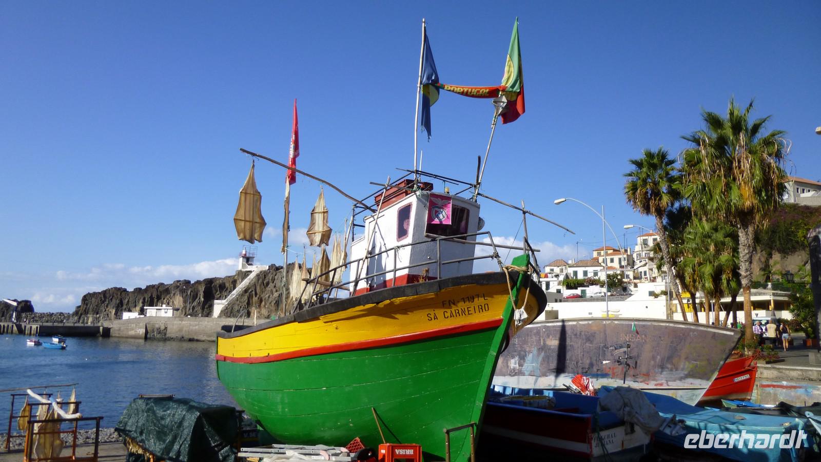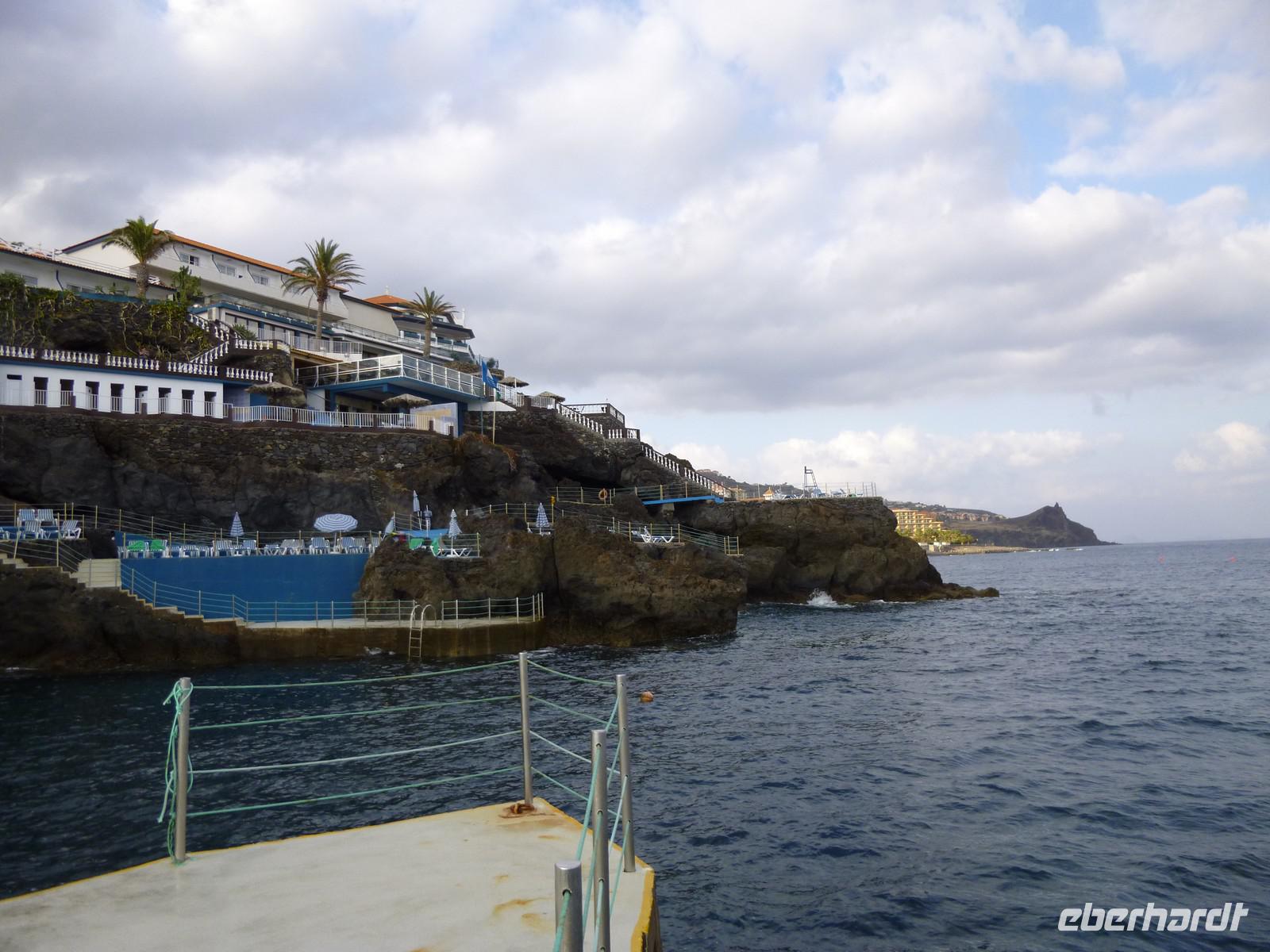 Der letzte Ausflug der Reise war die Nord-Westrundfaht. Von unserem Hotel aus starteten wir nach Camera de Lobos und besichtigten den Hafen und die umliegenden Gassen. Ein örtlicher Barbesitzer zeigte uns wie ein Ponca zubereitet wird und Sergio erklärte uns den Vorgang. Unser nächster größerer Stopp war in Riberia Brava. Hier hatten wir Gelegenheit in den unzähligen Geschäften zu bummeln oder ein zweites Frühstück einzunehmen. Über die Hochebene Paul de Serra ging es weiter in den Norden der Insel. Wir legten auch hier noch einen Fotostopp ein, da uns Sergio ein paar uralte Lorbeerbäume zeigen wollte. In Porto Moniz verbrachten wir unsere Mittagspause. Im Anschluss blieb noch Zeit sich im Natruschwimmbecken etwas abzukühlen. Auf unserer Tour kamen wir noch an einen Wasserfall und einigen Aussichtspunkten vorbei. Ich hatte noch einen Madeirawein besorgt, um mit den Gästen auf die schöne Reise anzustoßen. Der letzte Stopp galt einer Poncabar, die auf Madeira sehr bekannt und beliebt ist. In dieser Bar waren alle Wände mit Visitenkarten "tapeziert". Ich ließ die Gäste auf einer Eberhardt Tischkarte unterschreiben und hing diese auch mit an die Wand, so hinterließen wir unsere Spuren. Die Gruppe genoss den Ausflug bei gutem Wetter, so dass viele, viele Fotos gemacht wurden, die den Tag festhielten. Am Abend trafen wir uns alle wieder um essen zu gehen.