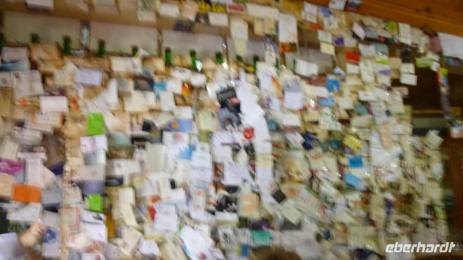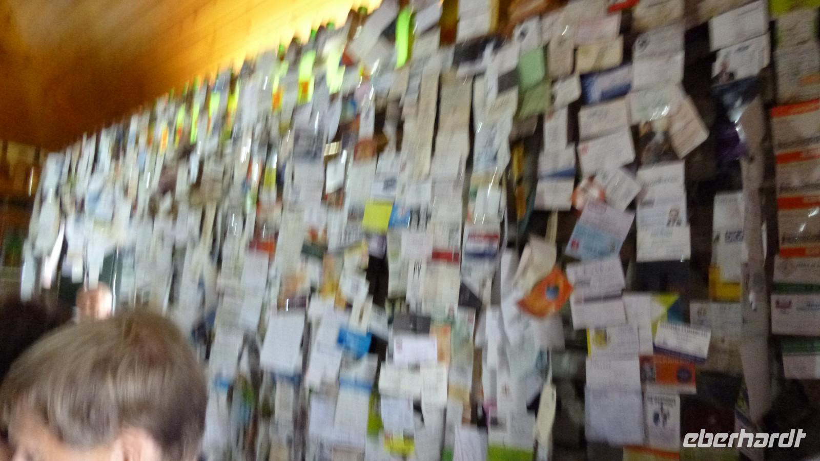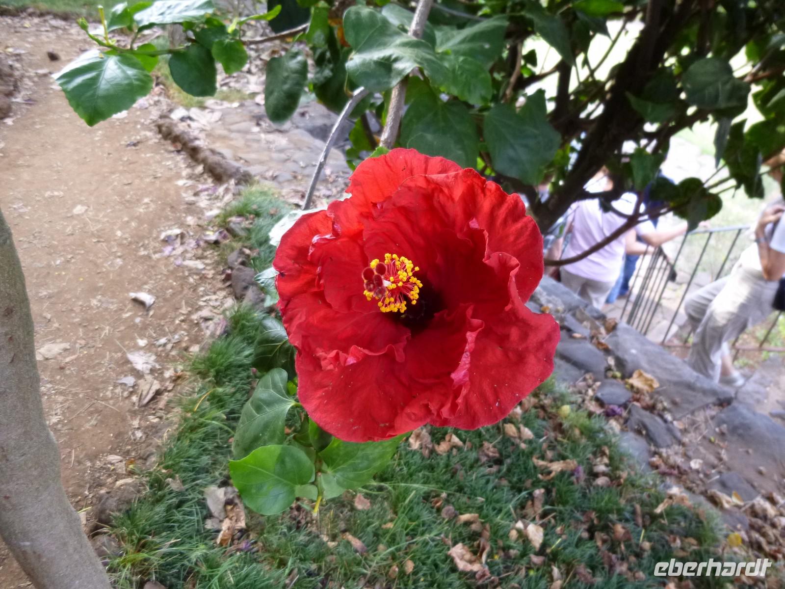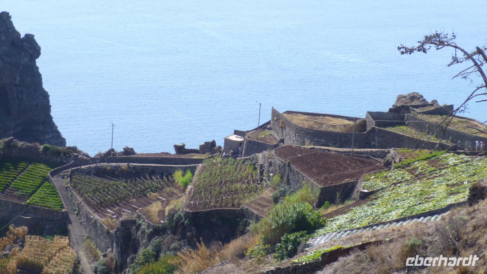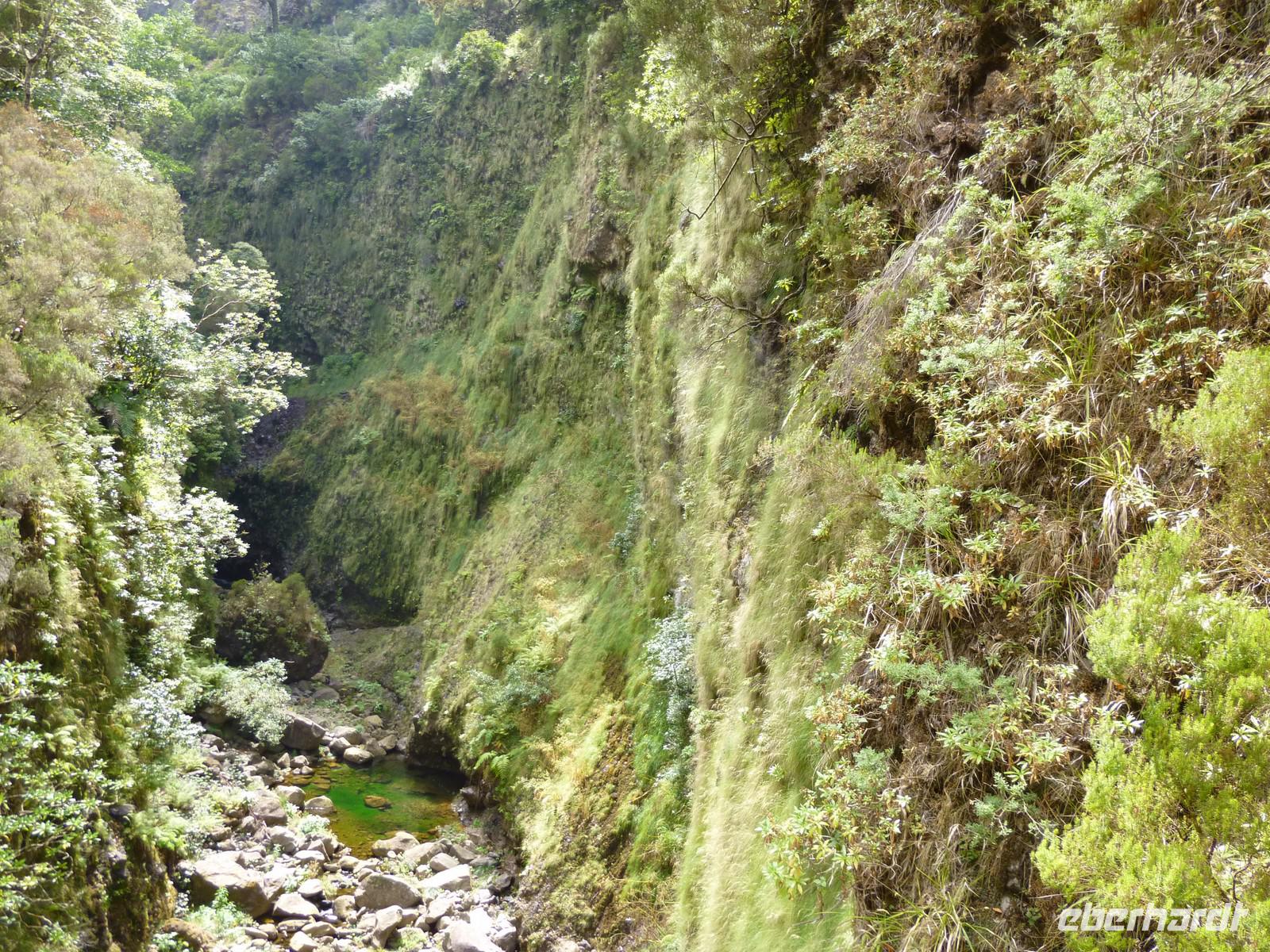 Der letzte Ausflug der Reise war die Nord-Westrundfaht. Von unserem Hotel aus starteten wir nach Camera de Lobos und besichtigten den Hafen und die umliegenden Gassen. Ein örtlicher Barbesitzer zeigte uns wie ein Ponca zubereitet wird und Sergio erklärte uns den Vorgang. Unser nächster größerer Stopp war in Riberia Brava. Hier hatten wir Gelegenheit in den unzähligen Geschäften zu bummeln oder ein zweites Frühstück einzunehmen. Über die Hochebene Paul de Serra ging es weiter in den Norden der Insel. Wir legten auch hier noch einen Fotostopp ein, da uns Sergio ein paar uralte Lorbeerbäume zeigen wollte. In Porto Moniz verbrachten wir unsere Mittagspause. Im Anschluss blieb noch Zeit sich im Natruschwimmbecken etwas abzukühlen. Auf unserer Tour kamen wir noch an einen Wasserfall und einigen Aussichtspunkten vorbei. Ich hatte noch einen Madeirawein besorgt, um mit den Gästen auf die schöne Reise anzustoßen. Der letzte Stopp galt einer Poncabar, die auf Madeira sehr bekannt und beliebt ist. In dieser Bar waren alle Wände mit Visitenkarten "tapeziert". Ich ließ die Gäste auf einer Eberhardt Tischkarte unterschreiben und hing diese auch mit an die Wand, so hinterließen wir unsere Spuren. Die Gruppe genoss den Ausflug bei gutem Wetter, so dass viele, viele Fotos gemacht wurden, die den Tag festhielten. Am Abend trafen wir uns alle wieder um essen zu gehen.