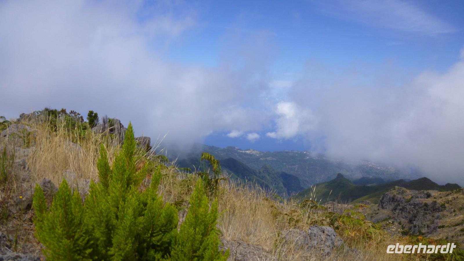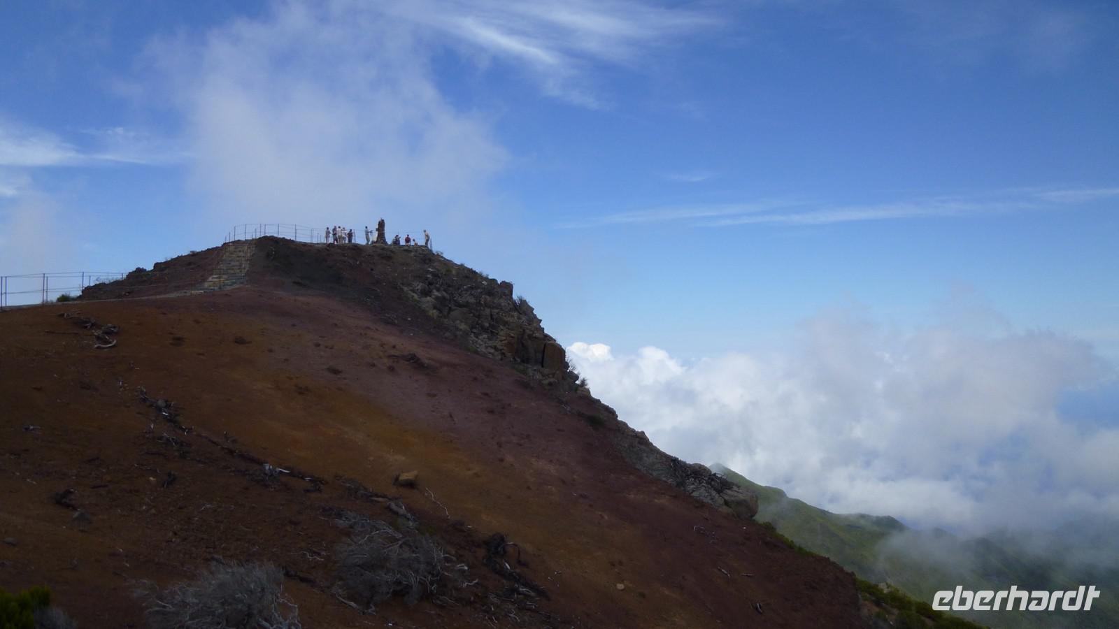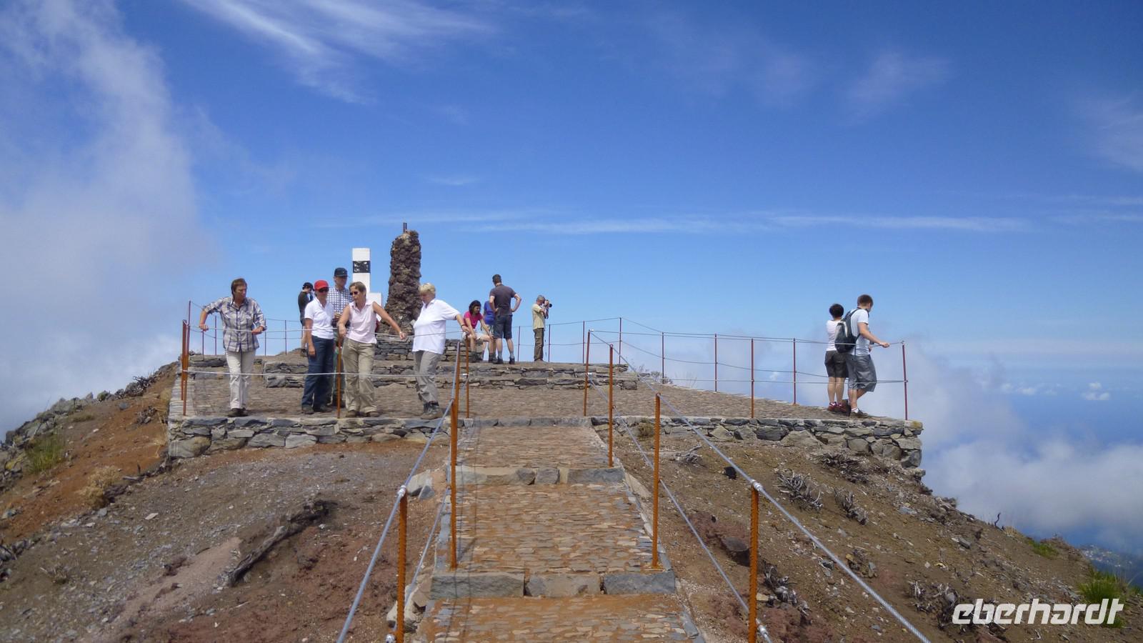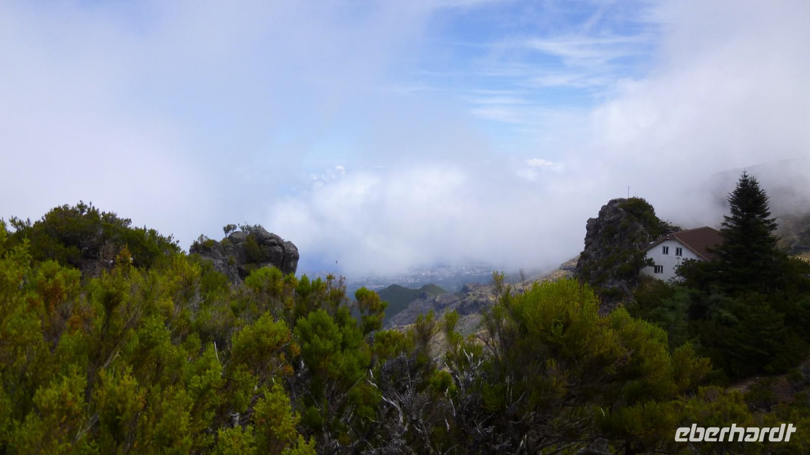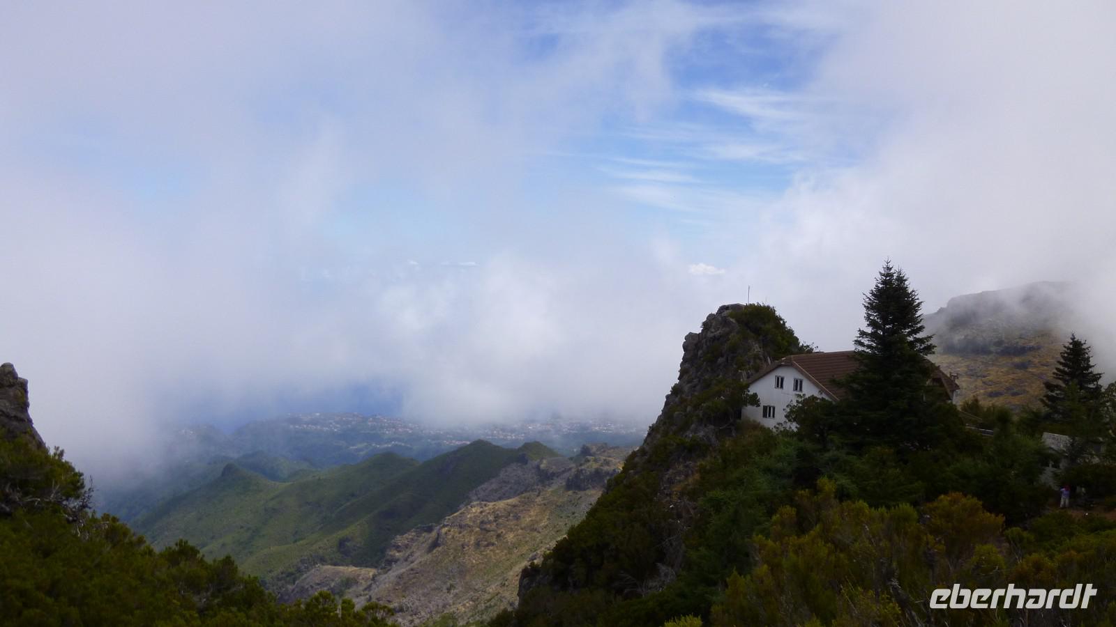 Heute lag die anspruchsvollste Wanderung vor uns, die Wanderung zwischen den Gipfeln Pico de Arivo und Pico Ruivo. Unsere Verpflegung, für diesen Tag, holten wir uns wieder in Santa Cruz. Wir starten unsere Wanderung am Pico Arivo. Vom Gipfel aus hatten wir einen schönen und weiten Blick. Sergio zeigte uns den Nonnenstall und erklärte uns wie der Name des Tals zustande kam. Die Wanderung führte entlang an Steilwänden in eine abgelegene Bergregion. Auf unsere Strecke teilte sich die Gruppe. Ein Teil ging mit Sergio den Tunnelweg, der andere Teil folgte mir über den Berg. Der Aufstieg war steil und durchaus anspruchsvoll, dafür hatte man einen wunderschonen Blick auf die beiden Gipfel. Die Gruppe, die Sergio führte verlief durch sieben Tunnel und über einen befestigten Weg. Beide Gruppen trafen sich am Forsthaus, von hier bewältigten wir die letzten 500m bis zum Gipfel. Von hier aus hatte man einen wunderbaren Blick über Madeira. Die letzte kurze Strecke legten wir dann gemeinsam zurück. Unser Busfahrer brachte uns anschließend nach Santana, wo wir die Möglichkeit hatten uns die Dreieckshäuschen mit ihren Strohdächern anzusehen oder uns die Zeit bei einem Kaffee oder Bier zu genießen.