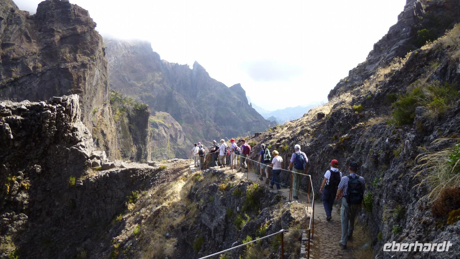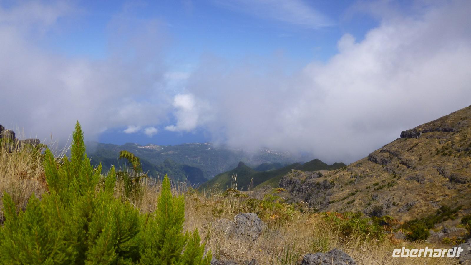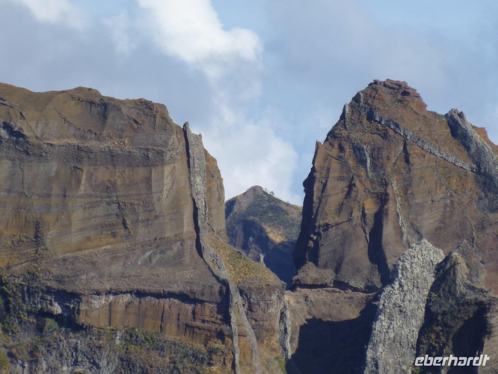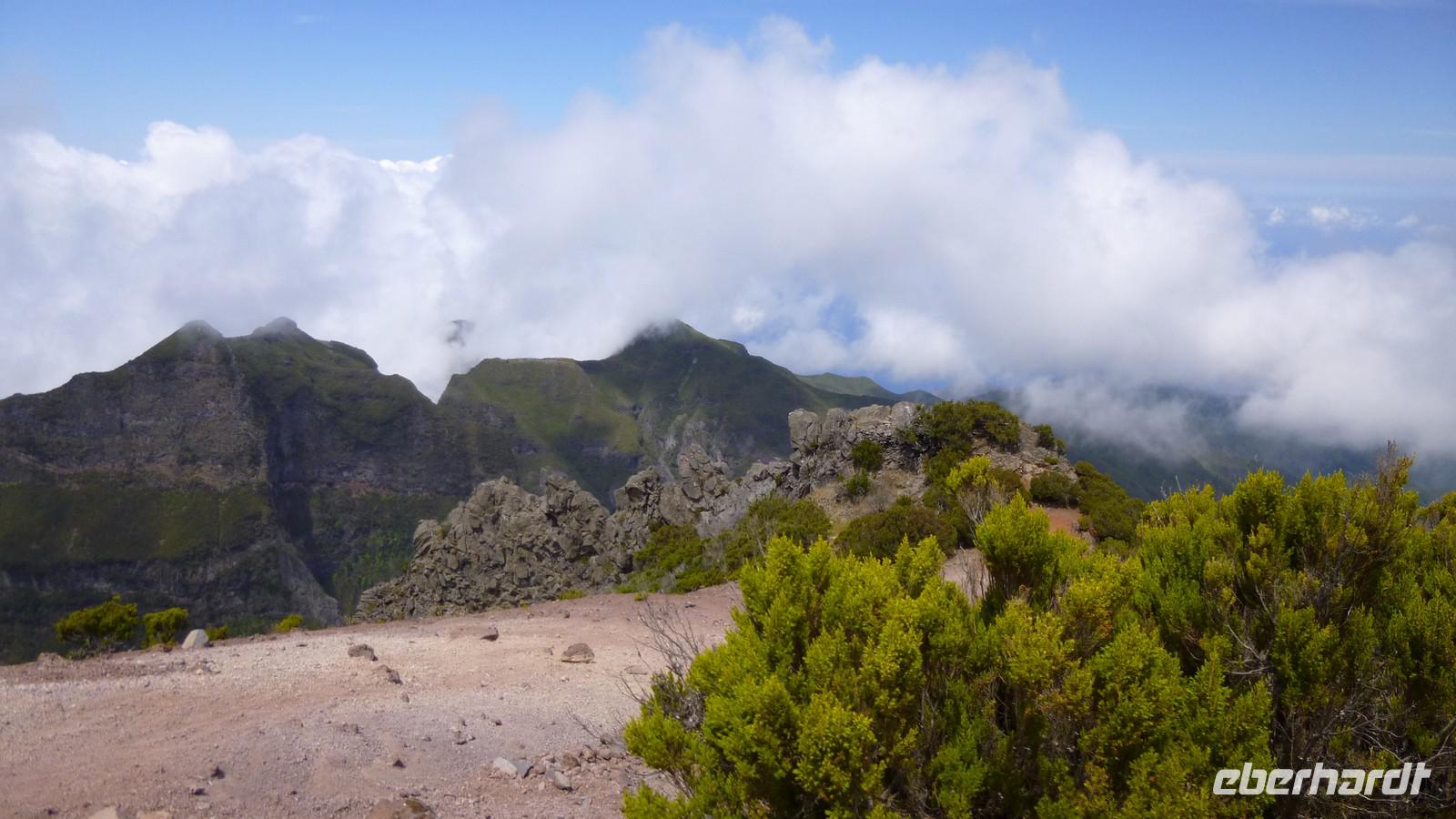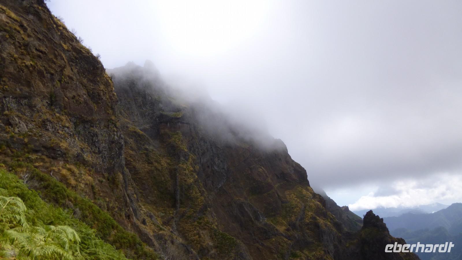 Heute lag die anspruchsvollste Wanderung vor uns, die Wanderung zwischen den Gipfeln Pico de Arivo und Pico Ruivo. Unsere Verpflegung, für diesen Tag, holten wir uns wieder in Santa Cruz. Wir starten unsere Wanderung am Pico Arivo. Vom Gipfel aus hatten wir einen schönen und weiten Blick. Sergio zeigte uns den Nonnenstall und erklärte uns wie der Name des Tals zustande kam. Die Wanderung führte entlang an Steilwänden in eine abgelegene Bergregion. Auf unsere Strecke teilte sich die Gruppe. Ein Teil ging mit Sergio den Tunnelweg, der andere Teil folgte mir über den Berg. Der Aufstieg war steil und durchaus anspruchsvoll, dafür hatte man einen wunderschonen Blick auf die beiden Gipfel. Die Gruppe, die Sergio führte verlief durch sieben Tunnel und über einen befestigten Weg. Beide Gruppen trafen sich am Forsthaus, von hier bewältigten wir die letzten 500m bis zum Gipfel. Von hier aus hatte man einen wunderbaren Blick über Madeira. Die letzte kurze Strecke legten wir dann gemeinsam zurück. Unser Busfahrer brachte uns anschließend nach Santana, wo wir die Möglichkeit hatten uns die Dreieckshäuschen mit ihren Strohdächern anzusehen oder uns die Zeit bei einem Kaffee oder Bier zu genießen.
