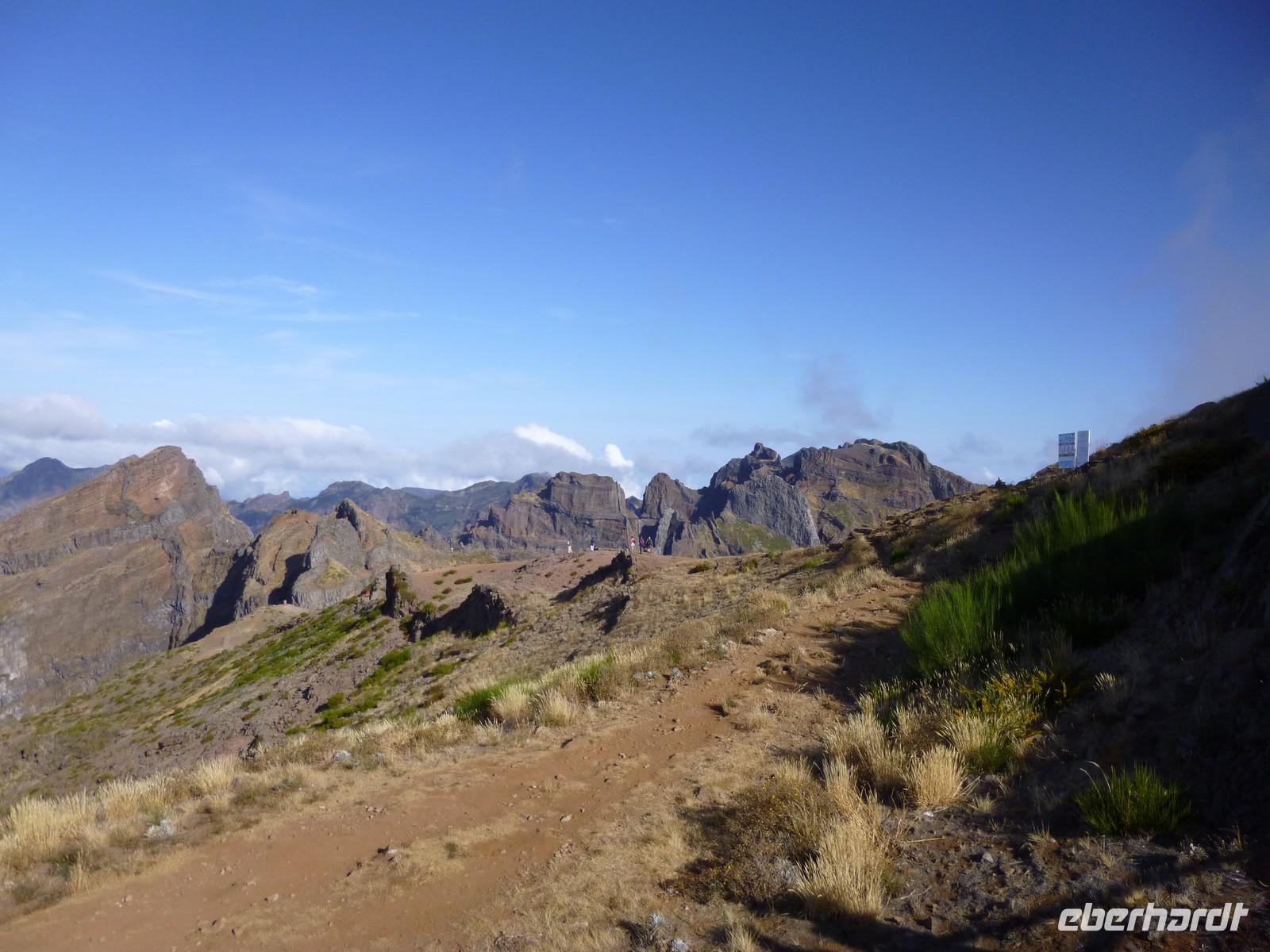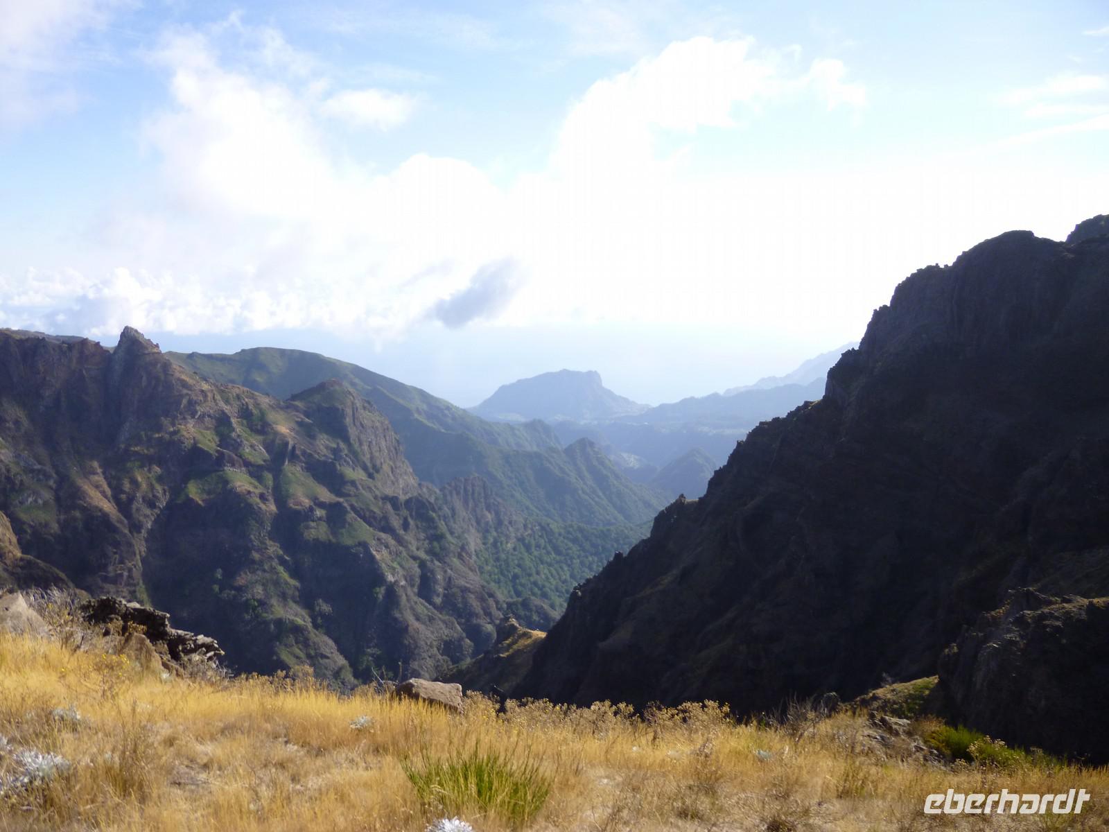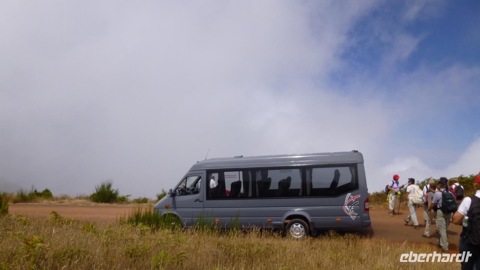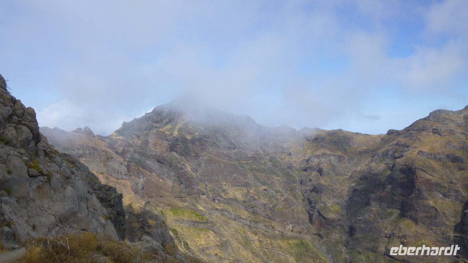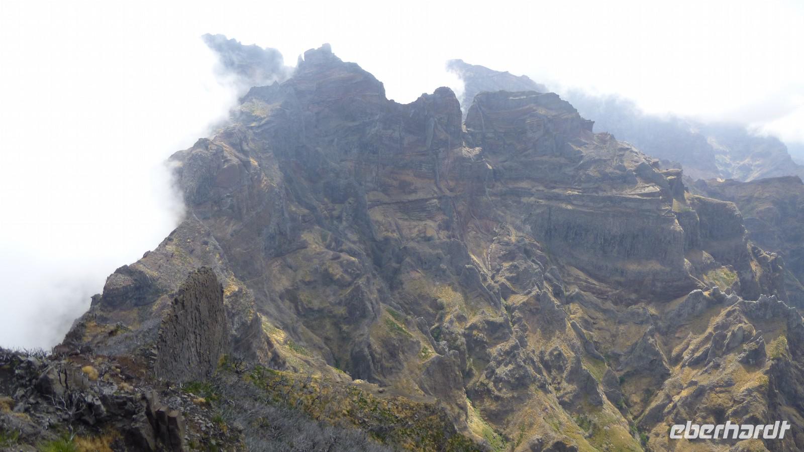 Heute lag die anspruchsvollste Wanderung vor uns, die Wanderung zwischen den Gipfeln Pico de Arivo und Pico Ruivo. Unsere Verpflegung, für diesen Tag, holten wir uns wieder in Santa Cruz. Wir starten unsere Wanderung am Pico Arivo. Vom Gipfel aus hatten wir einen schönen und weiten Blick. Sergio zeigte uns den Nonnenstall und erklärte uns wie der Name des Tals zustande kam. Die Wanderung führte entlang an Steilwänden in eine abgelegene Bergregion. Auf unsere Strecke teilte sich die Gruppe. Ein Teil ging mit Sergio den Tunnelweg, der andere Teil folgte mir über den Berg. Der Aufstieg war steil und durchaus anspruchsvoll, dafür hatte man einen wunderschonen Blick auf die beiden Gipfel. Die Gruppe, die Sergio führte verlief durch sieben Tunnel und über einen befestigten Weg. Beide Gruppen trafen sich am Forsthaus, von hier bewältigten wir die letzten 500m bis zum Gipfel. Von hier aus hatte man einen wunderbaren Blick über Madeira. Die letzte kurze Strecke legten wir dann gemeinsam zurück. Unser Busfahrer brachte uns anschließend nach Santana, wo wir die Möglichkeit hatten uns die Dreieckshäuschen mit ihren Strohdächern anzusehen oder uns die Zeit bei einem Kaffee oder Bier zu genießen.