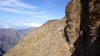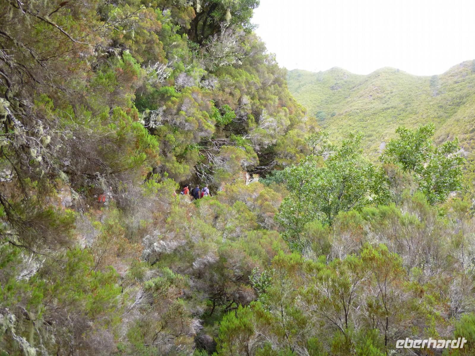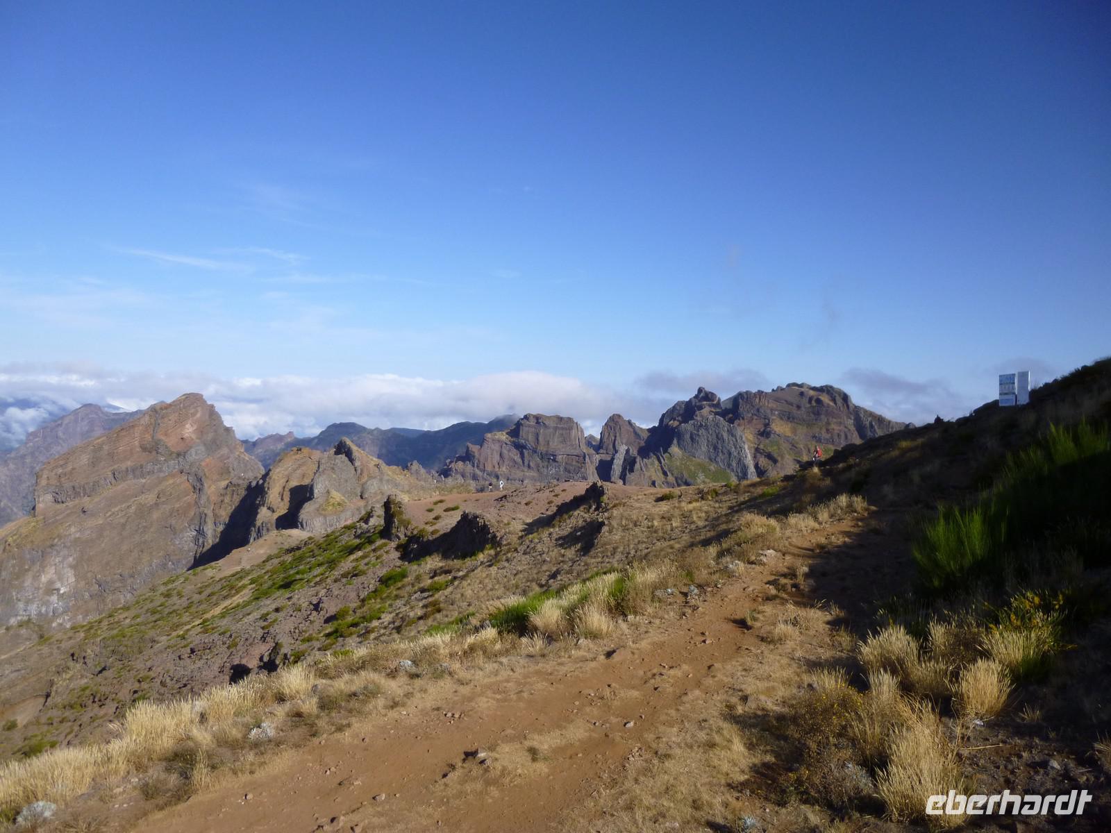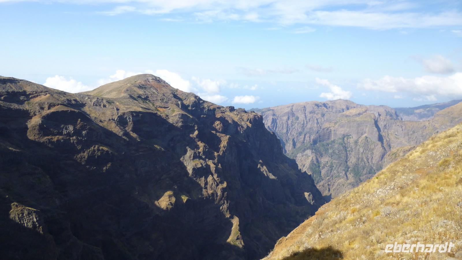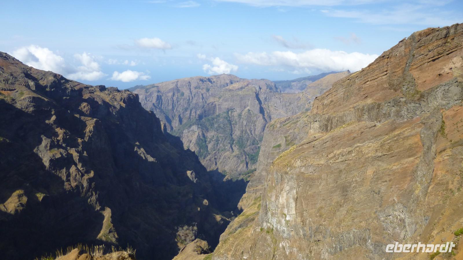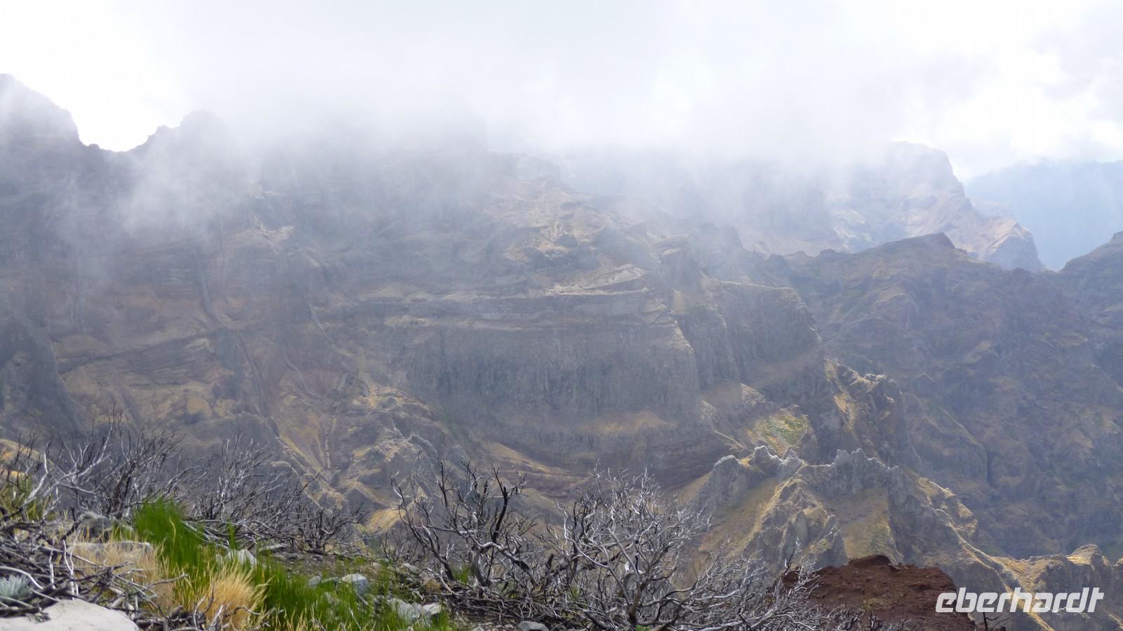 Heute lag die anspruchsvollste Wanderung vor uns, die Wanderung zwischen den Gipfeln Pico de Arivo und Pico Ruivo. Unsere Verpflegung, für diesen Tag, holten wir uns wieder in Santa Cruz. Wir starten unsere Wanderung am Pico Arivo. Vom Gipfel aus hatten wir einen schönen und weiten Blick. Sergio zeigte uns den Nonnenstall und erklärte uns wie der Name des Tals zustande kam. Die Wanderung führte entlang an Steilwänden in eine abgelegene Bergregion. Auf unsere Strecke teilte sich die Gruppe. Ein Teil ging mit Sergio den Tunnelweg, der andere Teil folgte mir über den Berg. Der Aufstieg war steil und durchaus anspruchsvoll, dafür hatte man einen wunderschonen Blick auf die beiden Gipfel. Die Gruppe, die Sergio führte verlief durch sieben Tunnel und über einen befestigten Weg. Beide Gruppen trafen sich am Forsthaus, von hier bewältigten wir die letzten 500m bis zum Gipfel. Von hier aus hatte man einen wunderbaren Blick über Madeira. Die letzte kurze Strecke legten wir dann gemeinsam zurück. Unser Busfahrer brachte uns anschließend nach Santana, wo wir die Möglichkeit hatten uns die Dreieckshäuschen mit ihren Strohdächern anzusehen oder uns die Zeit bei einem Kaffee oder Bier zu genießen.
