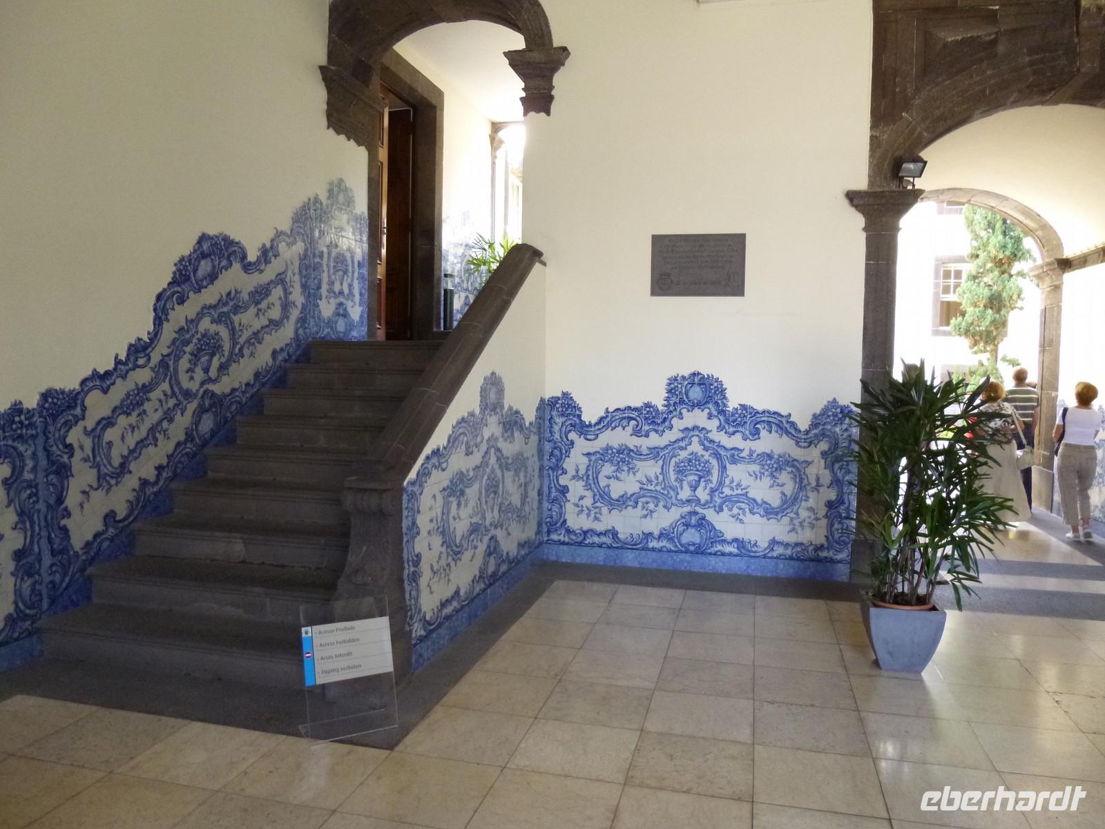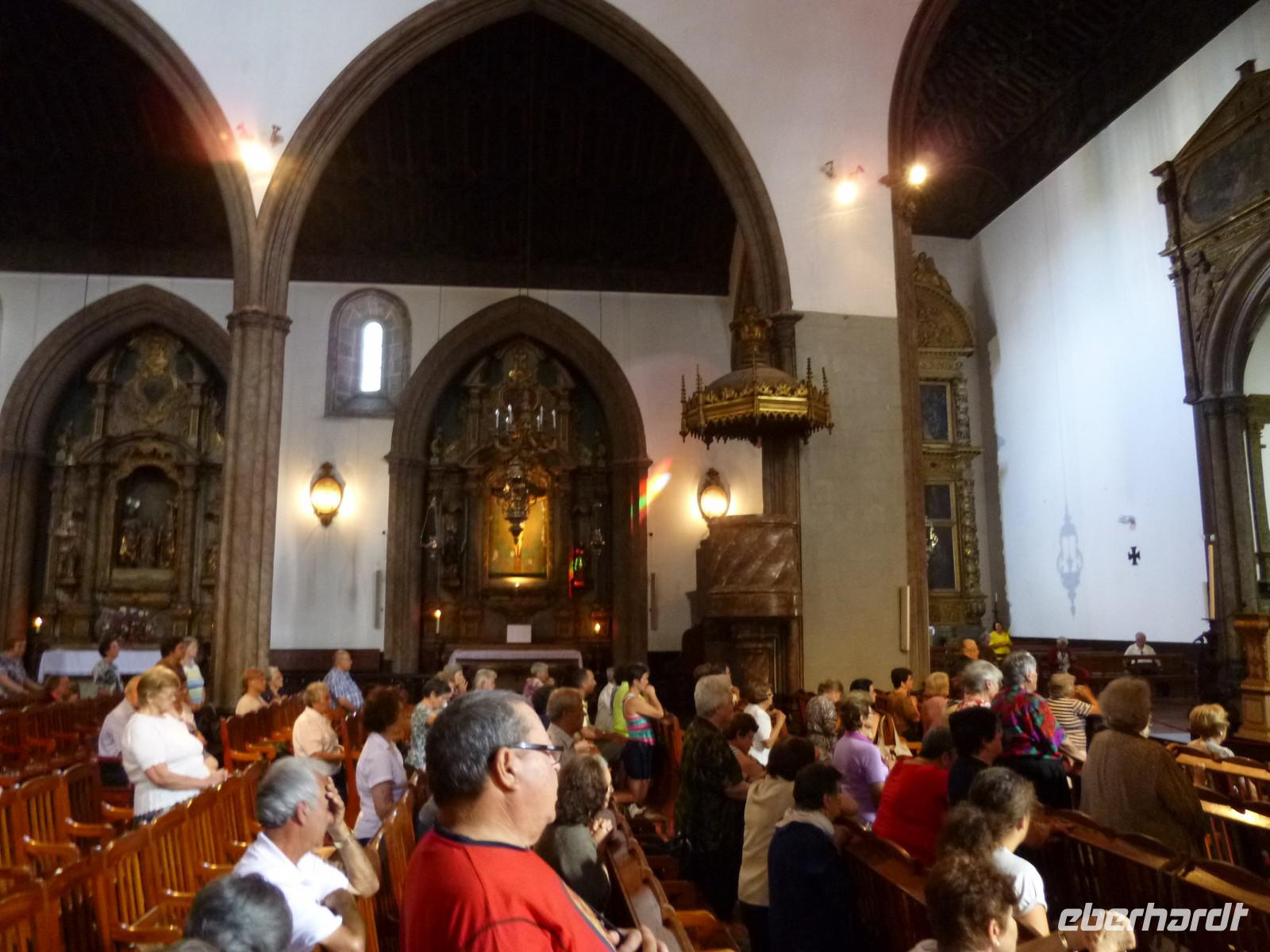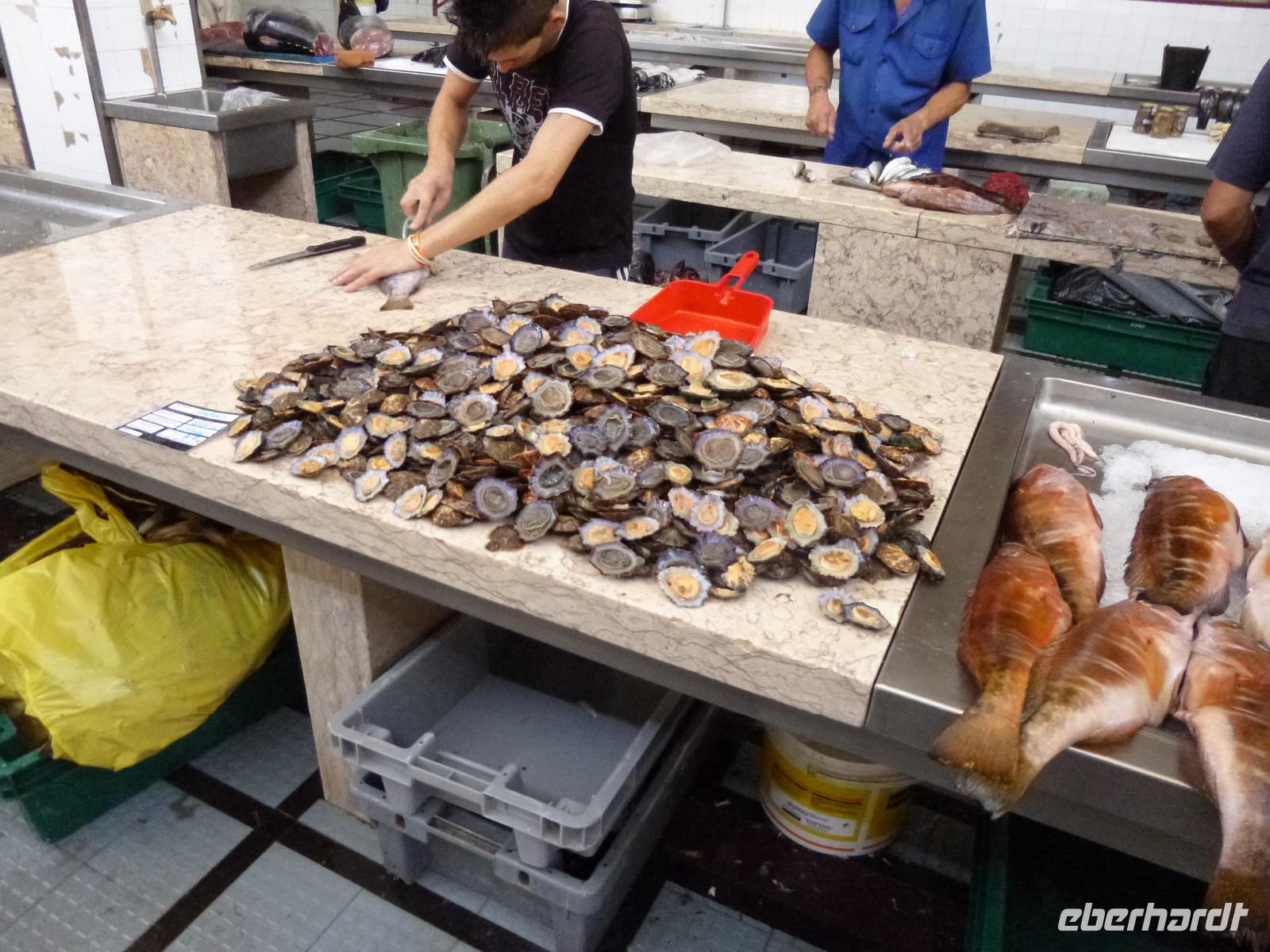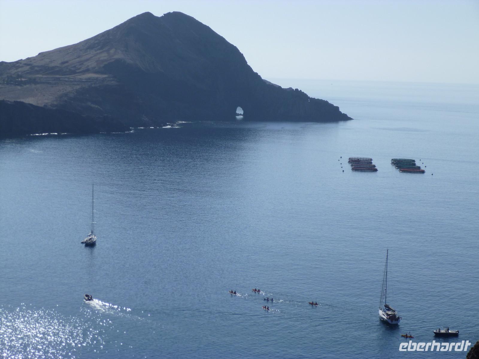 Der heutige Tag stand ganz im Zeichen der größten Stadt Madeiras. Als erstes schauten wir uns den Botanischen Garten an. Sergio führte uns durch die verschiedenen Bereiche und brillierte mit seinem botanischen Wissen. In Funchal selbst führte uns Sergio zuerst an die Kathedrale. Er erklärte uns die historischen Fakten und zeigte uns die Statue des Papstes Johannes Pauls des zweiten, die zu ehren eines Besuchs dessen errichtet wurde. Unser zweiter Programmpunkt war die Besichtigung der „Blendys" - Madeira Wein Company. Nach der Führung, von Sergio, durch den Produktionsprozess konnten wir uns bei einer Probe von der Qualität und den geschmacklichen Unterschiede der Weine überzeugen und für unseren Geschmack den Besten finden. Weiter ging es über den Rathausplatz, Jesuitenkirche und die vielen kleinen Gassen Funchals. In der Markt- und Fischhalle konnten wir uns das Treiben der Händler beobachten und die Vielfalt der Waren bestaunen. Nach der Stadtbesichtigung bot sich die Möglichkeit mit Sergio ins Hotel zurück zu fahren, welche von einigen Gästen wahrgenommen wurde. Für die Gäste die noch etwas in der Stadt bleiben wollen hatte ich einen Hoteltransfer organisiert, so hatte jeder noch die Möglichkeit seine eigenen Eindrücke zu sammeln. Einige Gäste fuhren mit der Seilbahn nach Monte und besichtigten die Kirche oder genossen eine Korbschlittenfahrt. Heute Abend habe ich für alle ein gemeinsames Degenfischessen im Restaurant Atlantis bestellt. Alle waren von der Aussicht begeistert. zusätzlich konnten wir noch eine Gruppe Nachttaucher beobachten, deren Lampen im Atlantik immer wieder aufleuchteten.