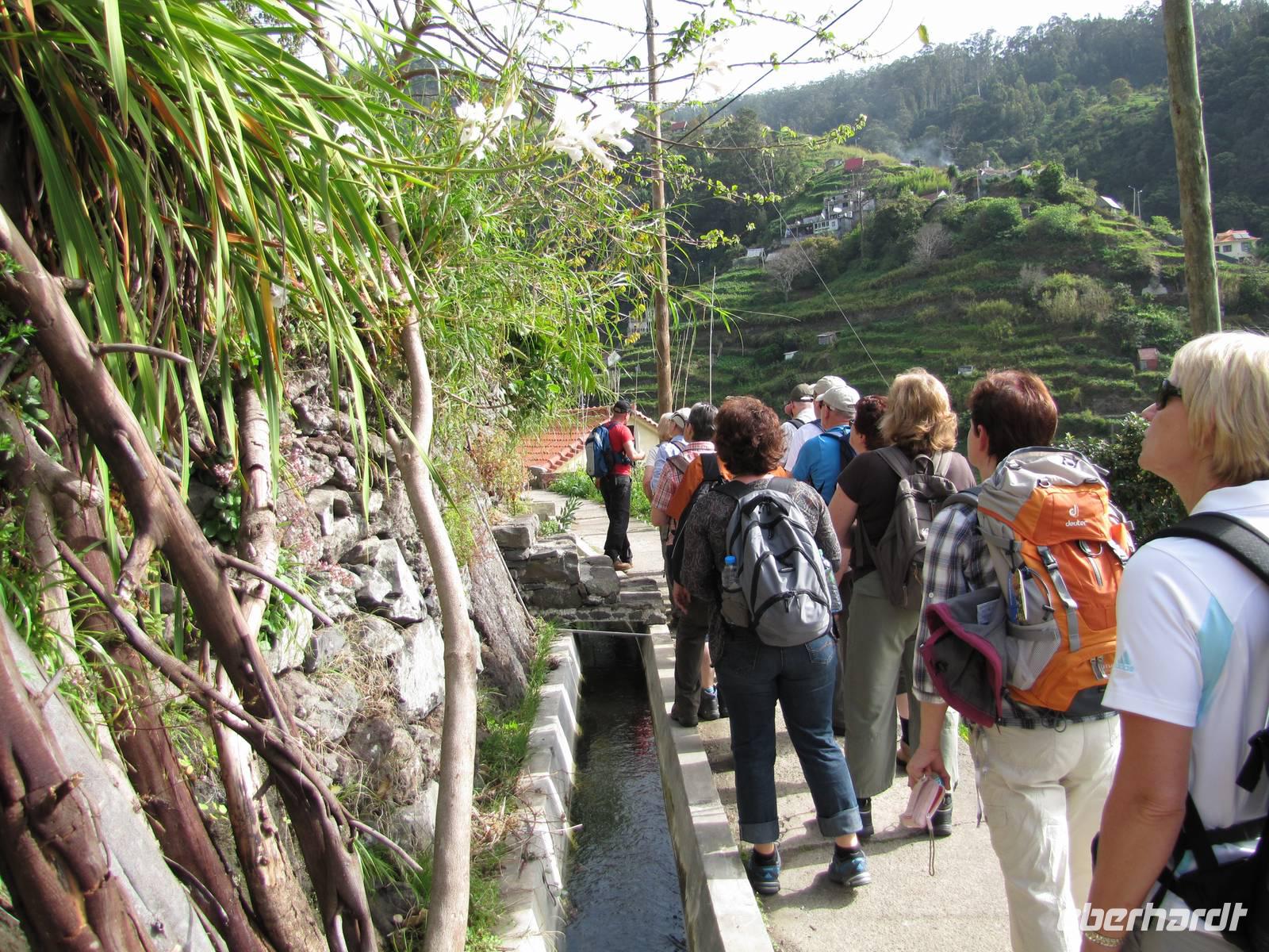 Gut ausgeschlafen machten sich 21 Wanderer mit Ihrem Reiseleiter und Begleiter auf zur ersten Wanderung. Um 9.00 Uhr fuhren wir ca. 30min., vorbei an Machico zum Ausgangspunkt der Wanderung. Heute kamen besonders die Naturliebhaber auf Ihre Kosten, denn wir wanderten ca. 4 Stunden entlang der Levadas, der Bewässerungskanäle der Insel. Unser Reiseleiter Nuno erklärte uns viel über Flora und Fauna der Insel. Nach ca. 2 Stunden machten wir eine kurze Mittagspause an einem kleinen Café. Mit Blick auf die Berge bei herrlichem Sonnenschein, genoss jeder seinen ersten Urlaubstag. Nach der Pause wanderten wir noch ca. 2 Stunden entlang der Levadas, bevor wir zum Hotel zurück fuhren. Zum Abendessen gingen wir wieder 19.00Uhr in ein von mir ausgewähltes Restaurant. Wir liefen ins untere Dorf, nach Canico de Baixo zum Restaurant Villa Ventura. Dort gab es wieder Menüessen. Nach dem Abendessen hatte ich für die Gruppe Taxis bestellt, die uns wieder zum Hotel fuhren.