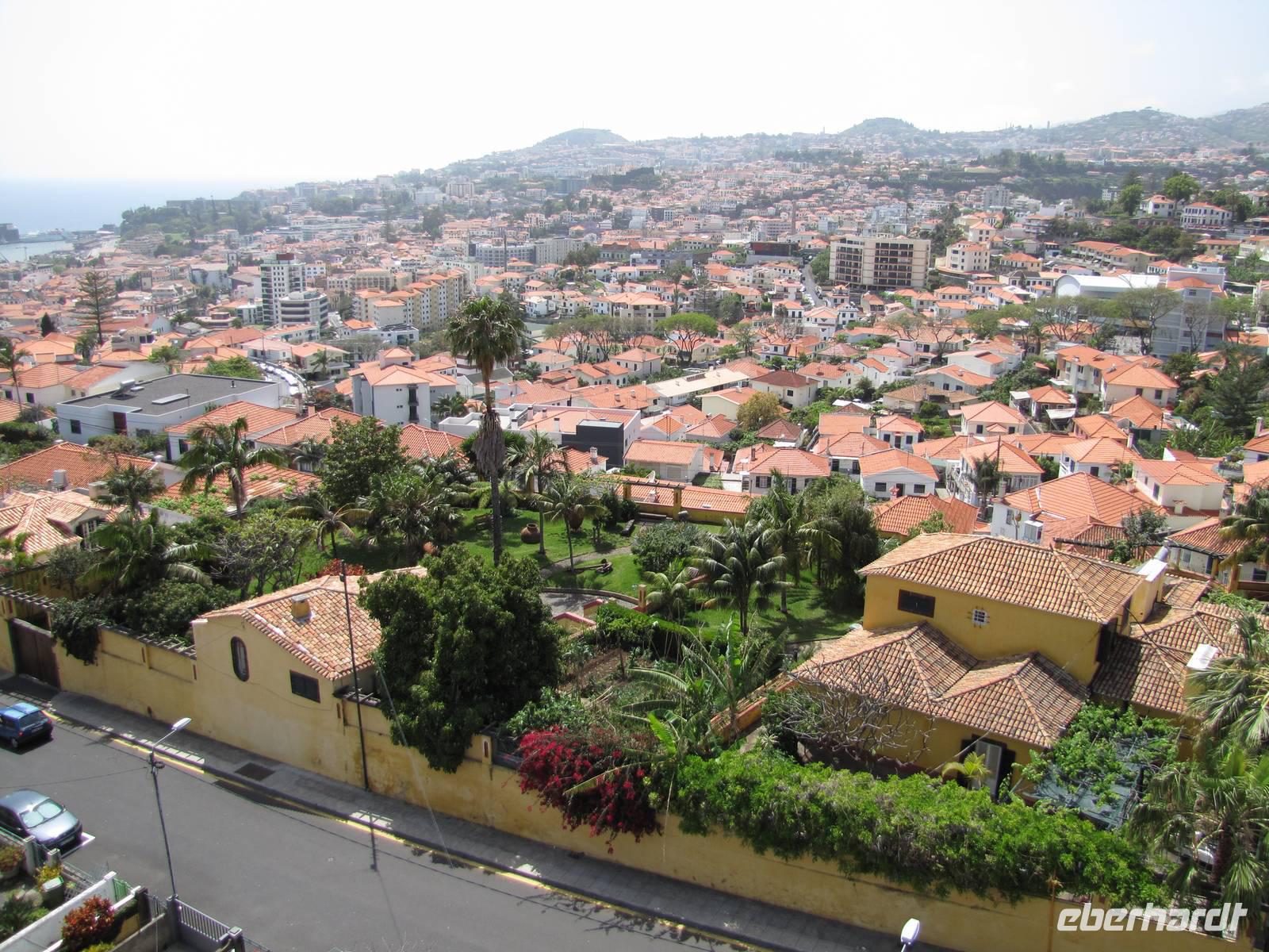 Früh zum Frühstück wurde unser „Unfallgast" zurück ins Hotel gebracht. Wohl auf und ohne ernsthafte Verletzung hat er seinen Sturz gut überstanden. Wir waren alle froh dass Ihm nichts Schlimmeres passiert ist. Gegen 9.00 Uhr fuhren wir zusammen mit Nuno in die Hauptstadt von Funchal, zuerst besichtigten wir den Botanischen Garten. Ca. eine Stunde führte uns Nuno durch die traumhaft schöne Gartenanlage. Er erklärte uns wieder einmal wieder viel über Pflanzen. Zum Schluss konnten wir noch tropische Vögel bestaunen, wo einige neben Spanisch auch Deutsch sprechen konnten. Zwei grüne Papageien riefen uns „Ola" zu oder „Oma" & „Papa" zu. Wir lachten alle ausgiebig und daraufhin lachten die Papageien zurück. Welch lustiges Erlebnis. Nach dieser Aufmunterung ging es ins Stadtzentrum. Dort besichtigten wir die Markthalle und Fischhalle von Funchal. Besonders interessant war der schwarze Degenfisch anzuschauen, der in über 1000m tiefe vor der Küste Madeiras lebt. Anschließend spazierten wir noch gemütlich durch die Innenstadt, vorbei an der Kathedrale bis hin zur Weinverkostung der Blandys Kellerei. Nach einem kleinen Rundgang und einer Verkostung ging es wieder zum Bus. Unser letzter Anlaufspunkt war das Anwesen der Kräuterhexe Esmeralda. Dort gab es erst einmal Tee, Kuchen und leckere Chili- Marmelade mit Nussbrot. Nach der Teepause zeigte uns Esmeralda noch ihren Kräutergarten und erklärte die Wirkung einiger Heilpflanzen. Danach war der offizielle Teil der Stadtbesichtigung von Funchal beendet. Einige Gäste fuhren zurück zum Hotel, alle anderen gingen mit mir noch ein Eis oder Mittagssnack essen am Hafen von Funchal. Danach spazierten wir entlang der Promenade zur Gondelstation und fuhren mit der Gondelbahn zum Berg Monte, hoch über den Dächern der Stadt. Berg ab ging es dann mit den traditionellen Korbschlitten. Welch großer Spaß! Rückzu hatte ich wieder Taxis zum Special-Preis bestellt. Zum Abendessen gingen wir wieder in ein von mir auserwähltes Restaurant.