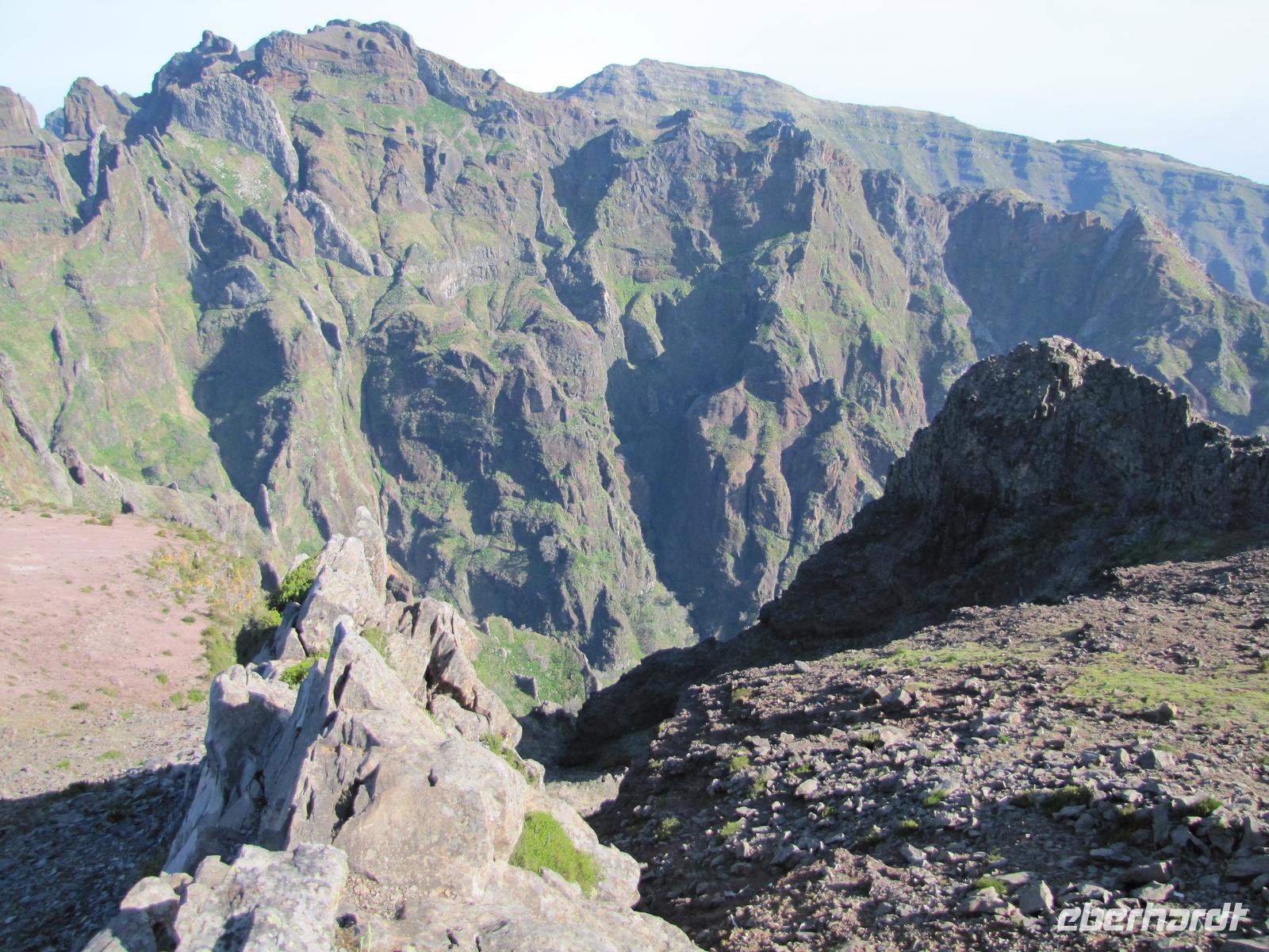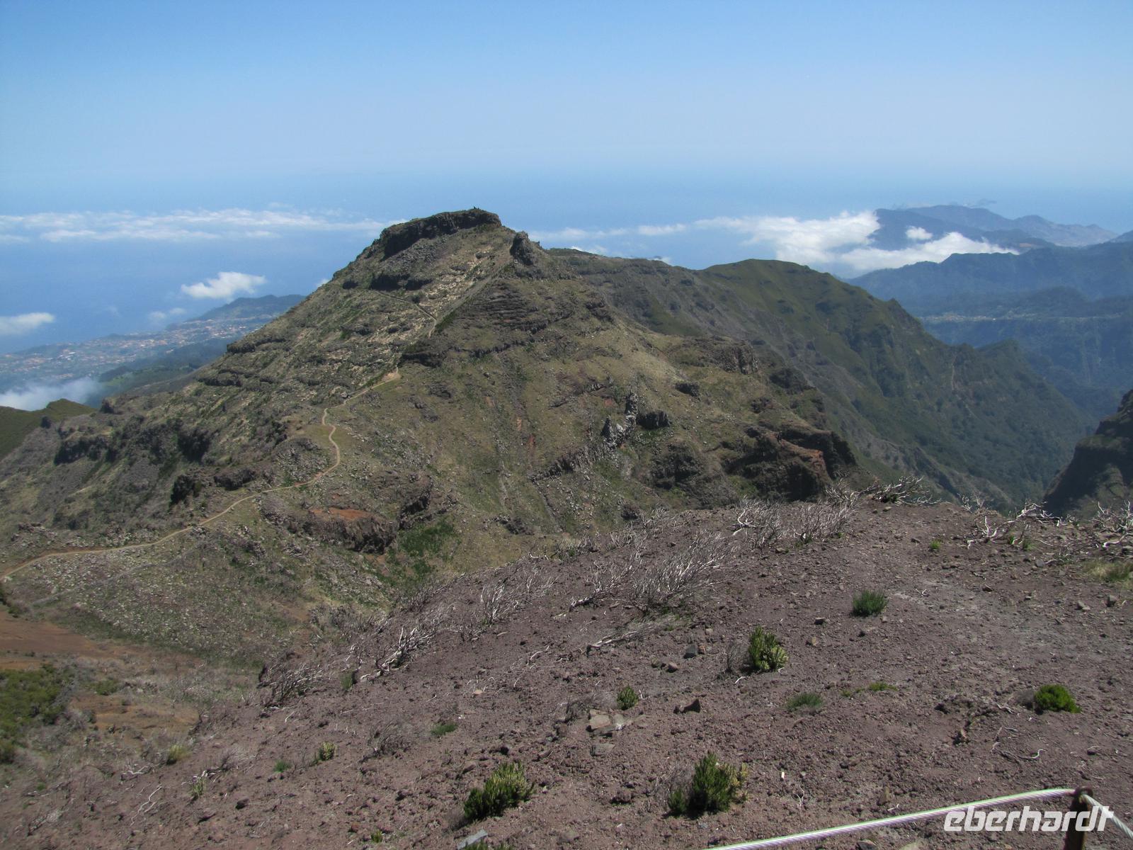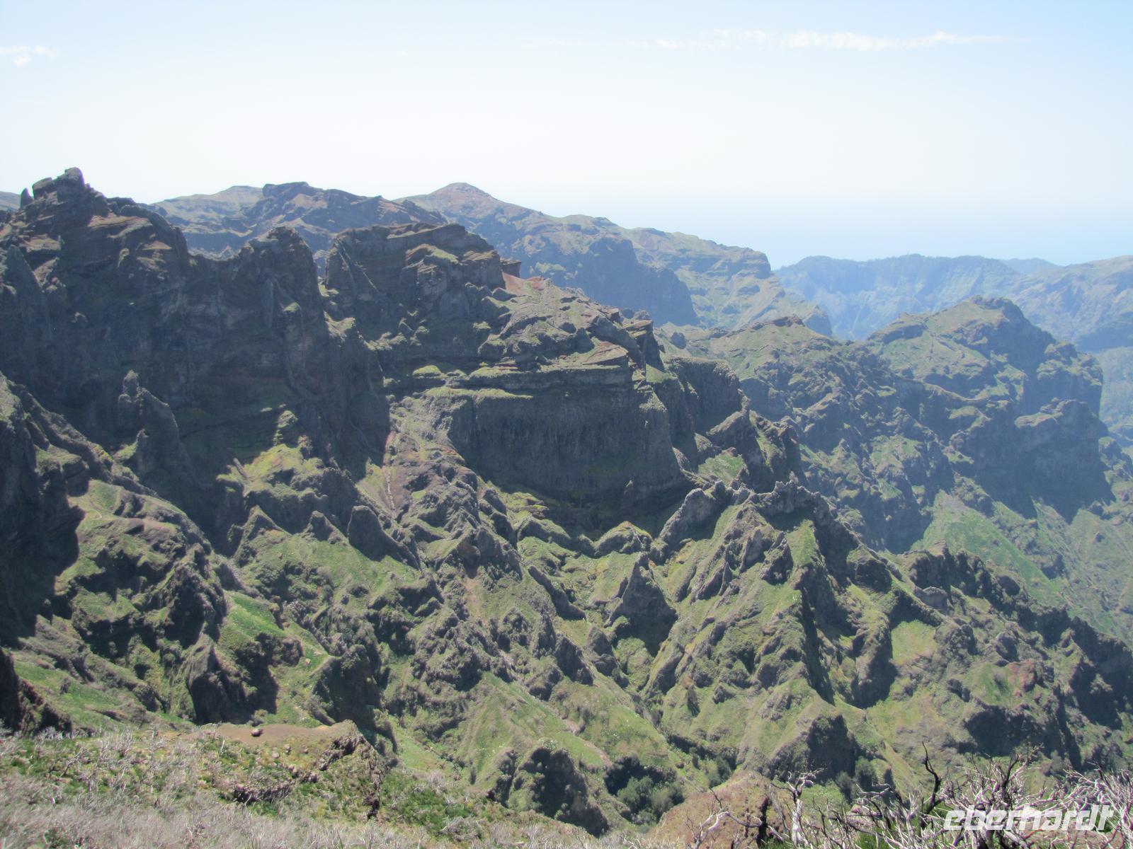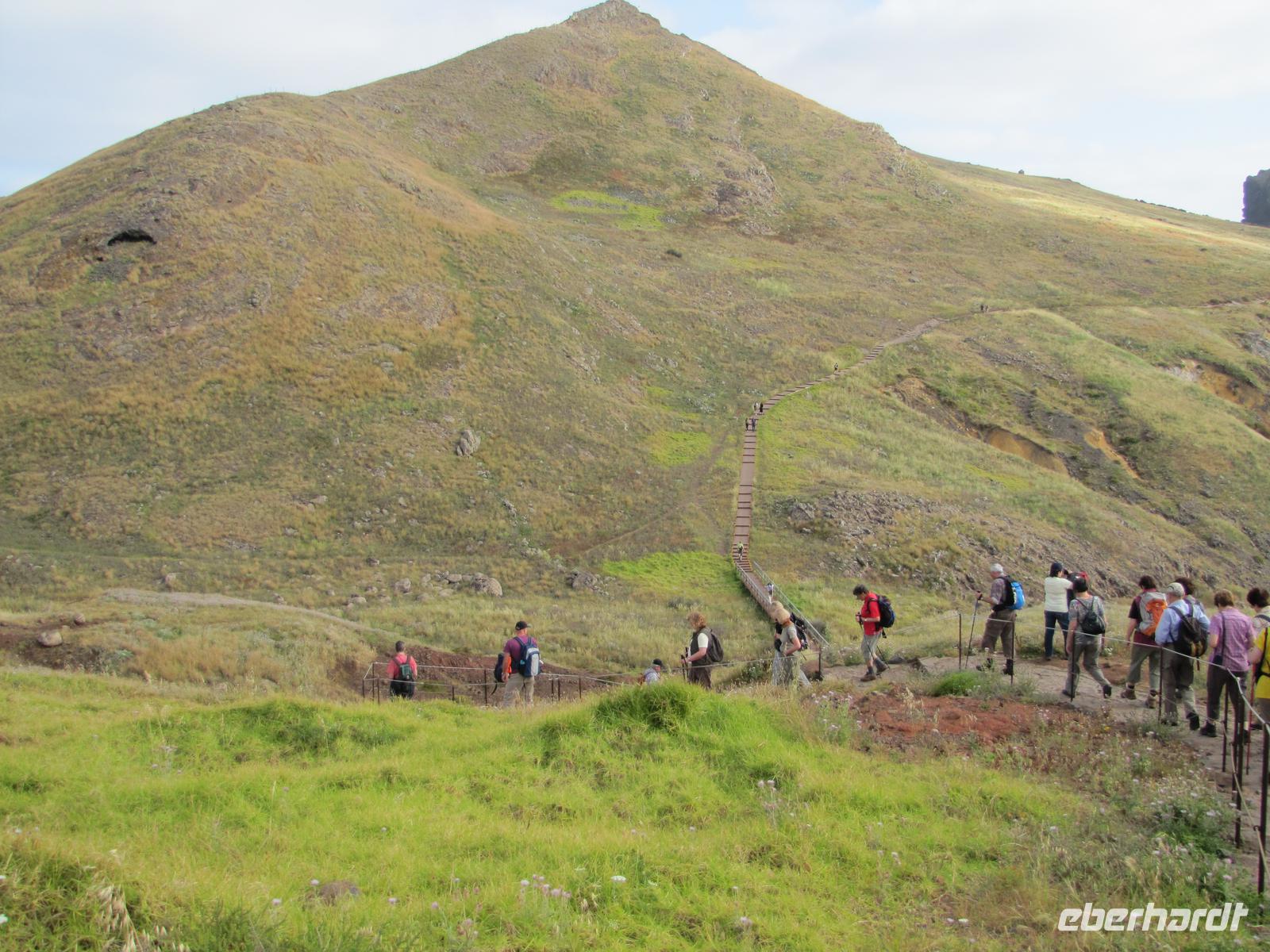 Wenn die tolle Reise einen Höhepunkt hätte, dann wäre es sicher der heutige Tag. Denn wahrhaftig erlebten wir heute den Höhepunkt der Gebirgswelt von Madeira. Schon allein der Ausgangspunkt der Wanderung begeisterte uns mit einem tollen Rundumblick über die ganze Insel. In über 1800m blickten wir über den Wolken auf unsere heutige Wanderstrecke. Die heutige Tour war die anspruchsvollste von allen, jedoch bei angenehmem Tempo kein Problem für uns. Der erste Teil ging ständig bergab, danach durchquerten wir 5 Tunnel, wofür wir unsere Taschenlampen brauchten. Kurz vor der Mittagspause auf einer Berghütte ging es noch einmal einige Meter wieder bergauf. Wir pausierten ca. 90min. denn wer wollte konnte in der Zeit ca. 20min. zum Gipfel des Pico Ruivo aufsteigen. Ganz oben in 1862m. blickten wir wieder über die imposante Bergwelt von Madeira. Nach der Pause bzw. dem Aufstieg versammelten wir uns alle wieder und wanderten noch ca. eine Stunde zum Bus. Nach dieser tollen Wanderung hatten alle gut Farbe abbekommen, da unterwegs so gut wie keine Wolken über uns waren. Auf dem Rückweg mit dem Bus hielten wir noch einmal für 30min. in Santana um die bekannten Strohhäuser zu fotografieren. Abends gingen wir wieder in ein tolles Restaurant in Canico de Baixo.