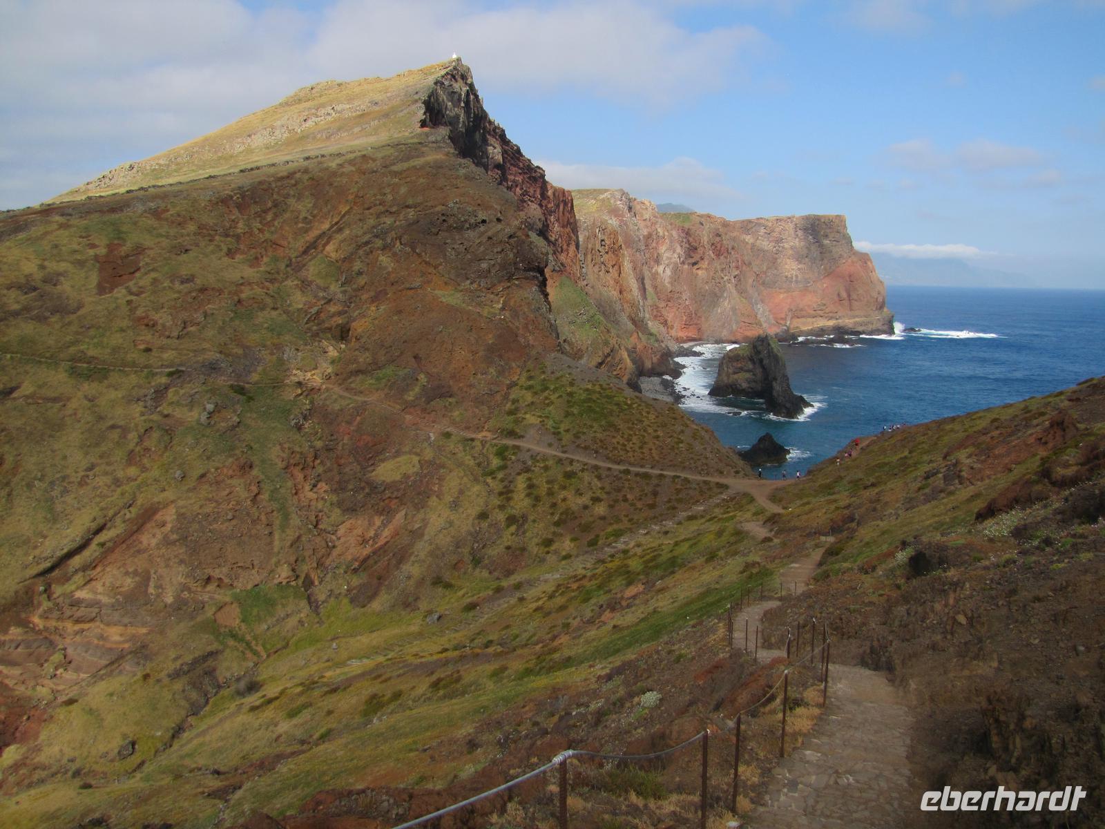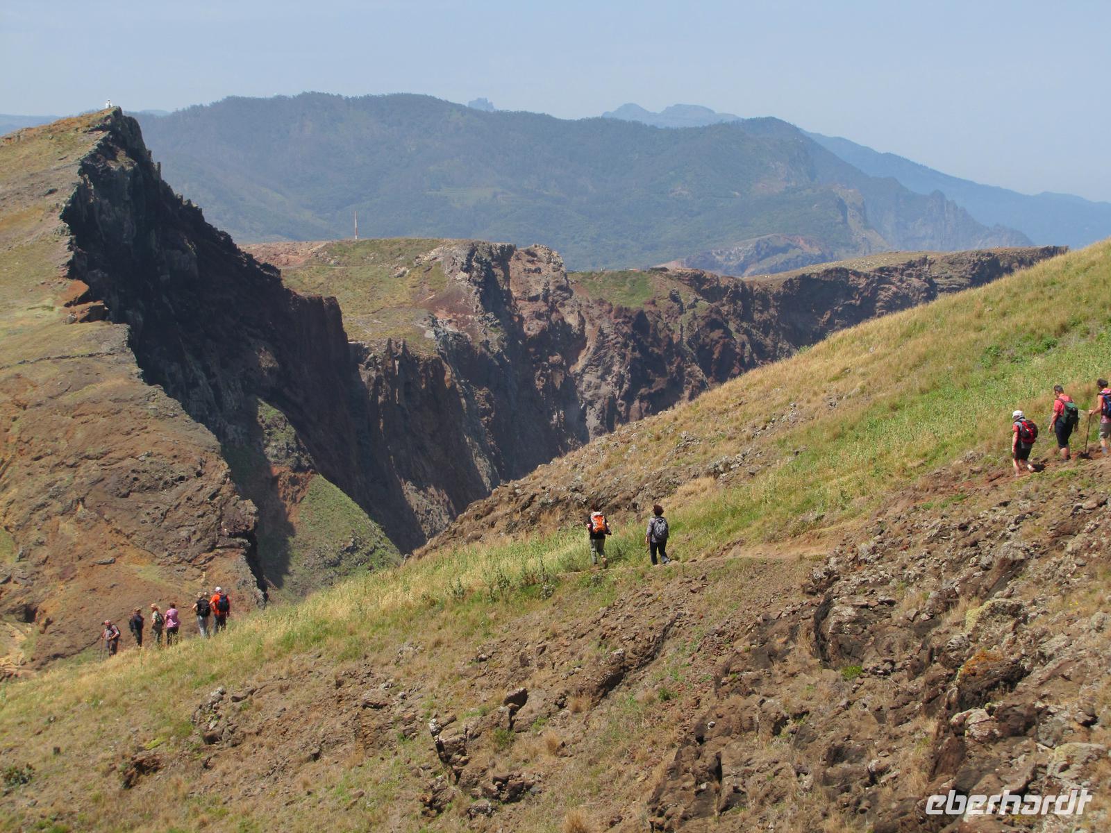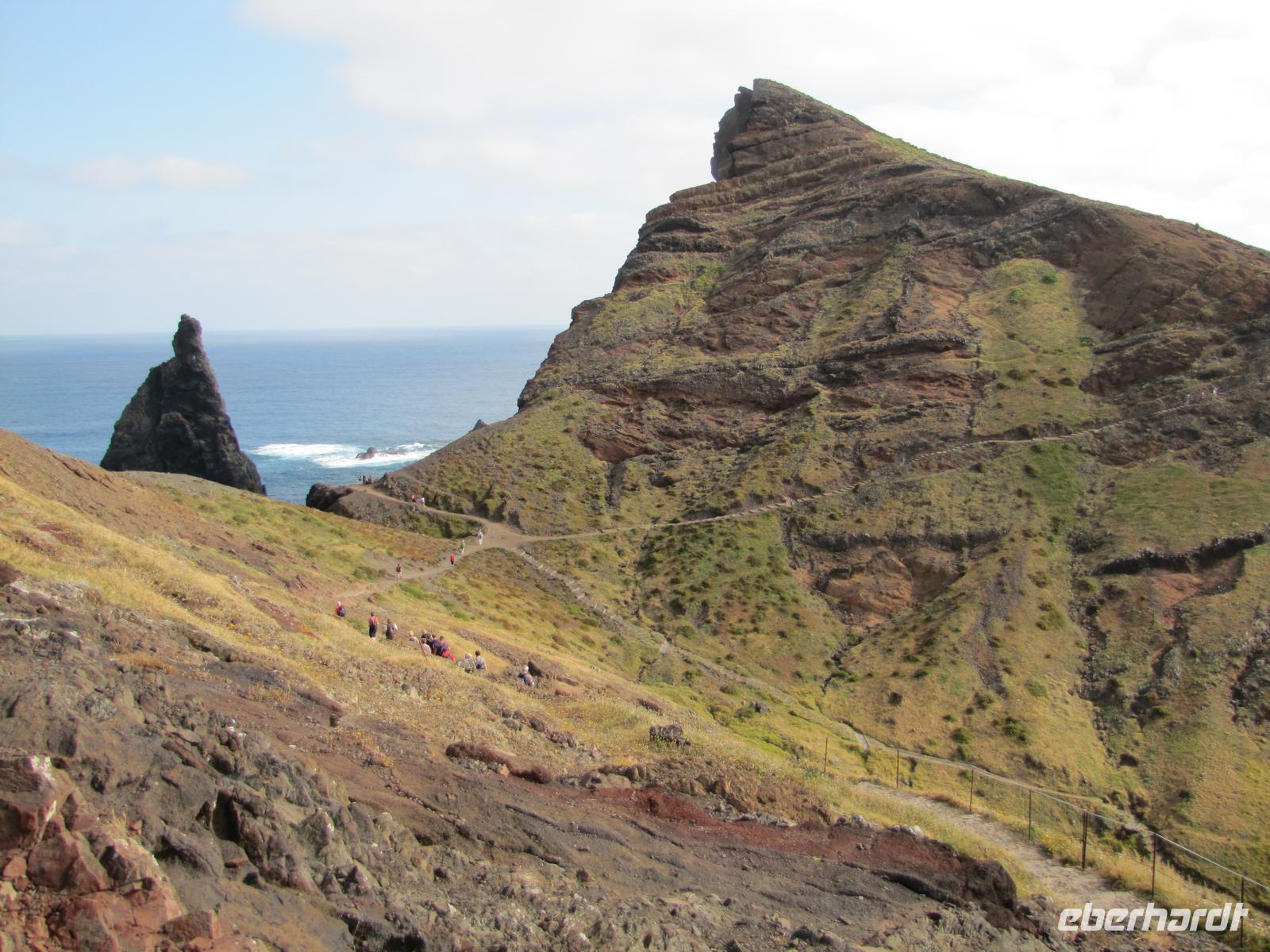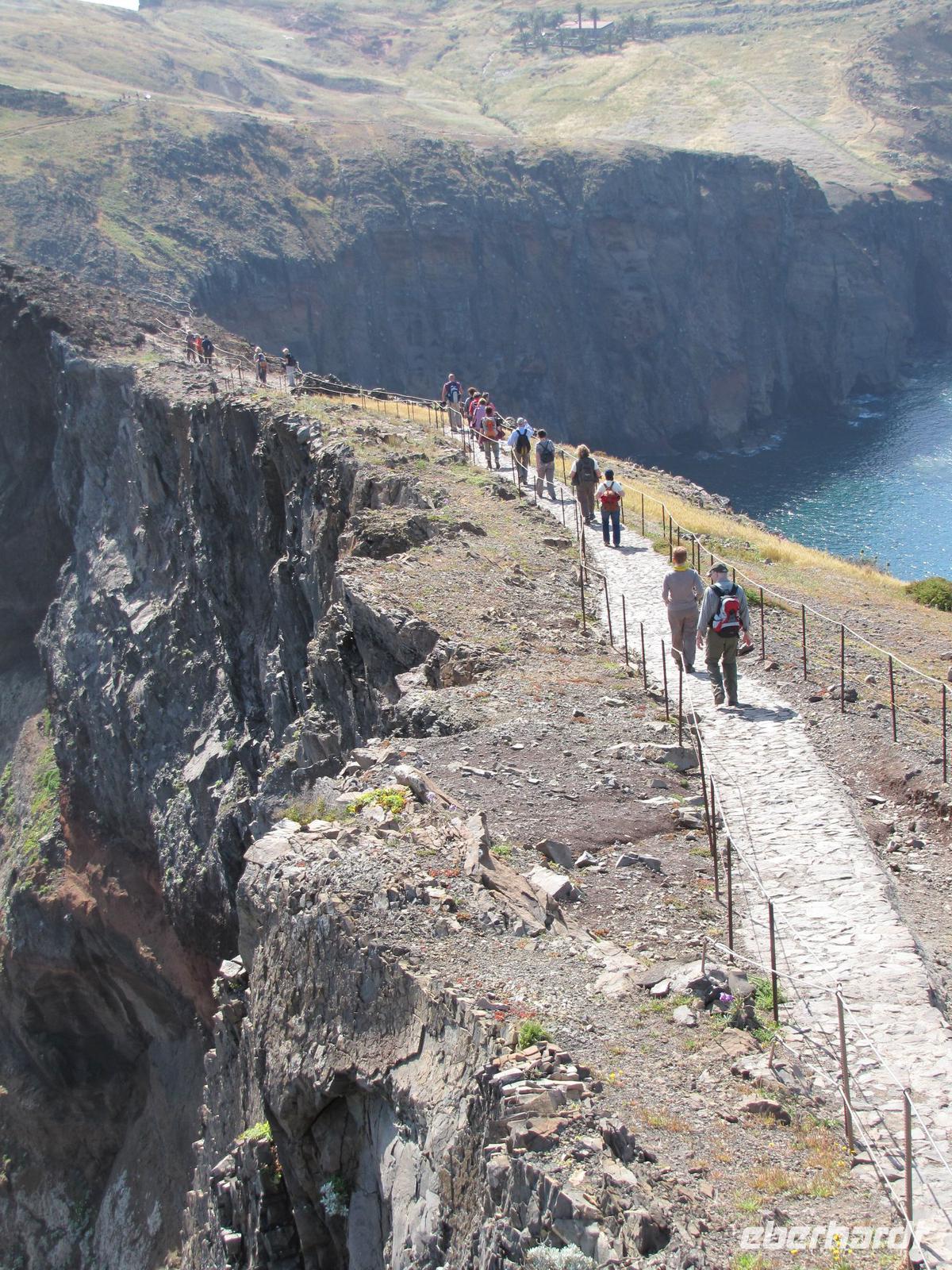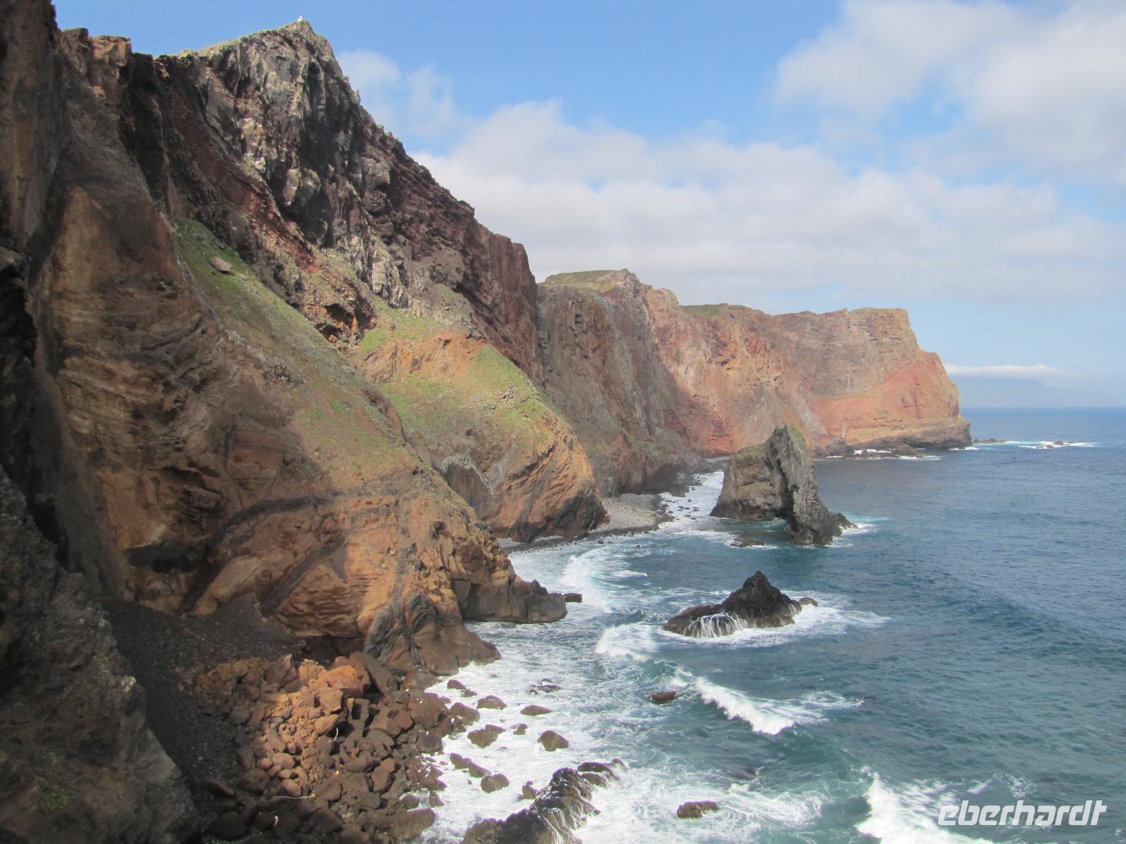Die Ostküste von Madeira erstreckt sich mit schroffen Felsen weit ins Meer hinein. Bei herrlichem Sonnenschein starteten wir unsere Wanderung entlang der beeindruckenden Felskulisse in Richtung Ostspitze. Durch den angenehmen Küstenwind war die Sonne gut erträglich. Natürlich waren wir gut eingecremt und mit Kopfbedeckungen vor der Sonne geschützt. Wir wanderten alle hintereinander entlang der atemberaubenden Landschaft mit stetigem Blick auf den brausenden Atlantik. Kleine Fotostopps und kleine Erklärungen durch Nuno machten die Wanderung zu einer entspannten Tour. Nach ca. 2 Stunden erreichten wir eine kleine unbewohnte Hütte, nahe einer Bucht. Dort machten wir eine Stunde Mittagspause. In der Zeit konnten wir außerdem ca. 20min. zum Ostgipfel ca. 300 Meter aufsteigen. Von da aus hatte man einen traumhaften Blick auf die gesamte Süd und Ostküste. Danach ging es wieder zurück zur Ausgangsstelle der Wanderung. Der Rückweg führte etwas weiter unten entlang der Küste. Nach 2 Stunden erreichten wir wieder den Bus. Jeder von uns hatte gut Farbe abbekommen und war stets gut gelaunt nach dieser tollen Wanderung. Um den Tag abzurunden hatte ich für die Gruppe noch am späten Nachmittag eine kleine Gartentour organisiert. Wir wurden von einem Pflanzenkenner durch die Gartenanlage des Hotels geführt und erfuhren viel über die verschiedenen Kräuter und Gemüsearten. Zum Abendessen trafen wir uns wieder 19.00Uhr und es ging noch einmal in das tolle Restaurant vom Vorabend, ins Café Central, weil dies das einzige mit TV war, um das Champions League Halbfinale zwischen Dortmund und Madrid zu sehen.