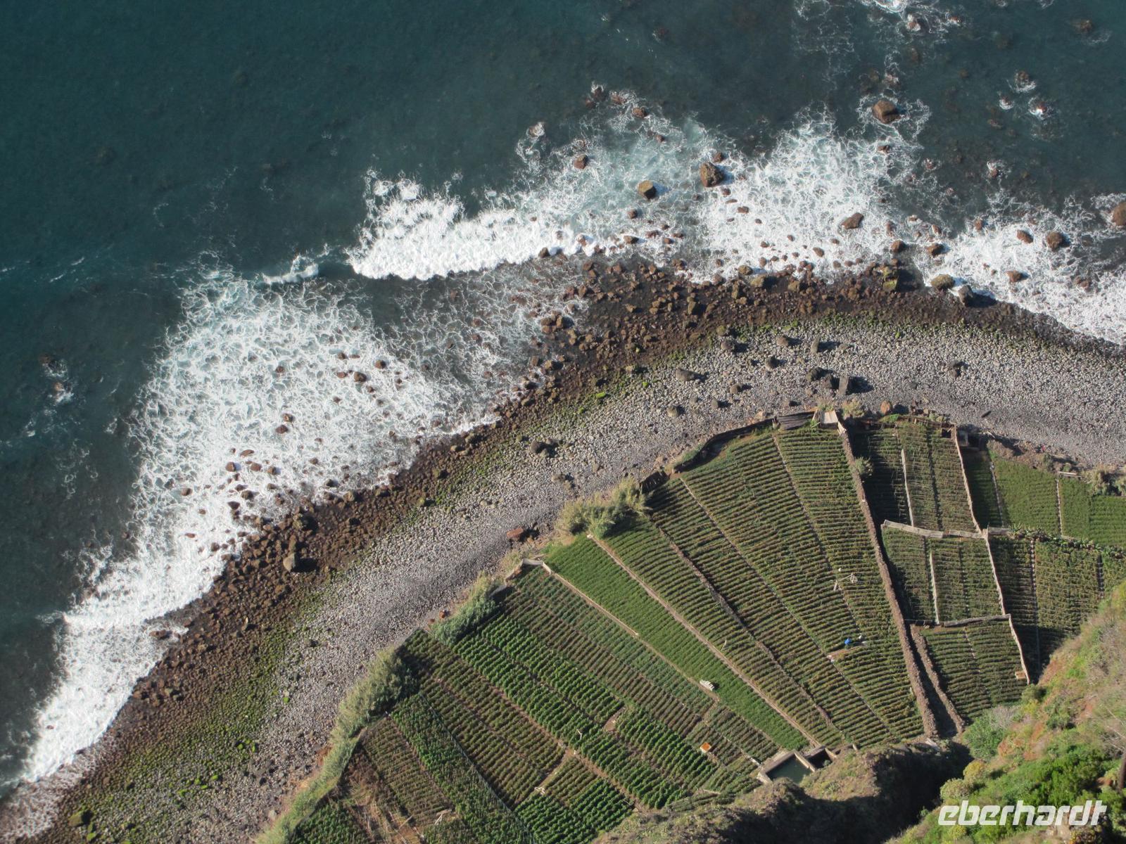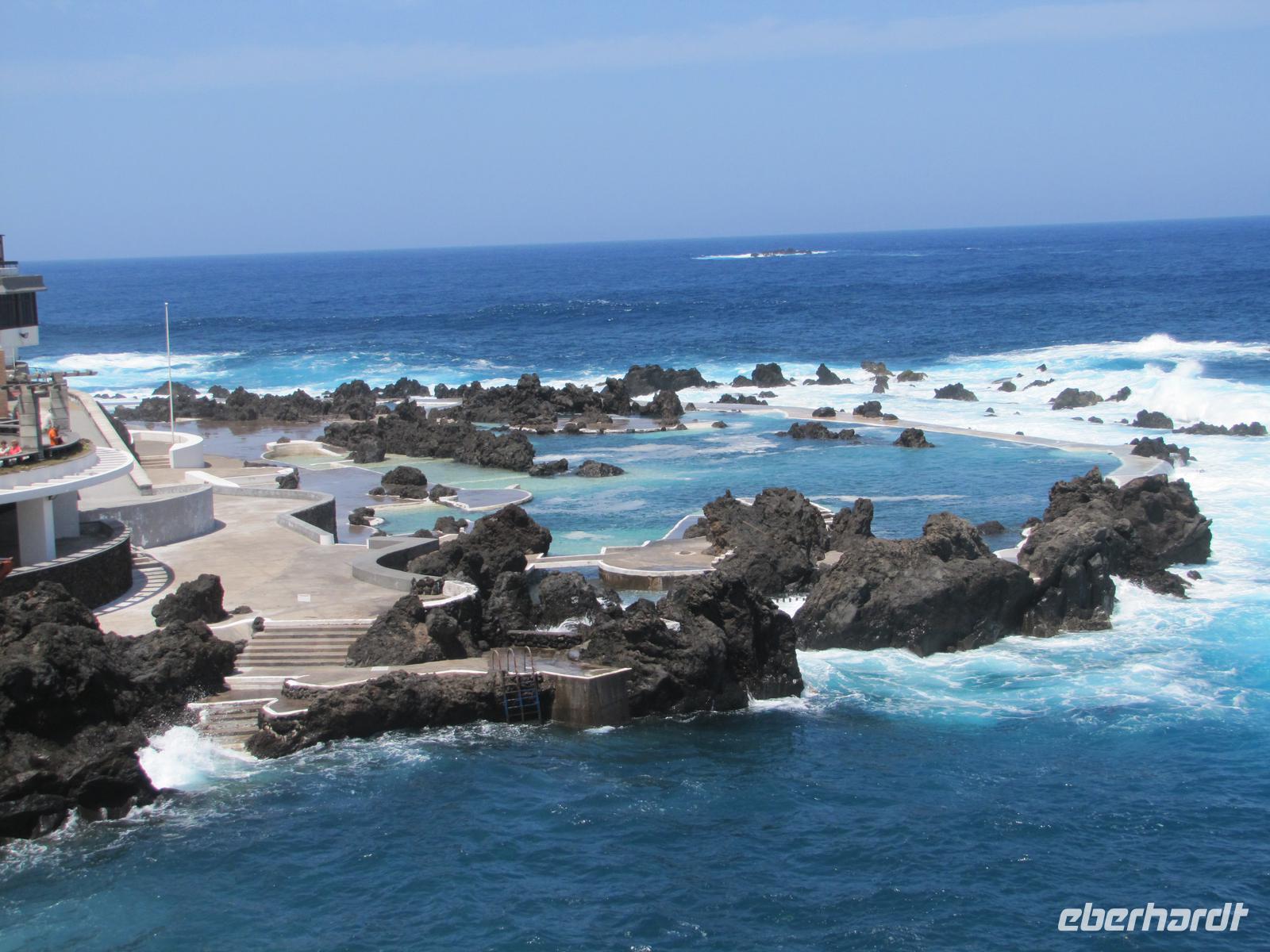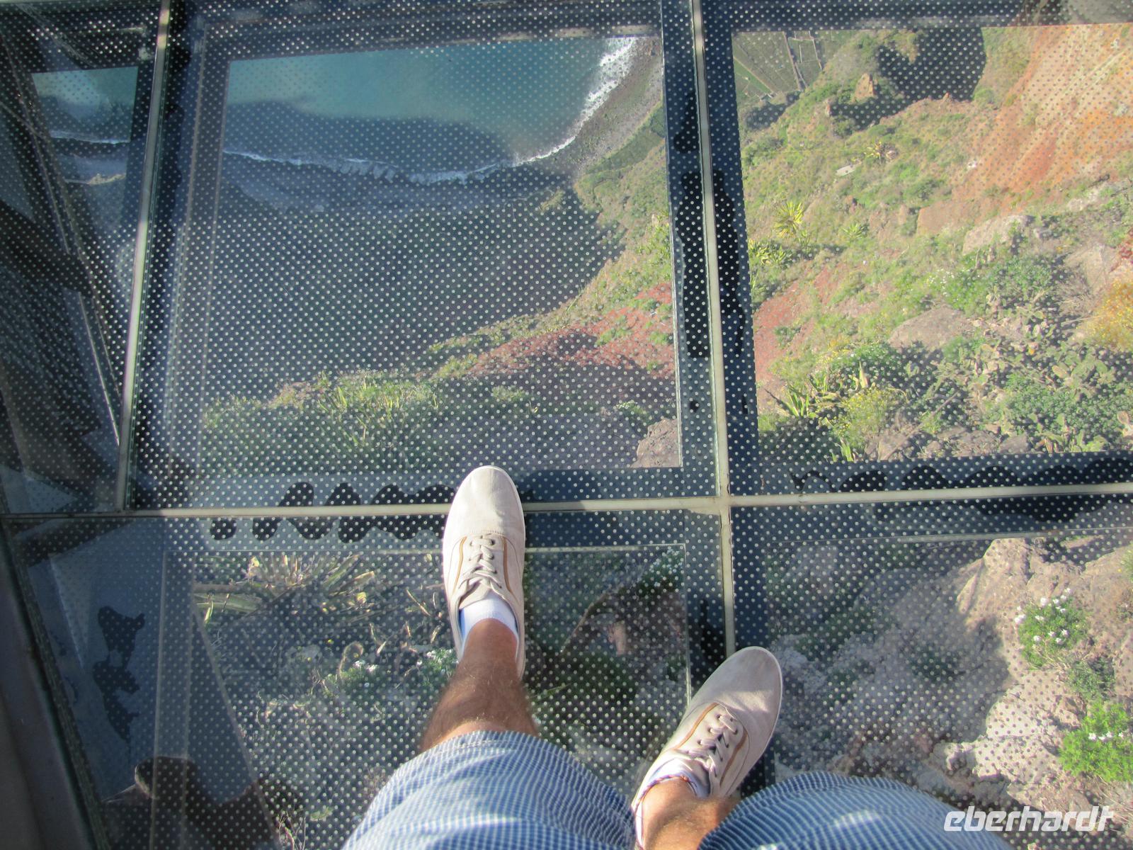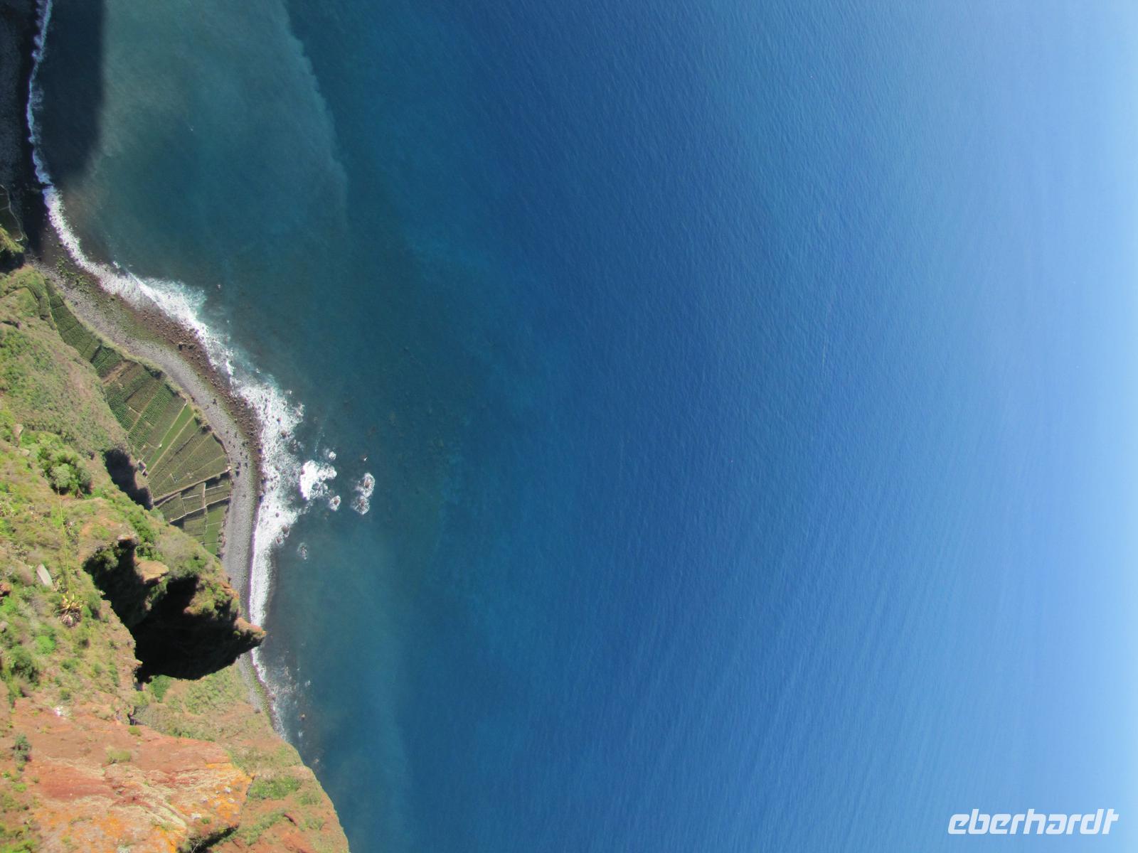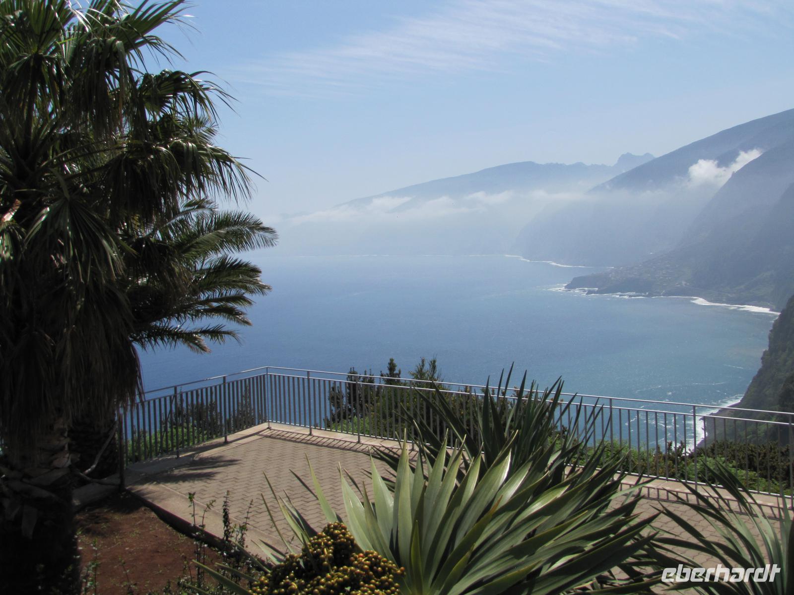 An unserem letzten Tag erkundeten wir die Nordwestküste der Blumeninsel. Als erstes stoppten wir an der höchsten Steilklippe Europas. Dort blickten wir in über 500m tiefe bis auf den untenliegenden Steinstrand. Die neu errichtete Glasplatte ermöglichte es uns direkt in die Tiefe zwischen unseren Füßen zu schauen. Es war ein atemberaubender Anblick. Danach fuhren wir Ribeira Brava und zu einer Bananenplantage. Nuno zeigte uns zusätzlich zum Programm die Plantage und erklärte uns einiges zu den Bananen. Das nächste Ziel war der Encumeada-Pass auf der Hochebene Paul da Serra. Unterwegs nach Porto Moniz stoppten wir noch 2 Mal für kurze Fotostopps bevor wir eine Mittagspause im Badeort einlegten. Wer wollte konnte eine Kleinigkeit mit Essen und anschließend sich kurz in den Meeresschwimmbecken erfrischen. Einige nutzten mit mir die kurze Abkühlung. Nach ca. 2 Stunden ging es weiter entlang der Nordküste nach Sao Vincente. Hier besichtigten wir die kleine Ortschaft mit seiner reizvollen Kirche. Danach machten wir uns mit dem Bus auf den Rückweg und bedankten uns offiziell bei Nuno und dem Busfahrer mit einem gesammelten Trinkgeld. Jeder Tag war eine große Freude mit Ihm und jeder von war begeistert von der Schönheit der Insel. Abends gingen wir noch einmal gemeinsam in ein von mir auserwähltes Restaurant und rundeten die Reise mit einem kleinen Quiz und einer Bilderdiashow meiner Fotos ab.