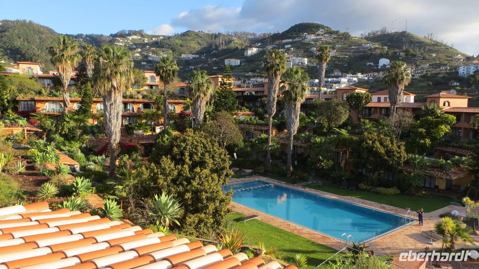 Nun ist es endlich soweit - unsere Wanderreise nach Madeira kann beginnen. Und so treffe ich mich mit 14 wanderfreudigen Gästen am Flughafen in Dresden. Gemeinsam fahren wir im Reisebus mit den Madeira-Rundreisegästen sowie mit einer Reisegruppe, die heute nach Marokko aufbricht, zum Flughafen Berlin Schönefeld. Hier werden wir von unseren 3 restlichen Wanderern in Empfang genommen. Nachdem wir unser Gepäck eingecheckt und auch die Sicherheitskontrolle passiert haben, starten wir voller Vorfreude auf die kommenden Tag via Lissabon in Richtung Madeira. Es ist bereits schon spät abends als wir endlich die Blumeninsel erreichen. Nachdem wir unsere Uhren eine Stunde vorgestellt und unsere Koffer in der Händen halten, verlassen wir das Flughafengebäude, wo wir bereits schon von unserem Wanderreiseleiter Samuel erwartet werden. Er bringt uns in unser traumhaftes Hotel Quinta Splendida, wo wir die nächsten Tage untergebracht sind. Geschafft von der Anreise fallen wir nach einem kleinen Schlaftrunk in Form eines Madeira-Weins ins Bett.