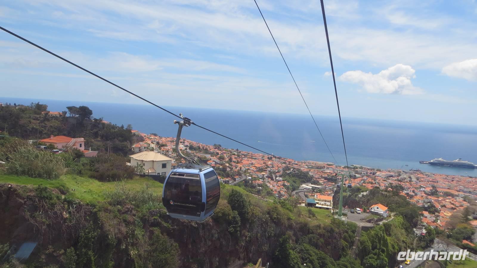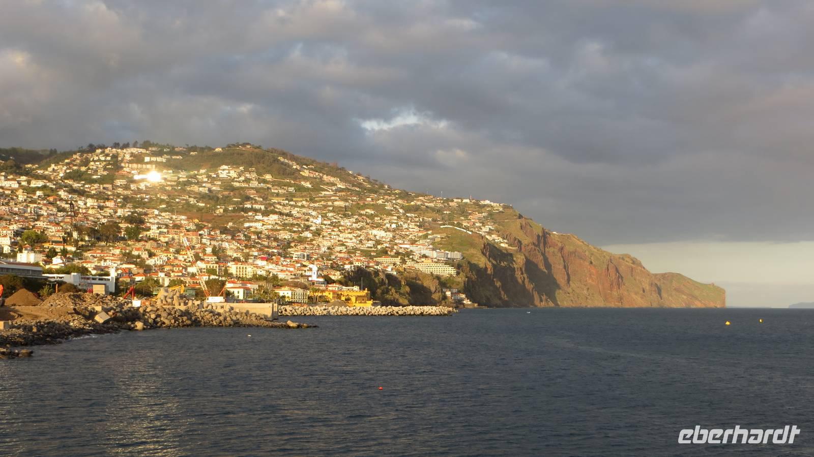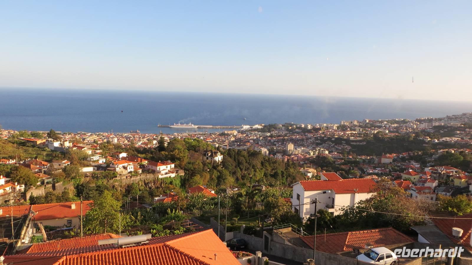 Auf geht's in die Hauptstadt Madeiras. Nachdem wir nun schon 2 Wandertage auf der Insel erlebt haben, gönnen wir uns heute eine Auszeit, um Funchal, die größte Stadt Madeiras und die drittgrößte Stadt Portugals mit ca. 120.000 Einwohnern zu erkunden. Vom Busbahnhof laufen wir über die erste Straße der Stadt, die Rue de Santa Maria, zu der berühmten Markthalle. Diese war früher einmal ein Krankenhaus und beherbergt heute einen Fisch-, Blumen-, Gemüse- sowie Obstmarkt. Wir tauchen ein in das geschäftige Treiben und schauen den Fischhändlern bei ihrer Arbeit über die Schultern. Nun sehen wir auch das erste Mal einen Degenfisch (Espada) - welchen manche Gäste den ersten Abend bereits schon mit einer gebratenen Banane genossen haben. Dieser schwarze Fisch wird in ca. 1000 Metern Tiefe nur nachts mit einem Tintenfisch- oder Makrelenköder geangelt und kommt ausschließlich in Europa um die Insel Madeira vor. Wir schlendern an den zahlreichen Ständen mit frischen Obst und Gemüse, Blumen und anderen Köstlichkeiten vorbei und der ein oder andere erwirbt die ersten Souvenirs. Nach diesem Erlebnis führen wir unsere Stadtbesichtigung fort und laufen durch die gut besuchten Straßen der Stadt, bis wir an der einzigsten Kathedrale Madeiras, der Sé, ankommen. Von außen wirkt die gotisch-romanische Kirche sehr schlicht, im Inneren jedoch wartet sie mit prunkvollen Altären und einer prachtvollen Holzdecke auf. Von der Kathedrale führt uns der Weg zur Weinkellerei Blandy's. Bei einer Besichtigung der Ausstellungsräume erfahren wir, dass der Wein durch einen Zufall entstanden ist und es 4 verschiedene Sorten (Sercial, Gouveio, Bual und Malmsey) gibt. Die anschließende Verkostung des delikaten Weins rundet unseren Besuch der Kellerei ab. Zum Abschluss unseres heutigen Ausfluges besuchen wir den Botanischen Garten. Dieser ca. 4 Hektar große Garten mit mehr als 2500 Pflanzen aus aller Welt befindet sich in ca. 300 Metern Höhe und bietet uns einen fantastischen Panoramablick über Funchal und den Hafen, wo gerade auch 2 Kreuzfahrtschiffe angelegt haben. Wir bestaunen die prächtige Blütenpracht dieses Gartens und besuchen die tropischen Vögel. Der Rest des Tages steht nun allen zur freien Verfügung. Einige Gäste entscheiden sich den Nachmittag in unserem „heimischen" Botanischen Garten des Hotels zu verbringen. Der Rest bleibt in Funchal und geht weiter auf Erkundungstour. Mit der Seilbahn schwebe ich mit einigen Gästen über Funchal nach Monte und fahre anschließend mit einem der berühmten Korbschlitten zurück ins Tal. Ein einmaliges Erlebnis, welches man so nirgends auf der Welt findet. Der Tag vergeht wie im Flug und nachdem die Sonne über Funchal untergegangen ist, kommen wir am Abend zurück in unser Hotel.