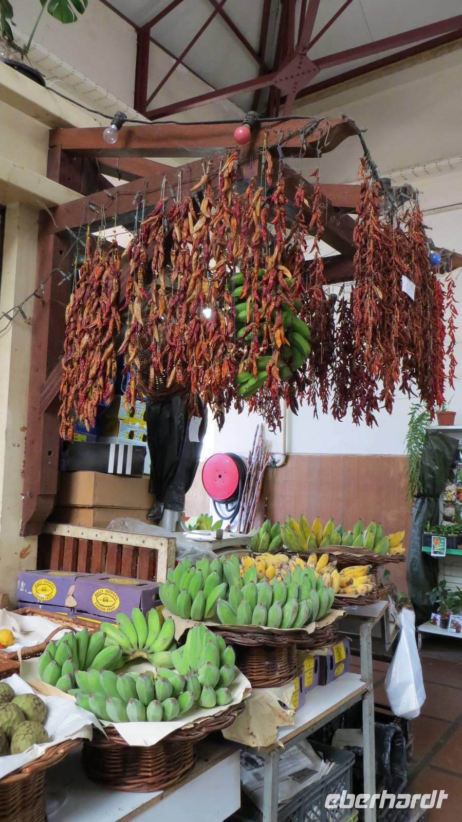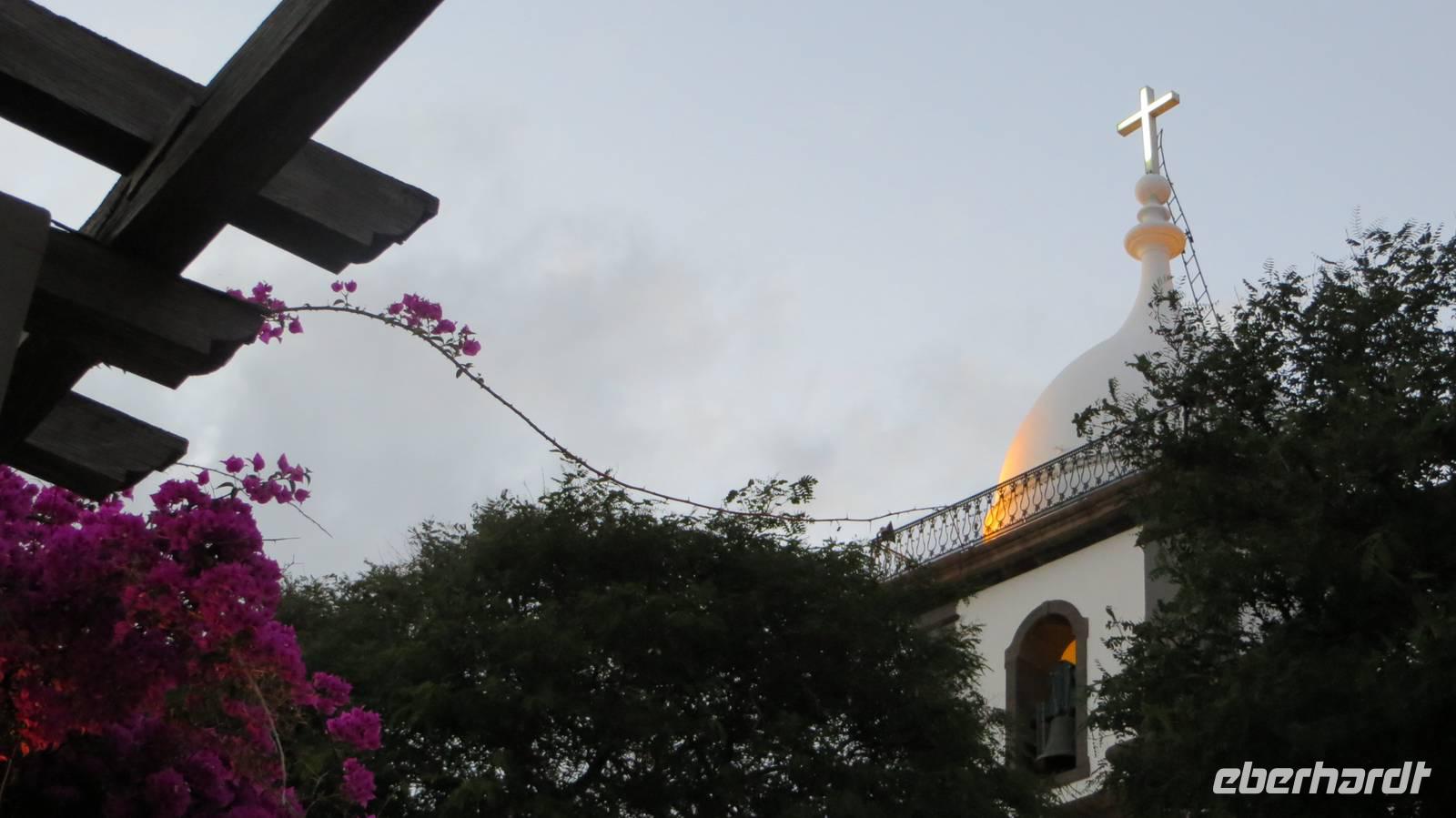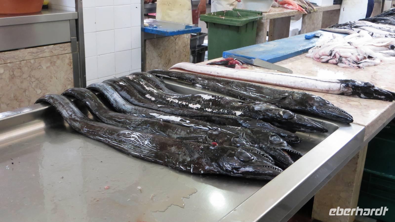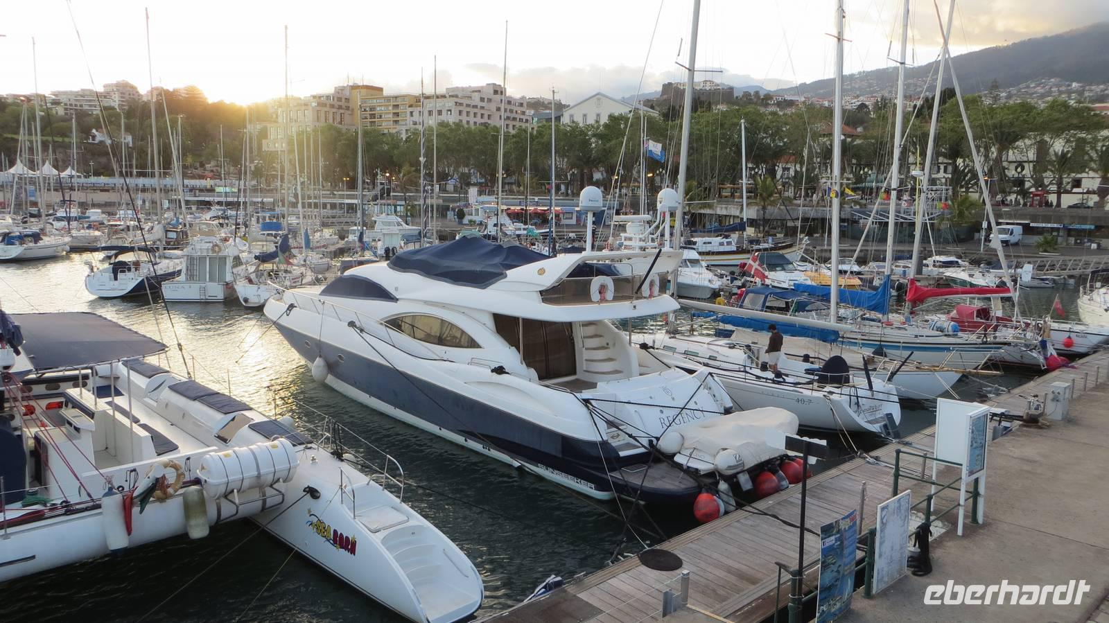 Auf geht's in die Hauptstadt Madeiras. Nachdem wir nun schon 2 Wandertage auf der Insel erlebt haben, gönnen wir uns heute eine Auszeit, um Funchal, die größte Stadt Madeiras und die drittgrößte Stadt Portugals mit ca. 120.000 Einwohnern zu erkunden. Vom Busbahnhof laufen wir über die erste Straße der Stadt, die Rue de Santa Maria, zu der berühmten Markthalle. Diese war früher einmal ein Krankenhaus und beherbergt heute einen Fisch-, Blumen-, Gemüse- sowie Obstmarkt. Wir tauchen ein in das geschäftige Treiben und schauen den Fischhändlern bei ihrer Arbeit über die Schultern. Nun sehen wir auch das erste Mal einen Degenfisch (Espada) - welchen manche Gäste den ersten Abend bereits schon mit einer gebratenen Banane genossen haben. Dieser schwarze Fisch wird in ca. 1000 Metern Tiefe nur nachts mit einem Tintenfisch- oder Makrelenköder geangelt und kommt ausschließlich in Europa um die Insel Madeira vor. Wir schlendern an den zahlreichen Ständen mit frischen Obst und Gemüse, Blumen und anderen Köstlichkeiten vorbei und der ein oder andere erwirbt die ersten Souvenirs. Nach diesem Erlebnis führen wir unsere Stadtbesichtigung fort und laufen durch die gut besuchten Straßen der Stadt, bis wir an der einzigsten Kathedrale Madeiras, der Sé, ankommen. Von außen wirkt die gotisch-romanische Kirche sehr schlicht, im Inneren jedoch wartet sie mit prunkvollen Altären und einer prachtvollen Holzdecke auf. Von der Kathedrale führt uns der Weg zur Weinkellerei Blandy's. Bei einer Besichtigung der Ausstellungsräume erfahren wir, dass der Wein durch einen Zufall entstanden ist und es 4 verschiedene Sorten (Sercial, Gouveio, Bual und Malmsey) gibt. Die anschließende Verkostung des delikaten Weins rundet unseren Besuch der Kellerei ab. Zum Abschluss unseres heutigen Ausfluges besuchen wir den Botanischen Garten. Dieser ca. 4 Hektar große Garten mit mehr als 2500 Pflanzen aus aller Welt befindet sich in ca. 300 Metern Höhe und bietet uns einen fantastischen Panoramablick über Funchal und den Hafen, wo gerade auch 2 Kreuzfahrtschiffe angelegt haben. Wir bestaunen die prächtige Blütenpracht dieses Gartens und besuchen die tropischen Vögel. Der Rest des Tages steht nun allen zur freien Verfügung. Einige Gäste entscheiden sich den Nachmittag in unserem „heimischen" Botanischen Garten des Hotels zu verbringen. Der Rest bleibt in Funchal und geht weiter auf Erkundungstour. Mit der Seilbahn schwebe ich mit einigen Gästen über Funchal nach Monte und fahre anschließend mit einem der berühmten Korbschlitten zurück ins Tal. Ein einmaliges Erlebnis, welches man so nirgends auf der Welt findet. Der Tag vergeht wie im Flug und nachdem die Sonne über Funchal untergegangen ist, kommen wir am Abend zurück in unser Hotel.