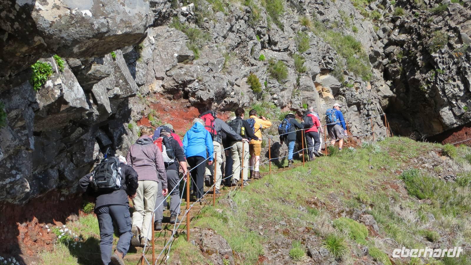Der Tag kann heute entweder individuell gestaltet oder mit einer weiteren gemeinschaftlichen Wanderung verbracht werden. So entscheiden sich 2 Gäste erneut Funchal unsicher zu machen. Mit den 15 restlichen Wandergästen breche ich zu unserer wohl anspruchsvollsten Wanderung auf. Da es jedoch auf dem Weg vom Pico do Ariero zum Pico Ruivo im November letzten Jahres einen Steinschlag gab und der Weg noch nicht wieder richtig gesichert ist, haben wir gemeinsam mit Samuel entschieden die heutige Wanderung etwas abzuändern. So werden wir bei dem ersten Teil unserer Wanderung vom Pico do Arieiro zum Pico do Cidrao und wieder zurück laufen. Den zweiten Teil der Wanderung machen wir dann von Achada do Teixeira zum Pico Ruivo und auch hier wieder zurück. Mit dieser Variante werden wir trotzdem die höchsten Gipfel der Insel sehen und alle können mit guten Gewissen an unserer heutigen Tour teilnehmen.