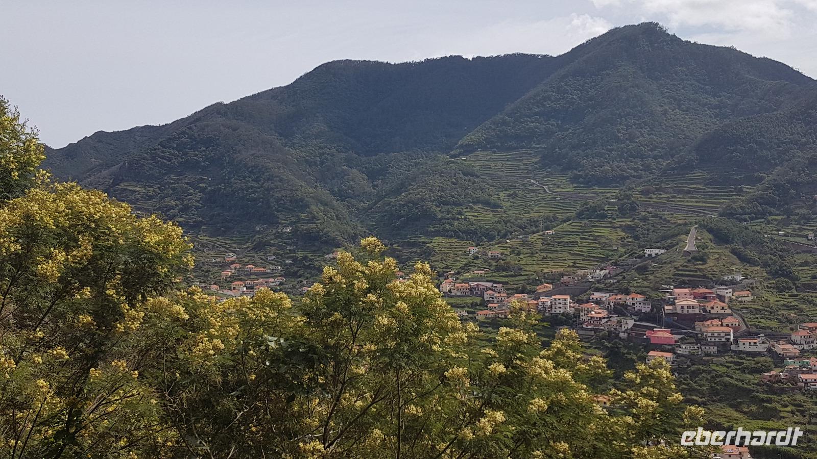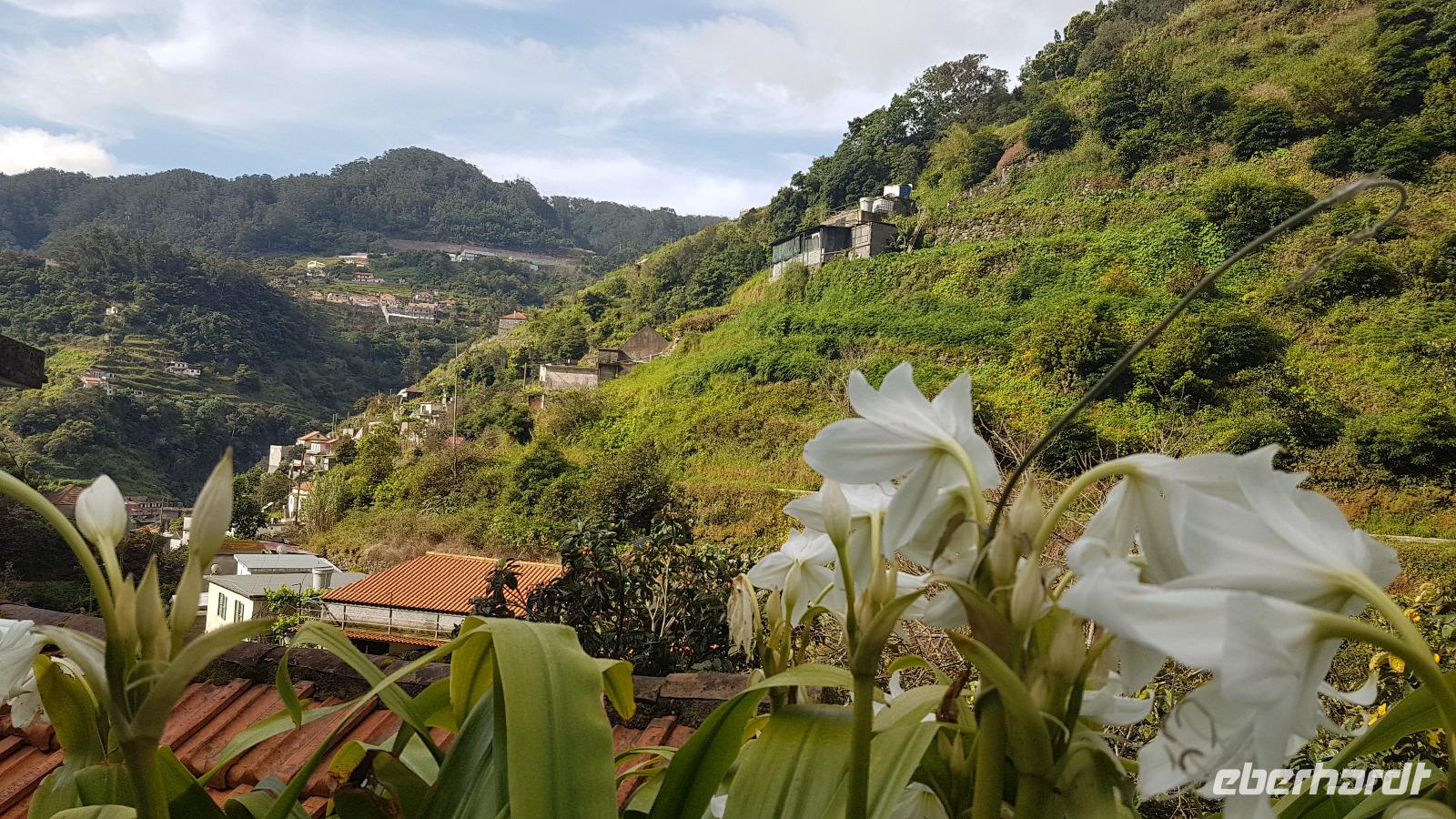 Diese führt uns auf geradem Wege vorbei an derunglaublich vielfältigen Natur von Madeira. Gärten und Felder umgeben uns, auf denen es grünt und blüht. Wir erfahren von Marco sehr viel Wissenswertes über die Natur. Vorbei an Weinbergen, Feldern mit Kartoffeln, Kohl und Zuckerrohr, staunen wir übergroßen Baumfarne, essen die ersten, von Bauern am Wegrand angebotenen Früchte, und staunen über die großen Papayas an den Bäumen. Famose
