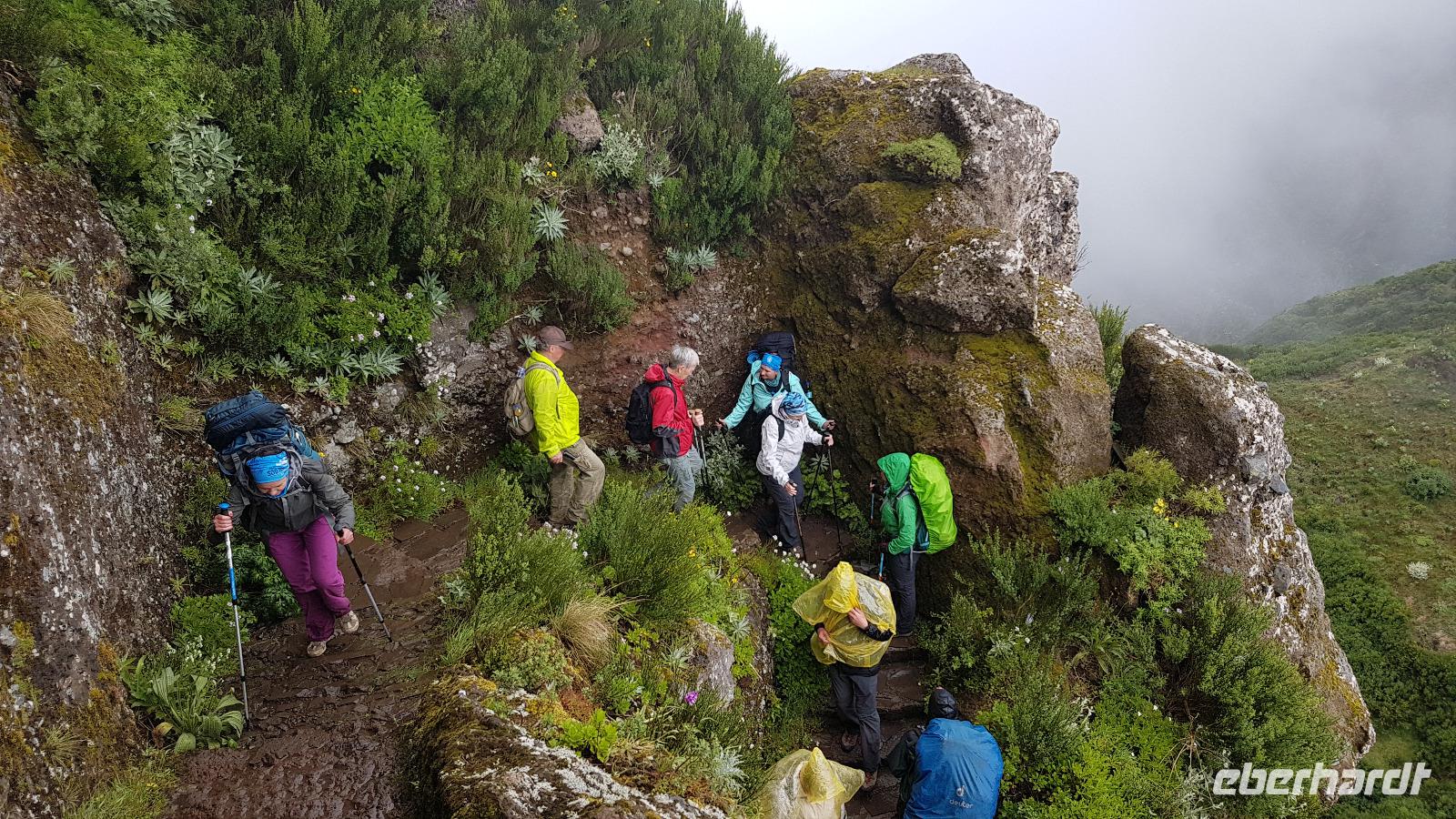 Heute erwartet uns eine Wanderung der ganz anderen Art. Eine Gipfelwanderung zwischen den höchsten Bergen. Auf dem Pico Ariero wandern wir im Nebel und leichtem Niedelregen. Wir haben uns natürlich auf auf dieses Wetter eingerichtet und unsere Regenkleidung dabei. Nur bleibt uns durch den Nebel der Blick in die Täler verwehrt. Erst später reißt der Himmel auf und die sonne kommt hervor. Der Weg führt uns durch viele kleine Tunnel. Der Gipfel des Pico Ruivo liegt dann wieder im Nebel, aber alle sind sehr froh und stolz. Diese Wanderung sollten wir nochmal bei Sonnenschein unternehmen und beflügelt, ein weiteres Mal diese schöne Insel zu besuchen.
