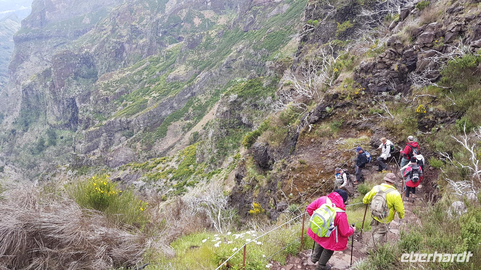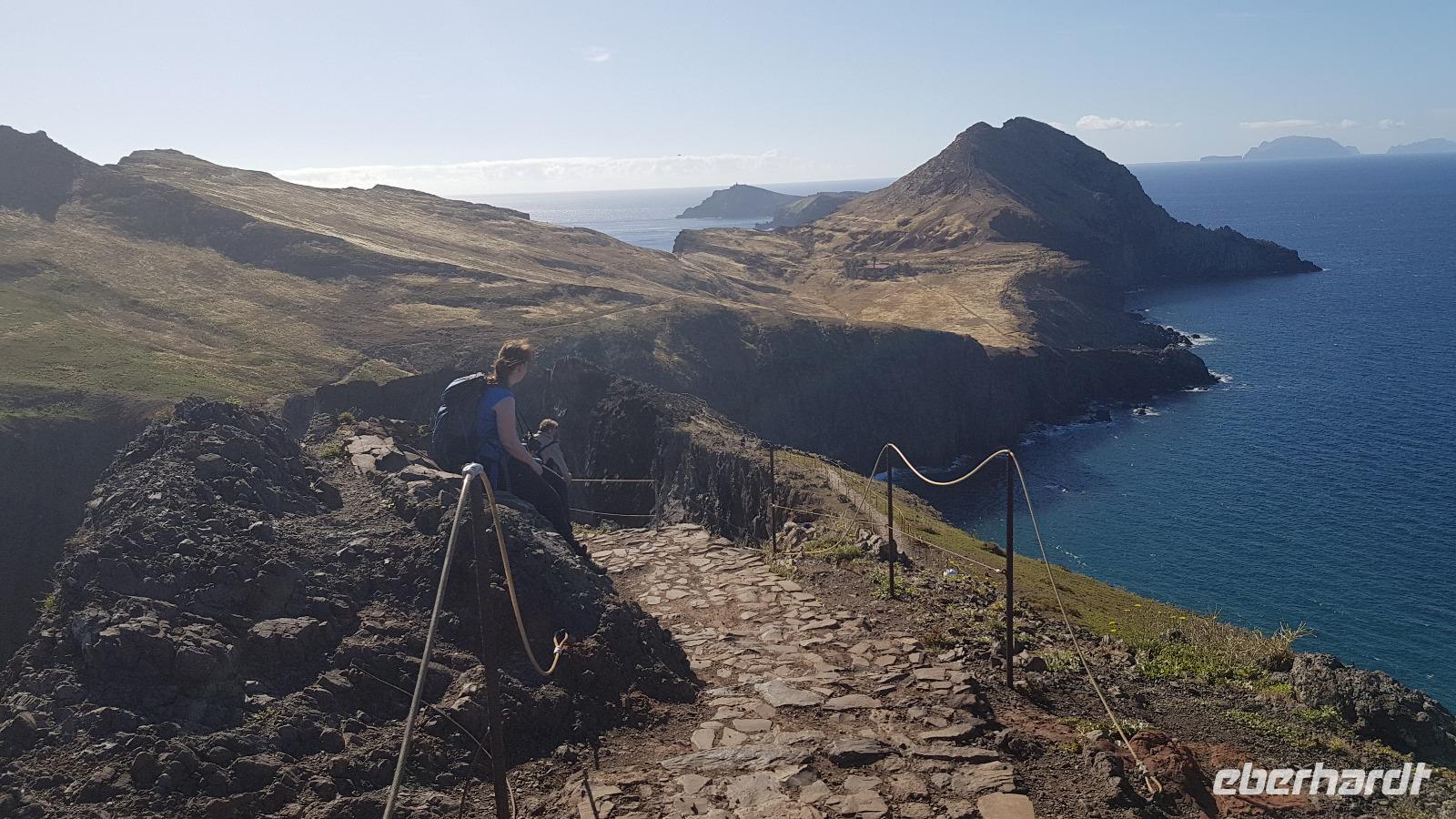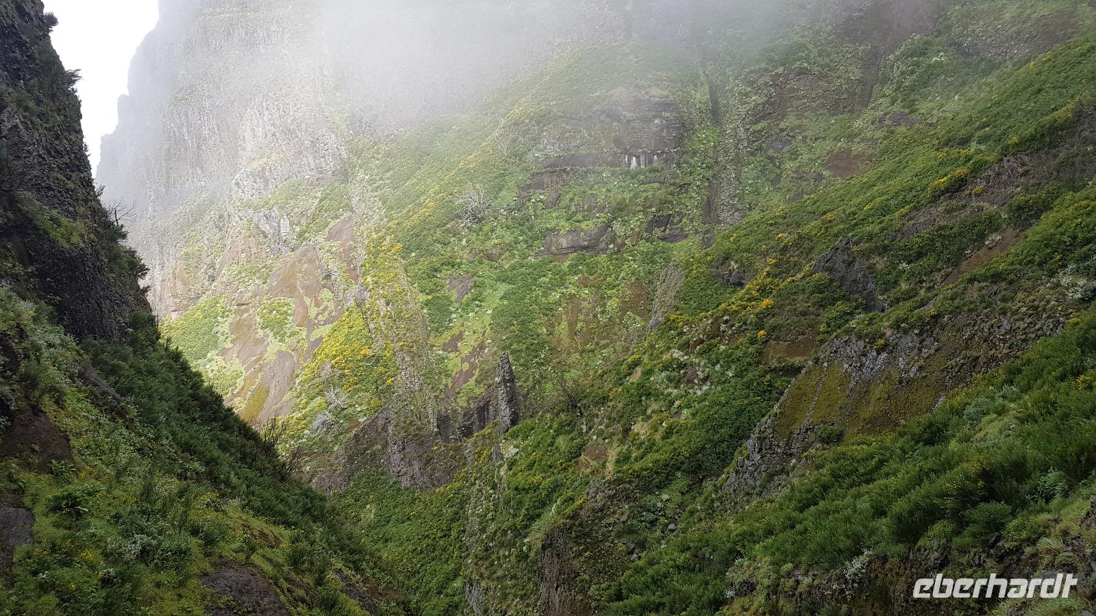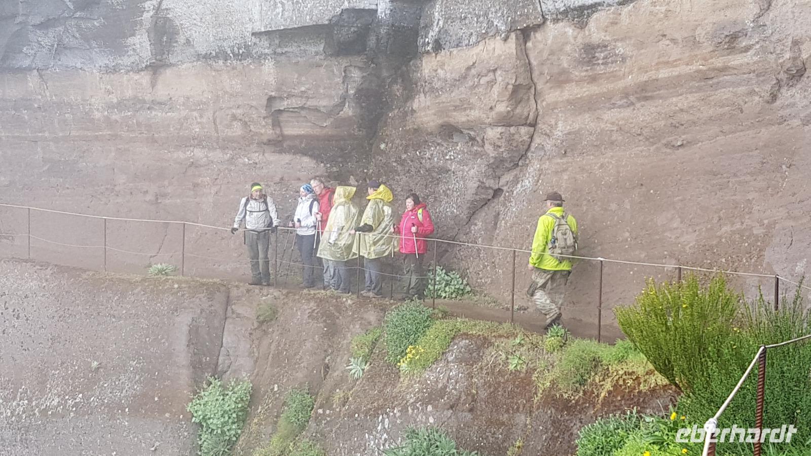Nur 4 km weiter ist der Aussichtspunkt Cabo Cirao. Hier stehen wir über dem Abgrund auf der mit 580 m höchsten senkrecht zur Felswand abstürzenden Steilküste, der höchsten Steilküste Europas. Es biete sich uns ein grandioser Blick über Funchal und den Alantik.