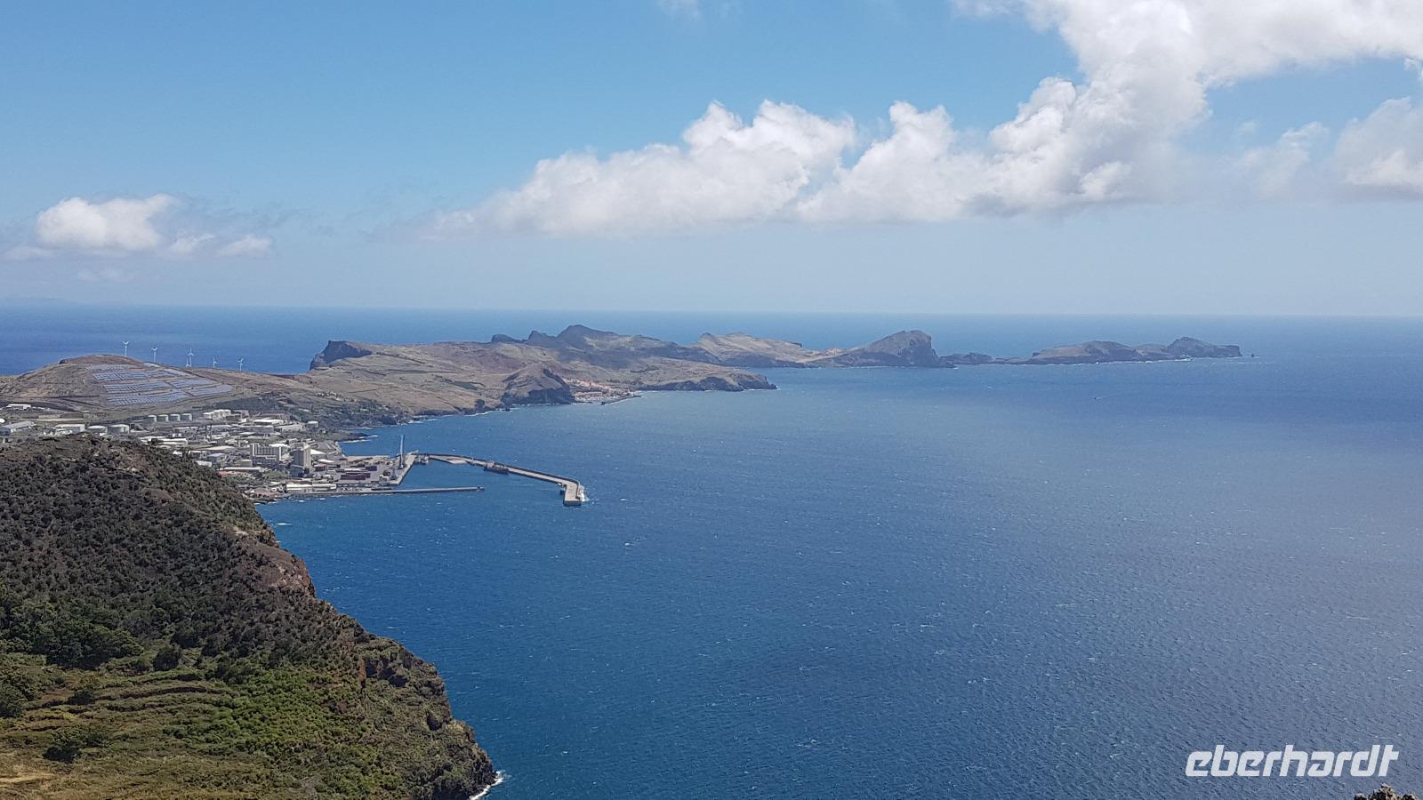 Mit dem Bus fahren wir heute in den Osten Madeiras. Hier regnet es sehr wenig und die Landschaft ist von Glasflächen und niedriger Vegetation geprägt. Es weht ein ordentlicher Wind als wir unsere Wanderung zur Ostspitze beginnen. Auf und Ab, teilweise über Stufen, führt uns der Weg. Wir bleiben immer wieder stehen, um den Blick auf die hohen Klippen und den wellengepeitschten Atlantik zu richten. Unsere Karin ist mutig. Während wir unser Picknick genießen, steigt sie noch höher auf einen Aussichtspunkt. Gemeinsam treten wir den Rückweg an, um noch einen busstopp auf der Rückfahrt zu machen. Man sieht auf der einen Seite die Stadt Machico und auf der anderen den Frachthafen von Madeira liegen. Besonders interessiert uns natürlich die Aussicht auf die kurze Start- und Landebahn des Flughafens. Hier startet, zu unserer Freude, auch gerade eine kleine Maschine.