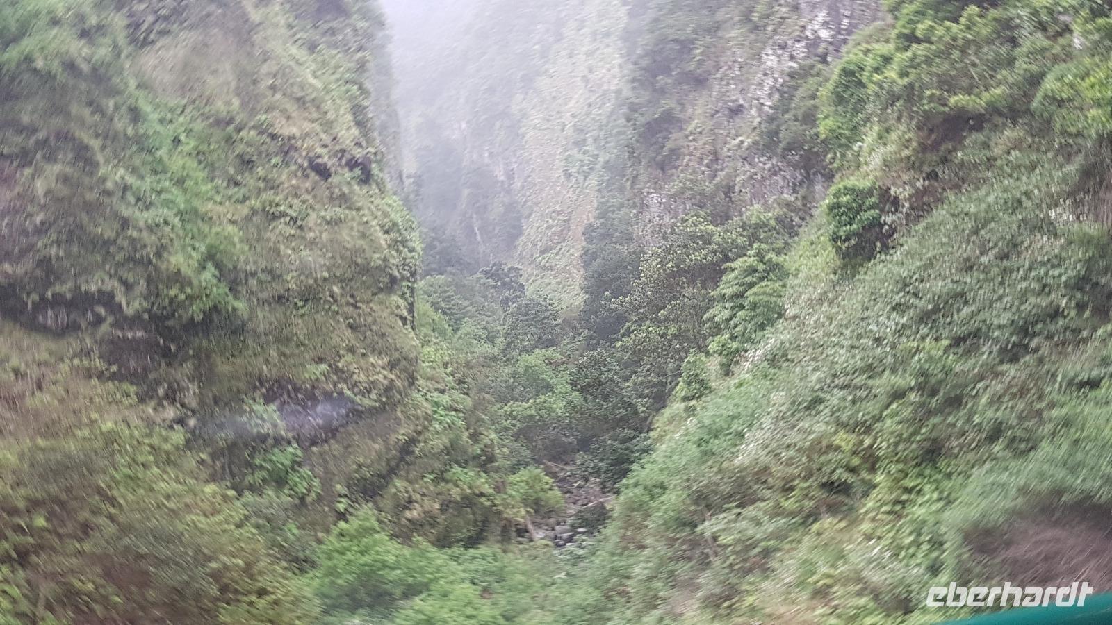 Entlang der Nordküste geht es in Richtung Osten. Viele Wasserfälle rauschen die steilen Berge hinab. Über Sao Vincente und eine andere Straßenroute über die