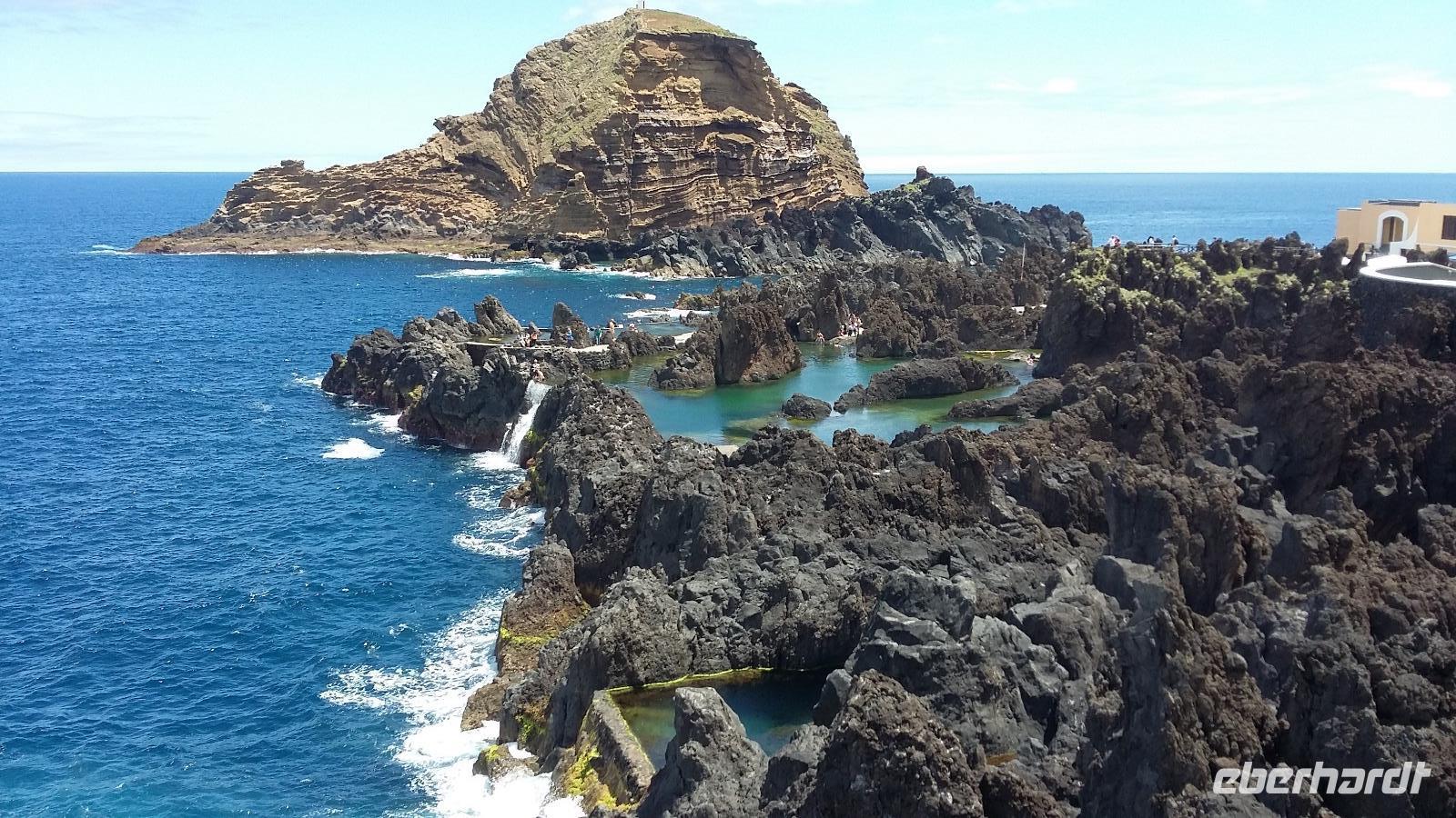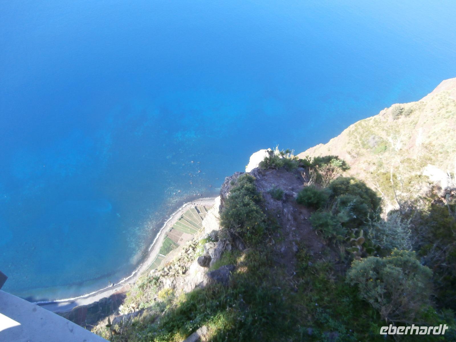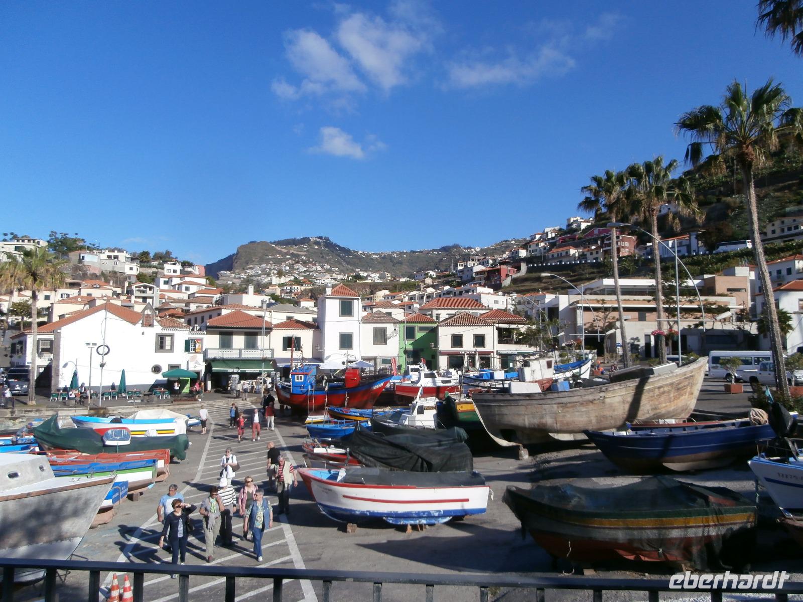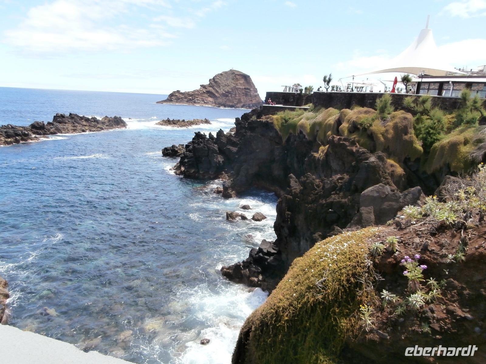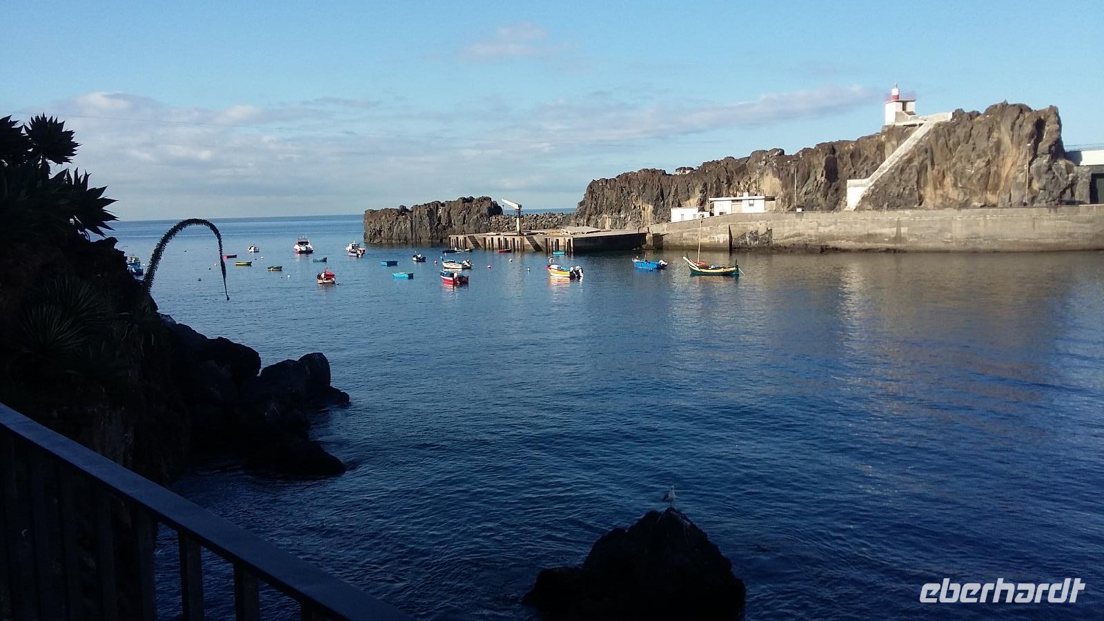 Madeiras Nordwesten steht heute auf dem Programm, eine schöne Fahrt quer über die Insel mit vielen Besichtigungen während der Stopps. In Camara de Lobos, dem schönsten Fischerdorf Madeiras, halten wir am Morgen und bewundern die vielen bunten Fischerboote, traumhaftes Wetter haben wir für unseren Inselausflug bekommen. Am Capo Girao mit 580 Meter Höhe erreichen wir die höchste Steilklippe Europas. Entlang der Südküste fahren wir weiter nach Ribeira Brava, heißt übersetzt Wilder Bach. Am goldgelben Sandstrand strahlt uns die Sonne schon kräftig entgegen. Wir verlassen die Küste und fahren über die Hochebene Paul da Serra auf 1400 Meter Höhe, wir sehen hier viele Kühe mit ihren Kälbern in freier Natur. Porto Moniz, eine dunkle Felszunge umspült vom Meer, ist unser nächstes Ziel. Der Wind und das Wasser sorgen im kleinen Fischerdorf für eine stetige Erosion, sie ist zuständig für das Entstehen mehrerer Naturschwimmbecken im Lavagestein. Baden ist nicht möglich im Naturschwimmbecken, es wird gebaut. In Sao Vicente halten wir ein nächstes Mal am Atlantik, Meer Luft und das Rauschen des Meeres machen uns happy, es ist ein wunderschöner Ausflug am heutigen Tag. Über Sao Vicente geht unsere Fahrt hoch zum Encumeada Pass, von hier aus blicken wir zur Süd und Nord Küste Madeiras. Ingrid gibt im Namen von Eberhardt Travel einen Ginja Likör aus, eine schöne Wanderreise haben wir miteinander erlebt. Wir danken Fatima und Nelson für die fantastische Reise in dieser Woche mit ihnen durch Madeira, dieses Inselparadies haben sie uns von vielen Seiten präsentiert.