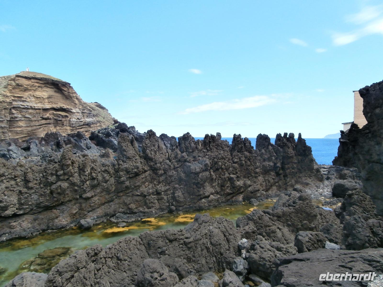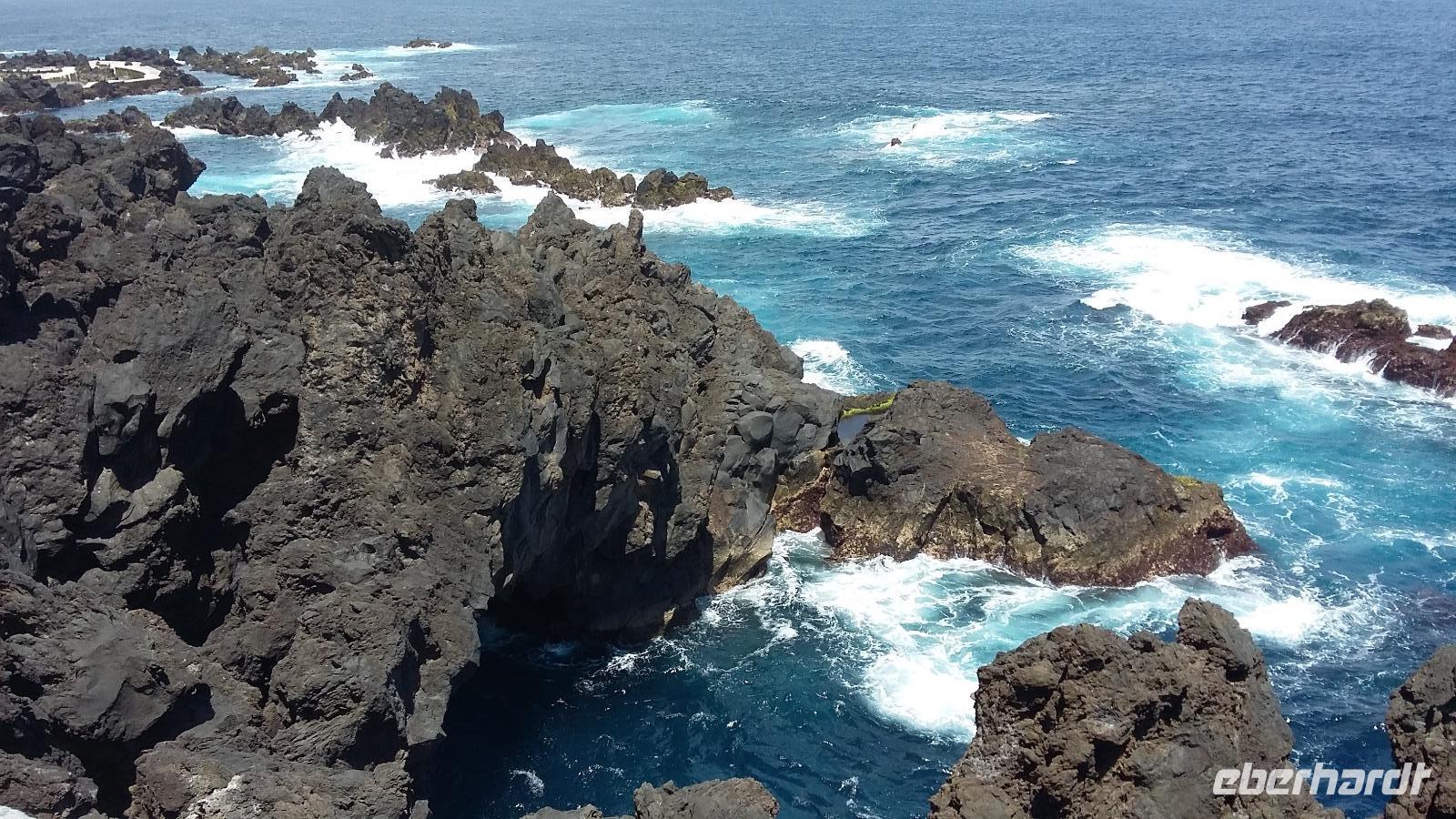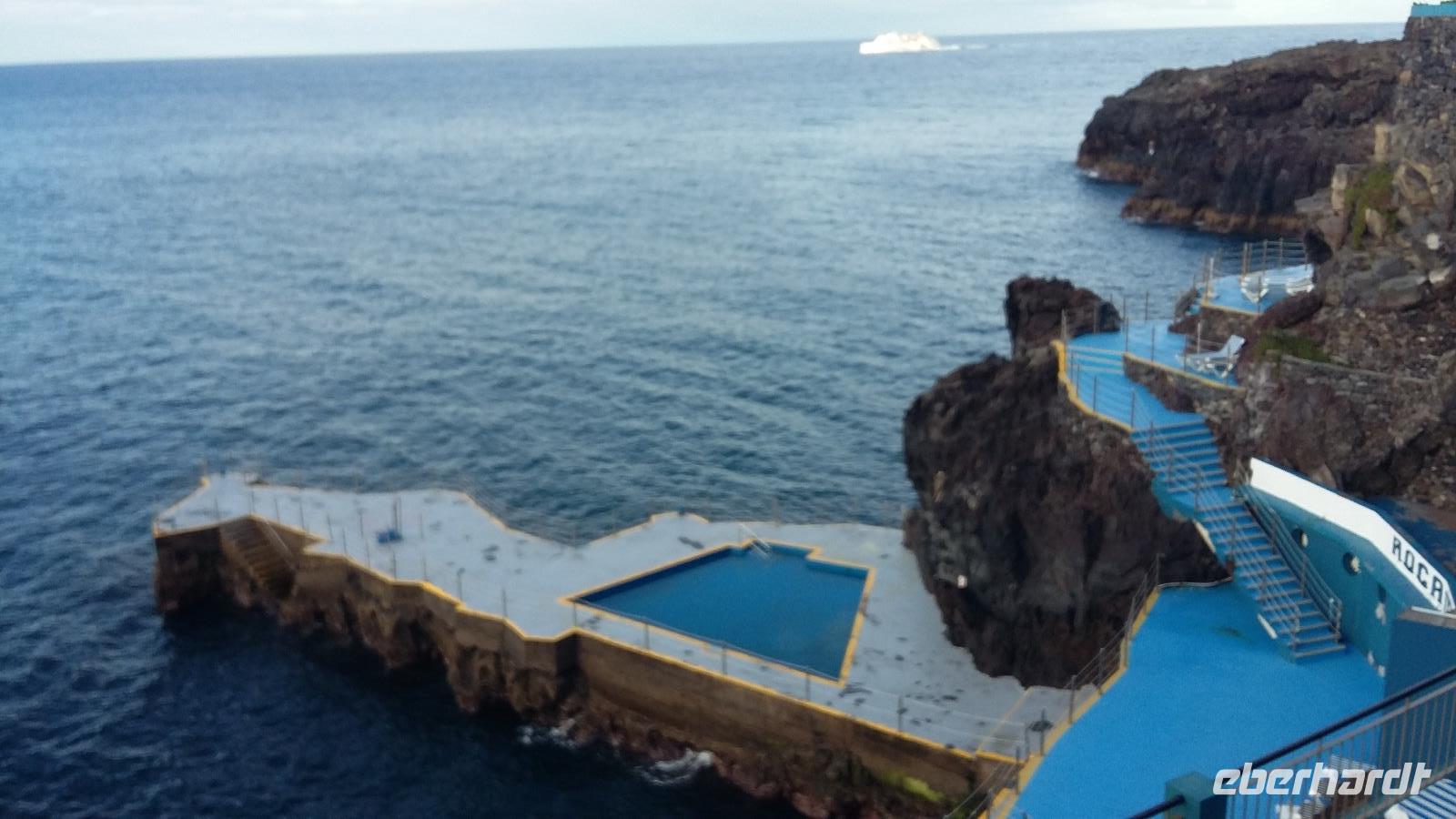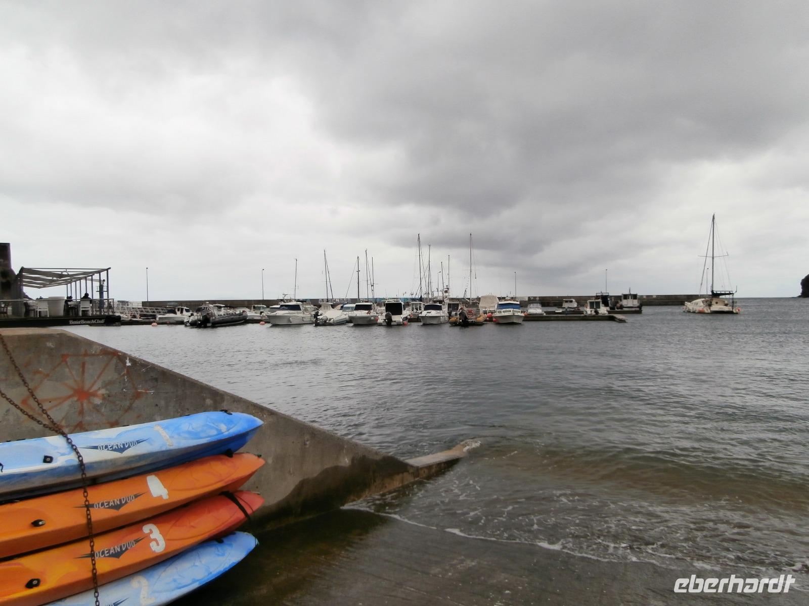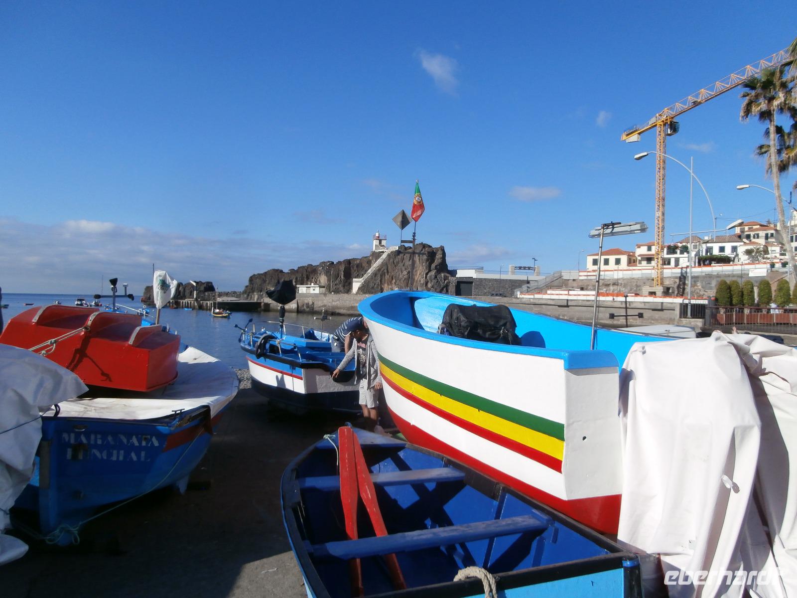 Madeiras Nordwesten steht heute auf dem Programm, eine schöne Fahrt quer über die Insel mit vielen Besichtigungen während der Stopps. In Camara de Lobos, dem schönsten Fischerdorf Madeiras, halten wir am Morgen und bewundern die vielen bunten Fischerboote, traumhaftes Wetter haben wir für unseren Inselausflug bekommen. Am Capo Girao mit 580 Meter Höhe erreichen wir die höchste Steilklippe Europas. Entlang der Südküste fahren wir weiter nach Ribeira Brava, heißt übersetzt Wilder Bach. Am goldgelben Sandstrand strahlt uns die Sonne schon kräftig entgegen. Wir verlassen die Küste und fahren über die Hochebene Paul da Serra auf 1400 Meter Höhe, wir sehen hier viele Kühe mit ihren Kälbern in freier Natur. Porto Moniz, eine dunkle Felszunge umspült vom Meer, ist unser nächstes Ziel. Der Wind und das Wasser sorgen im kleinen Fischerdorf für eine stetige Erosion, sie ist zuständig für das Entstehen mehrerer Naturschwimmbecken im Lavagestein. Baden ist nicht möglich im Naturschwimmbecken, es wird gebaut. In Sao Vicente halten wir ein nächstes Mal am Atlantik, Meer Luft und das Rauschen des Meeres machen uns happy, es ist ein wunderschöner Ausflug am heutigen Tag. Über Sao Vicente geht unsere Fahrt hoch zum Encumeada Pass, von hier aus blicken wir zur Süd und Nord Küste Madeiras. Ingrid gibt im Namen von Eberhardt Travel einen Ginja Likör aus, eine schöne Wanderreise haben wir miteinander erlebt. Wir danken Fatima und Nelson für die fantastische Reise in dieser Woche mit ihnen durch Madeira, dieses Inselparadies haben sie uns von vielen Seiten präsentiert.