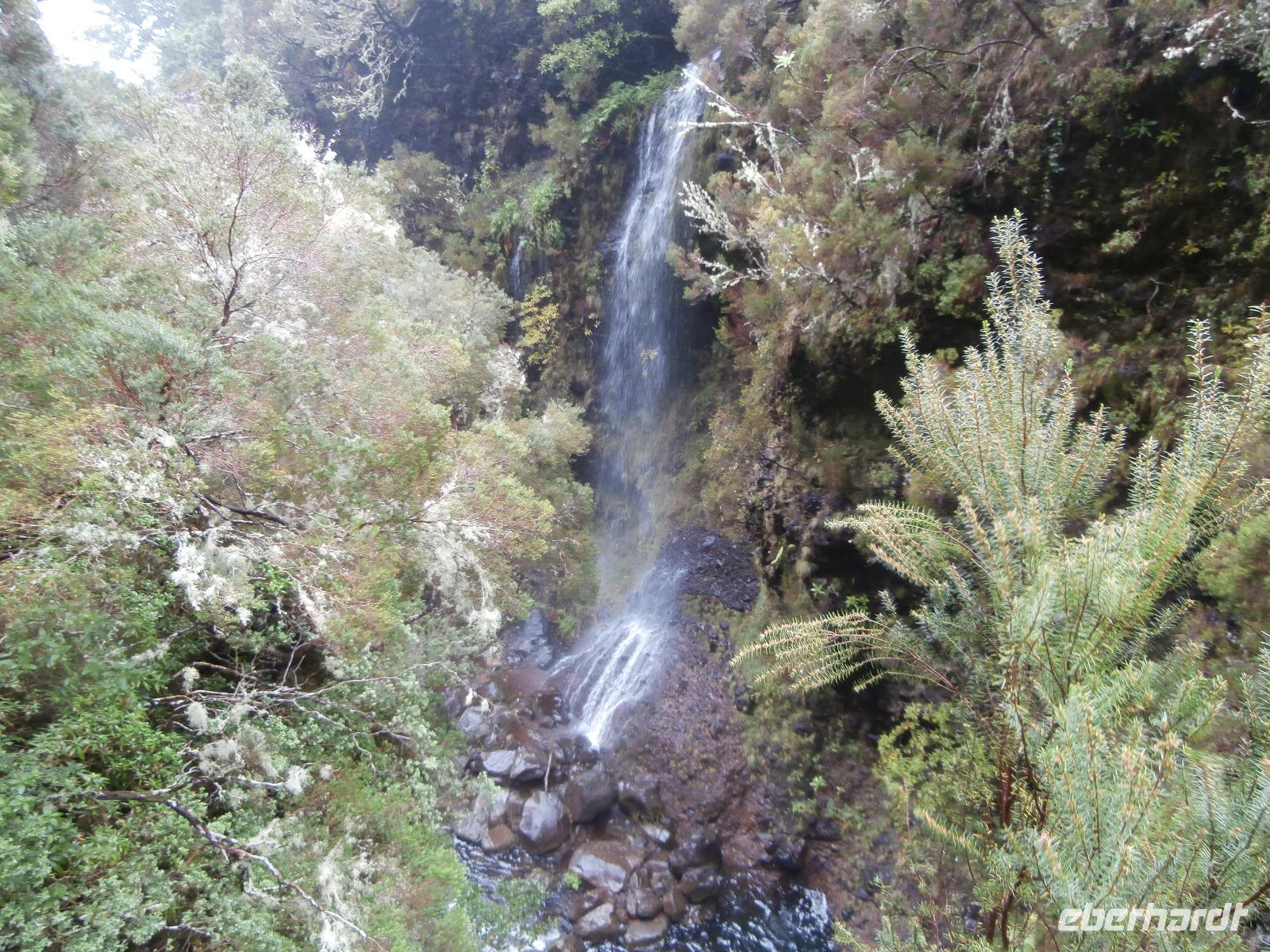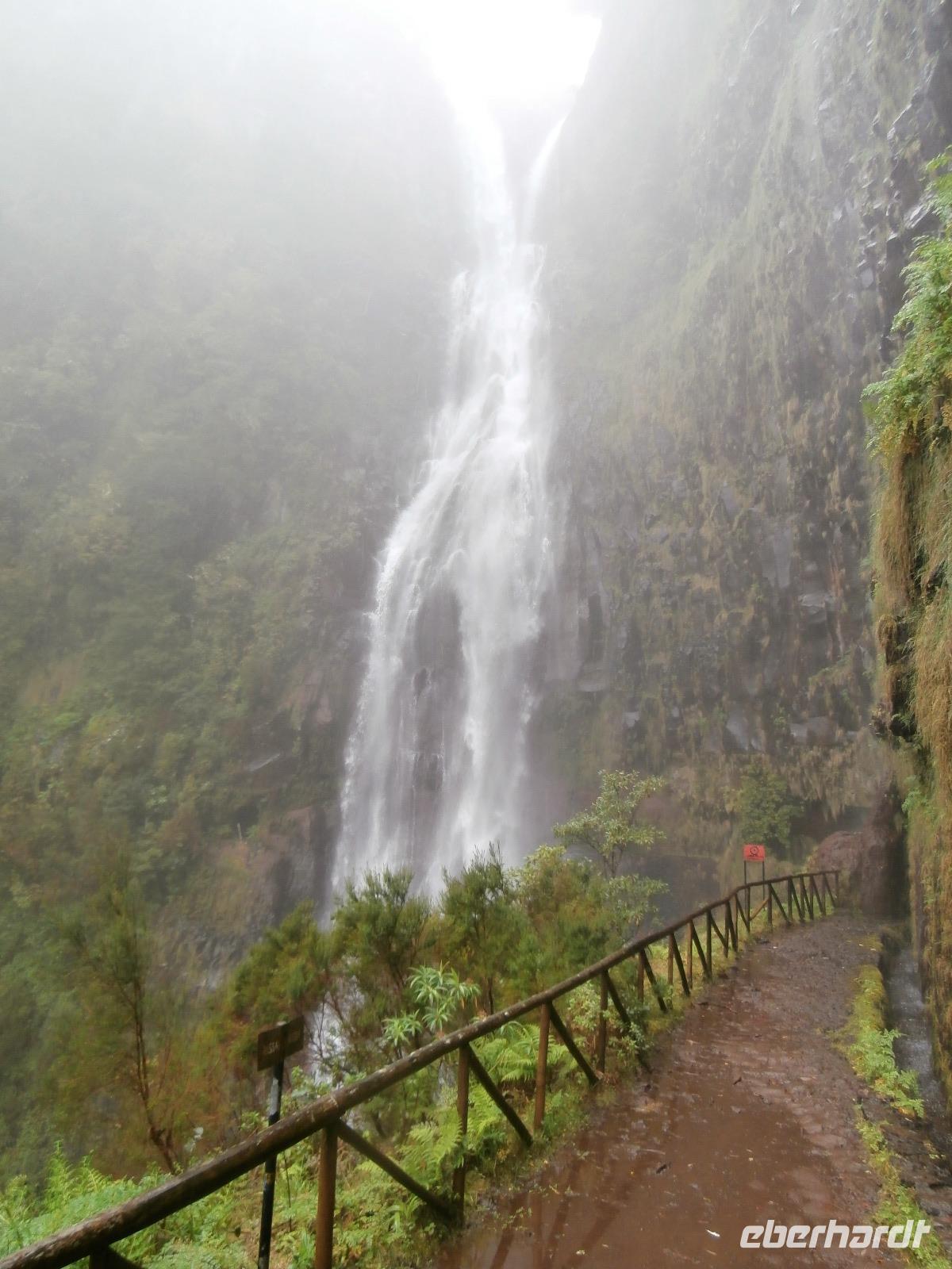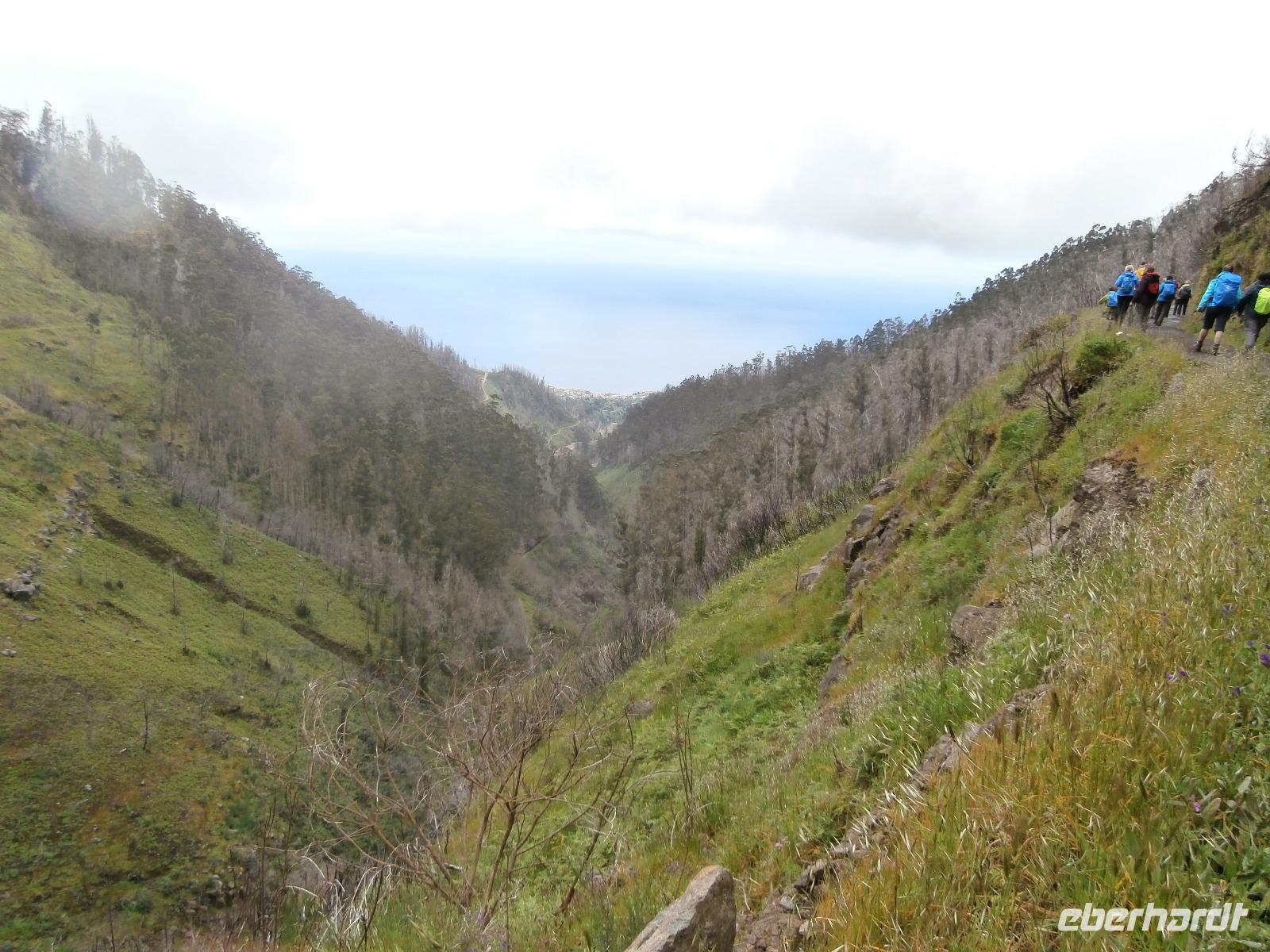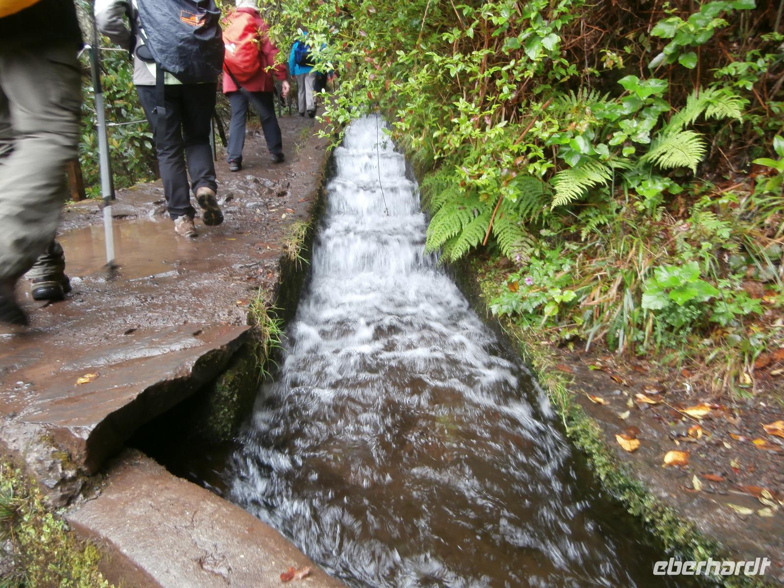 09. Uhr holt uns Fatima mit dem Bus ab und los geht die Fahrt zur Wanderung im Tal von Rabacal zu den 25 Quellen. WC Stopp legen wir in Loreto in einer Bar ein, später gibt es kaum Möglichkeit zum Tolettieren. Die Wanderung begleitet Regen und Nässe, aber wir sind darauf vorbereitet. Das Tal von Rabacal ist reizvoll mit rauschenden Wasserfällen, grünen Bergen mit berauschender Natur. Viel Wasser und der Regen verlangen uns viel Konzentration für die Strecke ab, sie ist teilweise sehr schmal und schlängelt sich unterhalb der Levada sehr holprig entlang. Viele Engstellen mit Gegenverkehr müssen wir passieren. An den 25 Quellen, die sich in einem engen Felskessel befinden, legen wir 30 min Pause zum Fotografieren und betrachten des Naturwunders ein. Zurück geht unsere Wanderung zum Teil auf anderer Strecke, dabei müssen wir einen Tunnel von knapp 1 km passieren, alle haben wir unsere Stirnlampen für die gute Sicht dabei. Das Ende unserer Wanderung führt noch ein Stück durch Eukalyptuswald und Blick zum Meer. Nelson unser Fahrer erwartet uns mit dem Bus, ja anstrengend war es schon heute, viel Aufmerksamkeit und Konzentration mussten wir an den Tag legen. In Calheta stoppen wir an einer Bar für Kaffee und WC, die Sonne wärmt uns den Rücken, eine schöne Wanderung war es für uns alle.