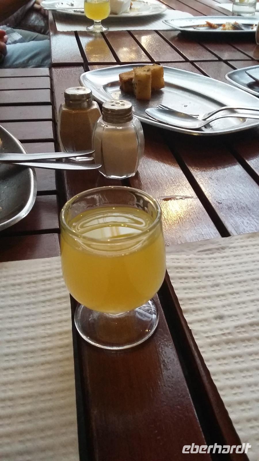Ein ruhiger Flug mit einer für diesen speziellen Flughafen tollen Landung und schon kann es losgehen mit unserem Erlebnis „Wandern auf Madeira". Unser Transfer zum Hotel Rocamar ist flott und schnell sind die Zimmer verteilt. Gegen sieben treffen wir uns alle zum 1. Gemeinsamen Essen im Restaurant Villa Ventura. Wir kommen schnell miteinander in nette Gespräche, genießen ein vorzügliches Essen und Ingrid, unsere Reisebegleitung, gibt im Namen von Eberhardt Travel einen Poncha aus. Dieser Schnaps ist ganz typisch für die Insel Madeira, mit Zuckerrohrschnaps, Honig und anderen Zutaten hergestellt.