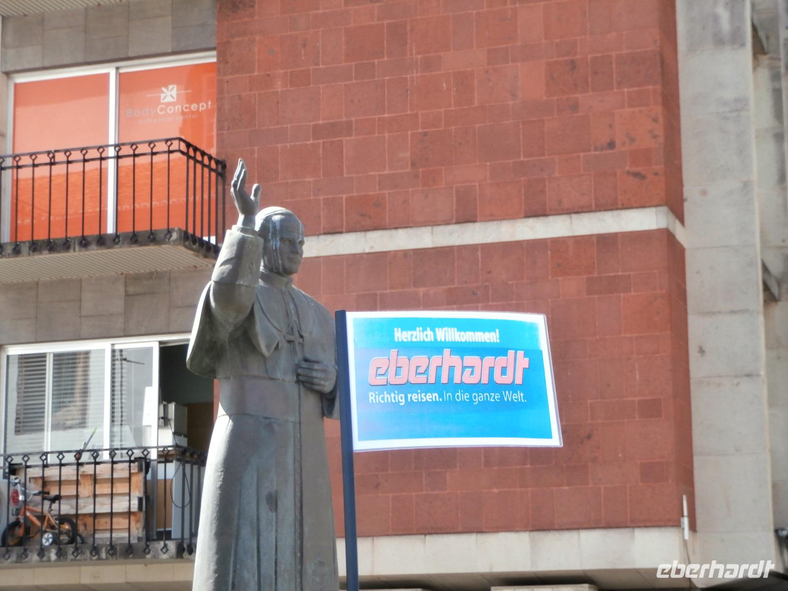 Am goldgelben Sandstrand, der Sand ist aus Marokko, halten einige Reisegäste ihre Füße ins Wasser. Auch in die Kirche des Ortes werfen wir einen Blick, vorbei am Rathaus kehren wir zurück zum Bus und weiter im Bus zum Hotel Rocamar.