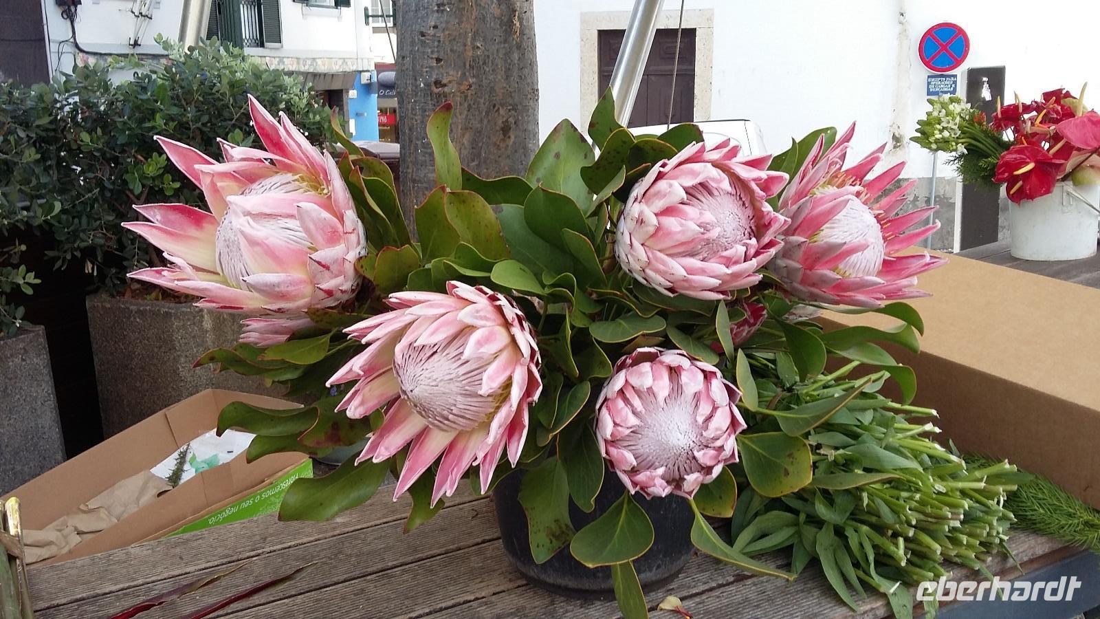 Fatima zeigt uns bei einem schönen Rundgang als Erstes den Botanischen Garten. Es ist ein farbenfrohes Erlebnis für alle Sinne mit herrlichen Aussichten und betörenden Düften. Der Wettergott meint es heute sehr gut mit uns, azurblau der Himmel und angenehm die Temperatur. Weiter geht es hinunter in die Stadt zur Besichtigung der Kathedrale, noch vor der Mittagsmesse schauen wir uns dieses Bauwerk an. Durch Funchals Altstadt spazieren wir bis hin zur Markthalle, heute zum Freitag präsentieren die umliegenden Bauern hier ihre frischen Produkte. Bekannt ist die Markthalle auch für die tollen Blumen und im Fischmarkt betrachten wir intensiv den Espetata, den schwarzen Degenfisch. Den bekannten Madeira Wein verkosten wir in der Blandys Wein Lodge in Funchal und erfahren von Fatima viel Wissenswertes über die lange Tradition der Wein Produktion. Der Nachmittag steht unseren Reisegästen zur freien Verfügung, sie nutzen die Zeit für Besichtigungen und Bummel in der Altstadt.