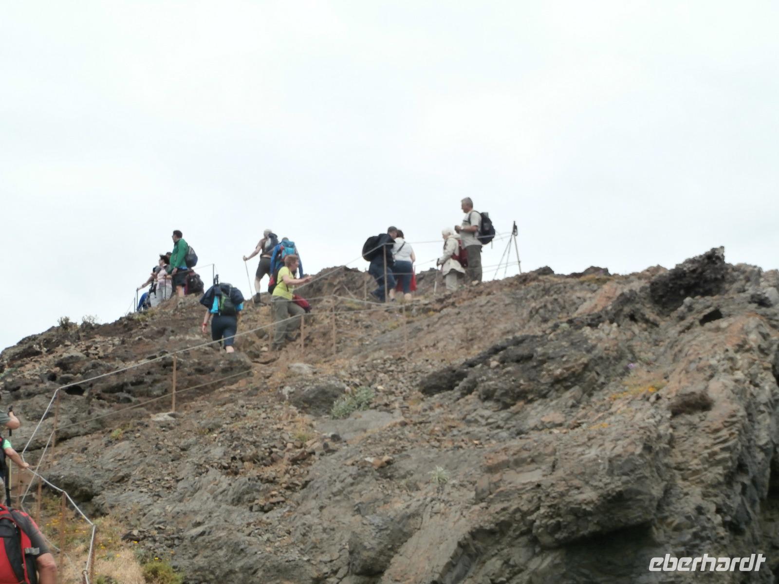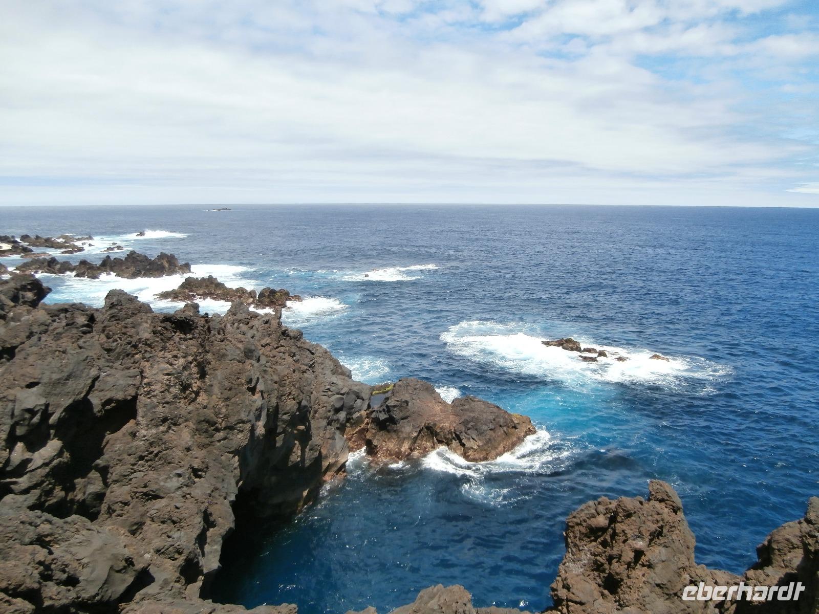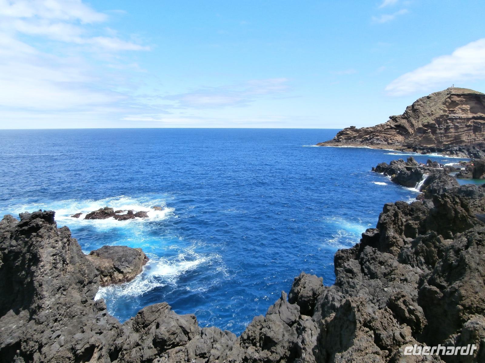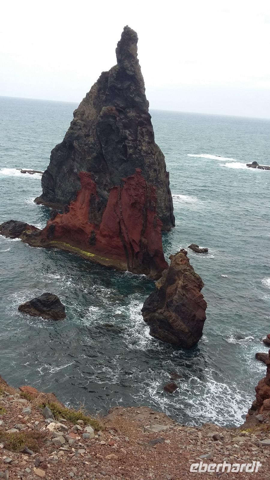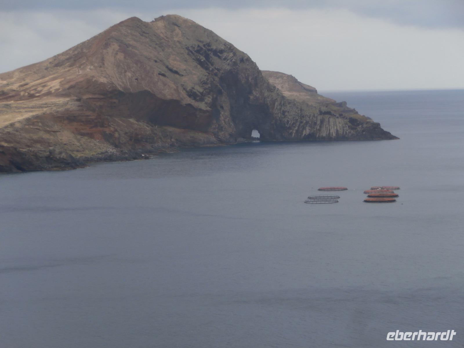 Pünktlich Neun Uhr werden wir von Fatima und Nelson abgeholt, die äußerste Ostspitze von Madeira wollen wir heute erwandern. Sie steht als karges Stück Land mit wenig Vegetation im starken Kontrast zum Rest der Insel Madeira. Gutes Wetter ist uns hold, trocken und nicht zu warm ist es, also ideal zum Wandern. Am Parkplatz lassen wir den Bus zurück, denn hier ist Start für unsere heutige Wanderung in die baumlose, karge Landschaft der Ostspitze Madeiras. Wir blicken auf den Atlantik, in die Bucht Baia de Abra und sehen hinüber zu den 3 unbewohnten Inseln, den Desertas. Herrliches Wetter, tolle Farben mit dem Blau des Atlantik und der aufschäumenden Gicht bieten einen Kontrast zum kargen Bild des Stückes Land mit der spärlichen Vegetation. Scharfe Grate, extreme Auf-und Abstiege, sie wechseln mit grandiosen Ausblicken, schroffen Felsformationen und Gesteinsgebilden, die in vielen Farben schimmern. Das Gestein hat uns viel aufgezeigt, der Fluss der Lava ist immer wieder deutlich sichtbar. Ein Picknick legen wir an einem Rastplatz ein, viele Tauben umgeben uns hier. Zum Gipfel wandern einige unserer Gäste, Ingrid ist mit dabei. Genial, aber sehr windig ist es oberhalb am Aussichtspunkt, bis zum letzten Zipfel der Ostspitze können wir schauen.