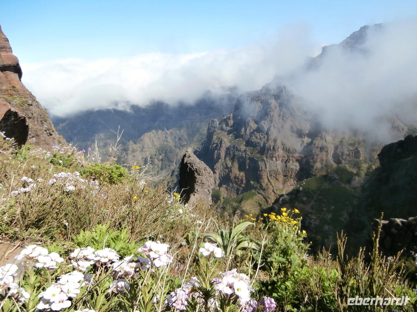 Wir wandern entlang der typischen künstlichen Bewässerungskanäle, der Levadas, erfreuen uns an der Pflanzenvielfalt und Blumenpracht Madeiras und erwandern den höchsten Gipfel, den Pico do Ruivo.