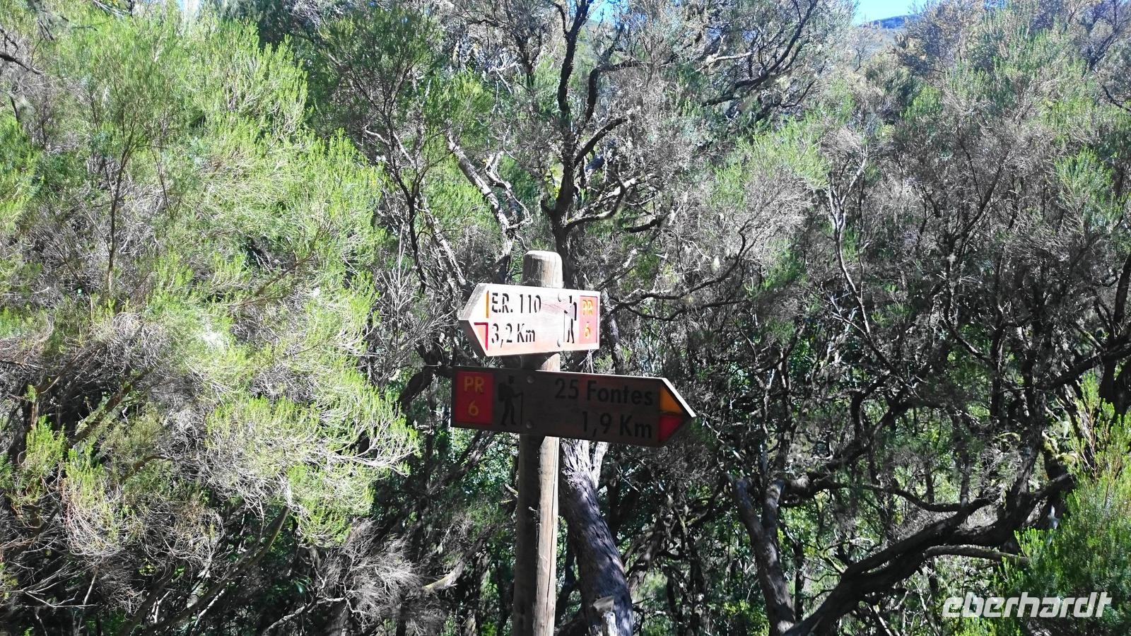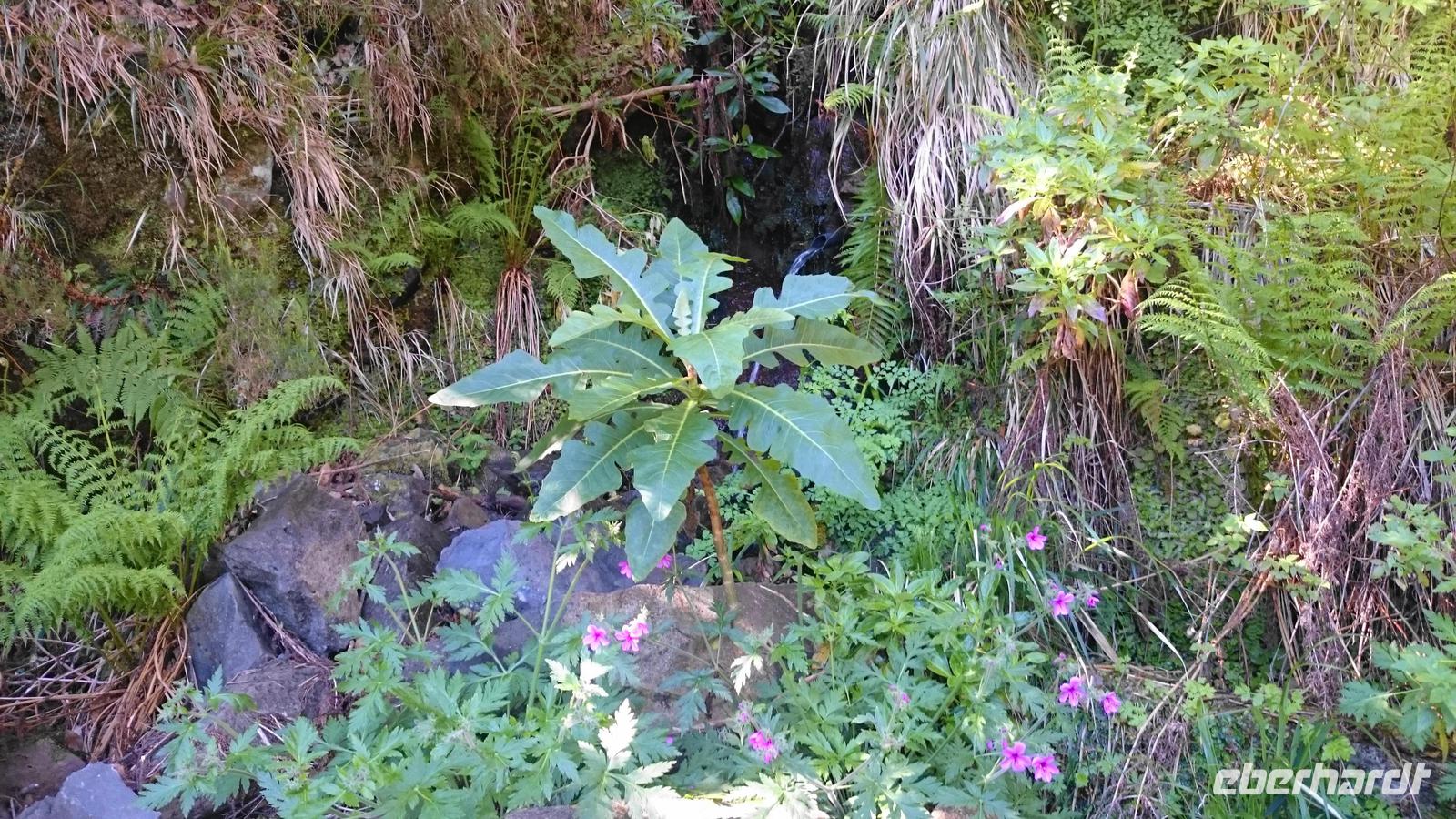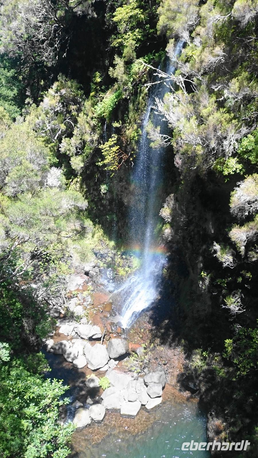 Unsere heutige Tour im Quellgebiet des Hochlands gehört zu den schönsten und beliebtesten Levada-Routen der Insel. Los ging es auf der kargen Hochebenen Paúl da Serra, von wo uns der romantische Weg durch die dichte Vegetation von Erikasträuchern und Lorbeerwald, vorbei an riesigen Löwenzahnpflanzen und Farnen entlang der "Levada do Risco" zu den Wasserfällen von Risco führte. Entlang der "Levada der 25 Quellen" gelangten wir zum Ursprung der 25 Quellen, wo wir uns am kühlen Wasser mit einer beträchtlichen Anzahl von Wanderern aus aller Herren Länder zur Mittagspause niederließen.