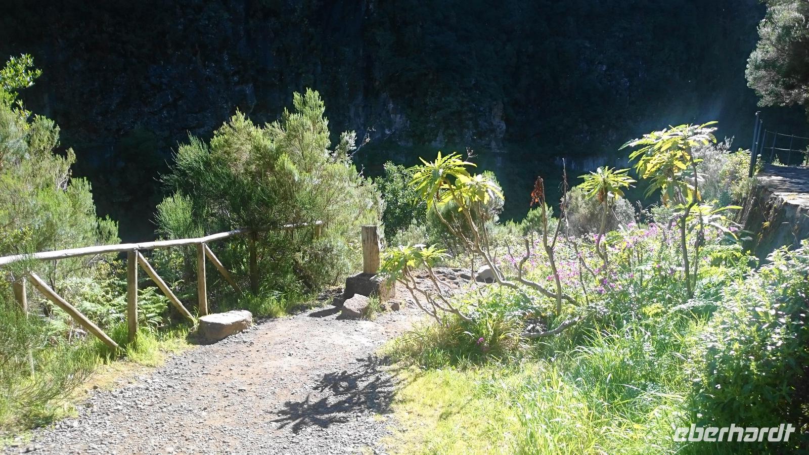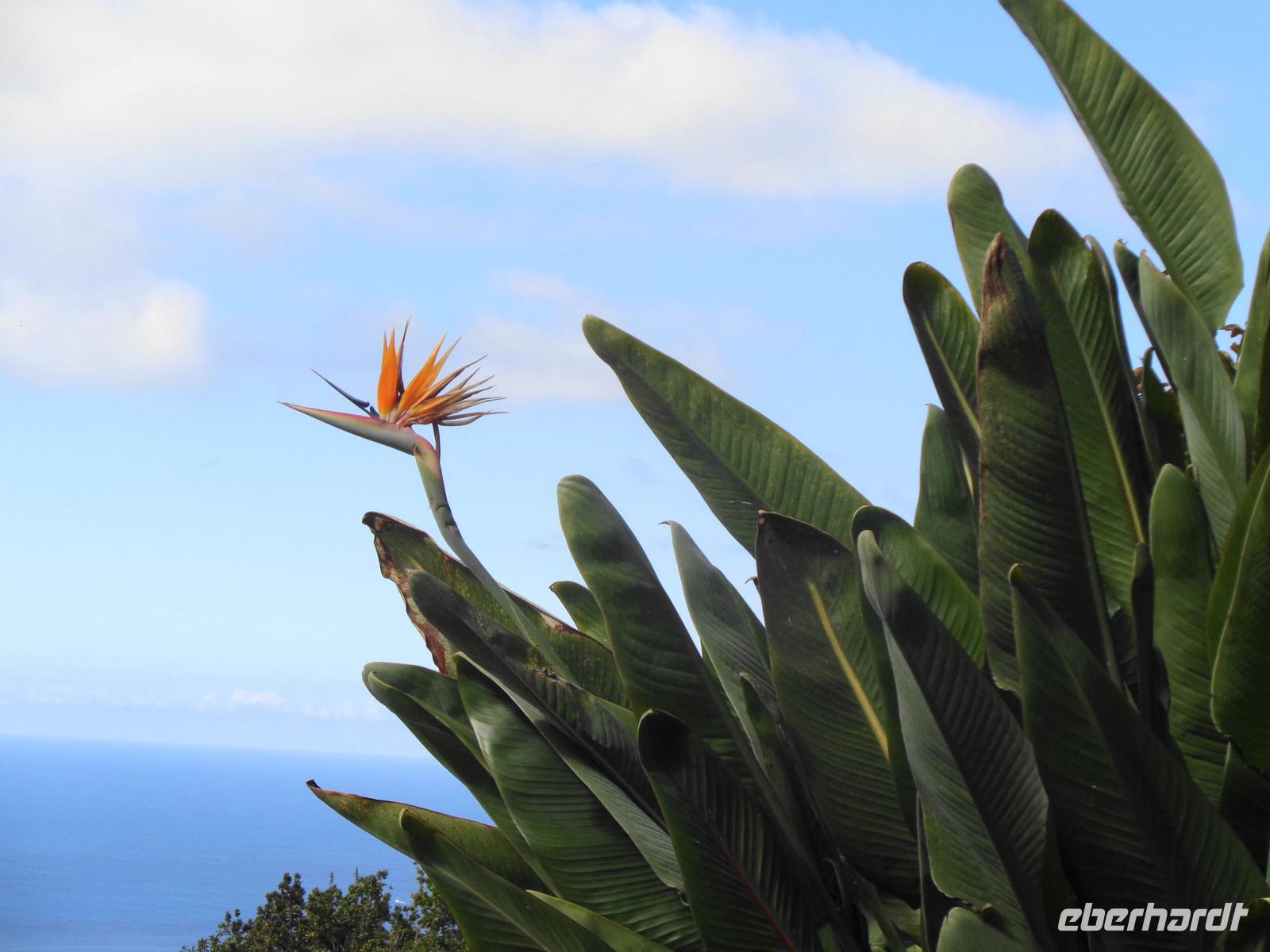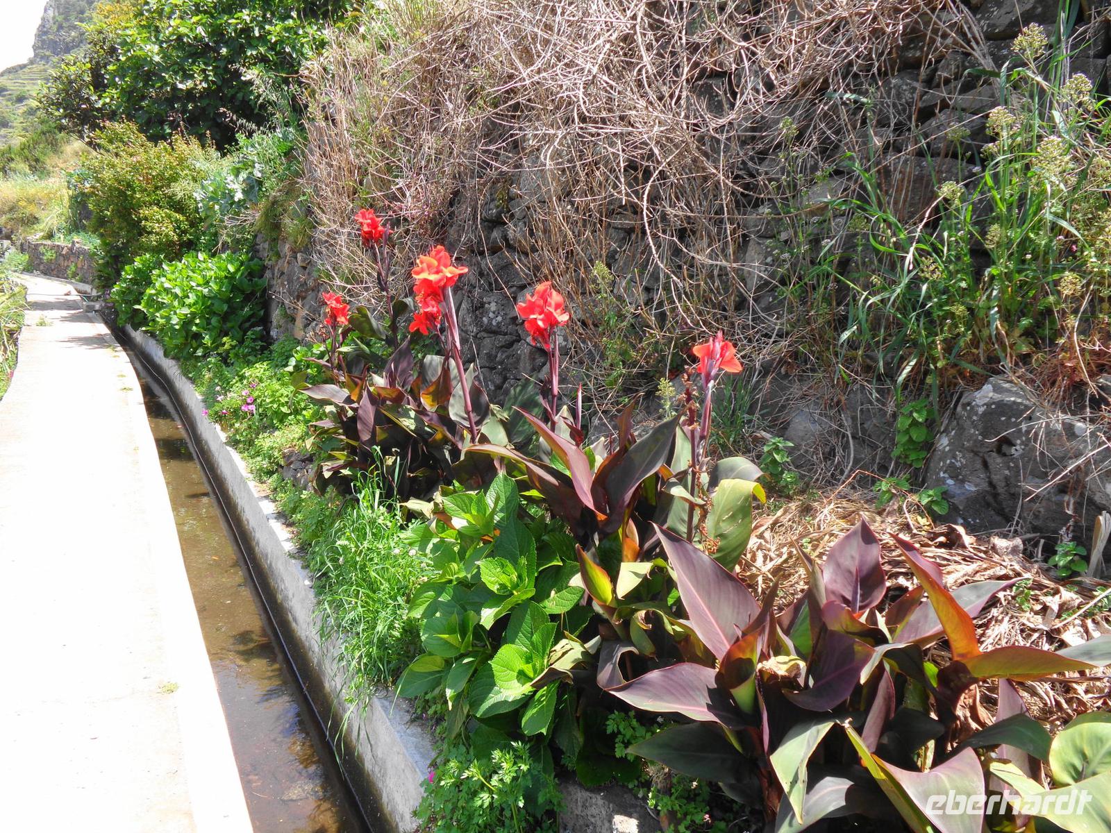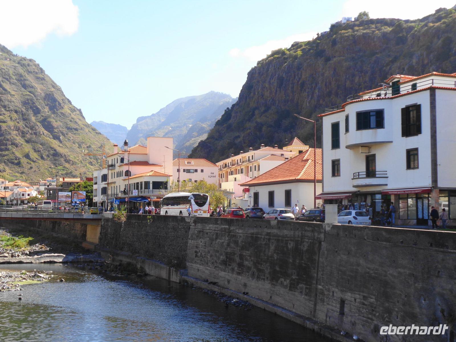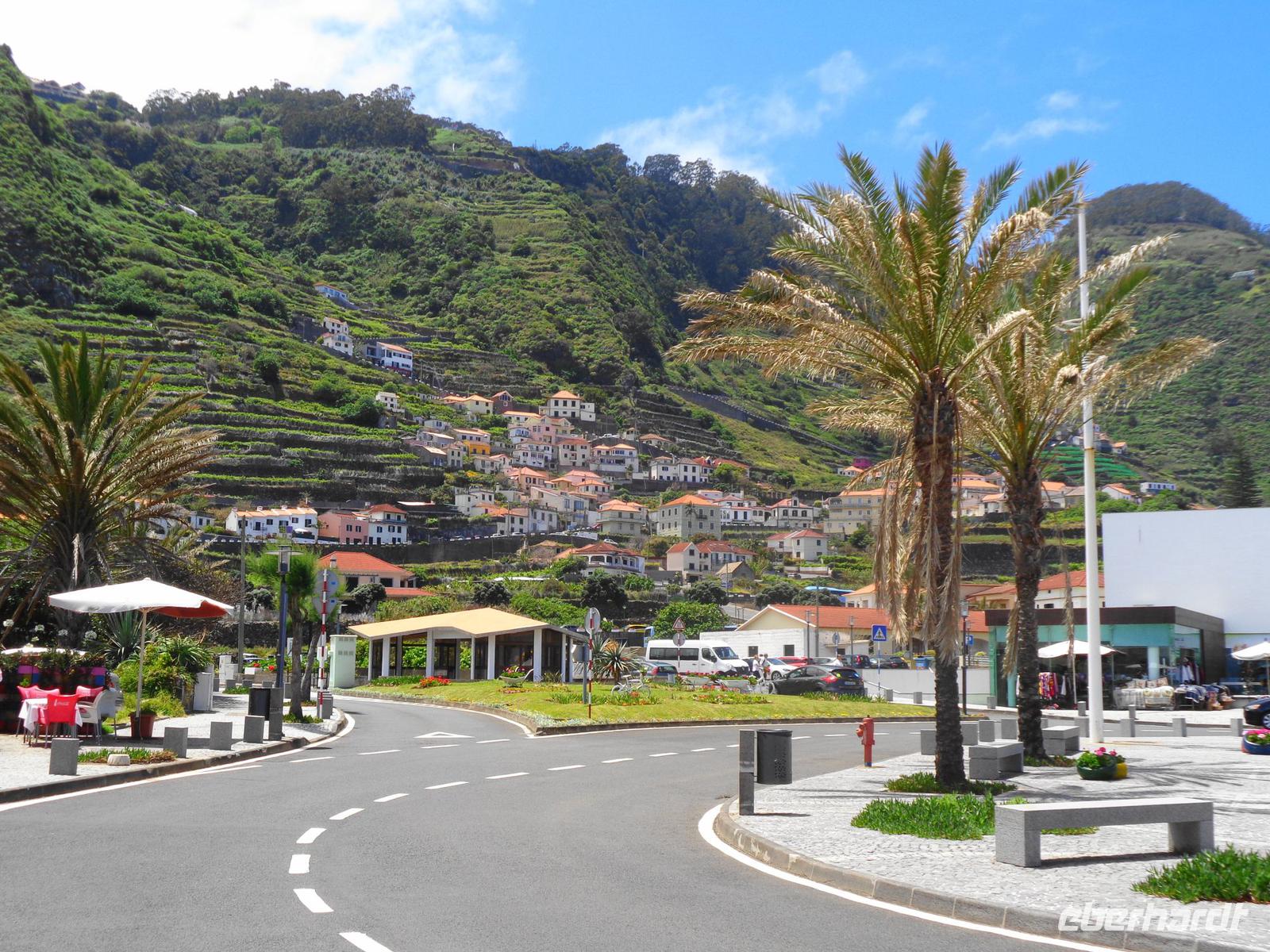 Weiter ging es zur längsten und tiefsten Schlucht Madeiras, der Ribeira da Janela, unserem nächsten Fotostopp. Beim Aussichtspunkt „Miradouro da Ribeira da Janela" boten sich atemberaubende Ausblicke auf die Dörfer Seixal, São Vicente und Ponta Delgada und auf die „Rocha da Janela", eine bizarre Felsformation vor der Nordküste. Wegen des großen Blumenfestes auf der Insel war der Aussichtspunkt liebevoll mit Arrangements aus frischen Blumen und sogar einem Eselchen geschmückt. Mit dem berühmten Blumenfest, der „Festa da Flor", wird auf der Insel traditionell der Frühling begrüßt. Der Höhepunkt des Festes, der große Blumenkorso, zieht jedes Jahr tausende Besucher an.