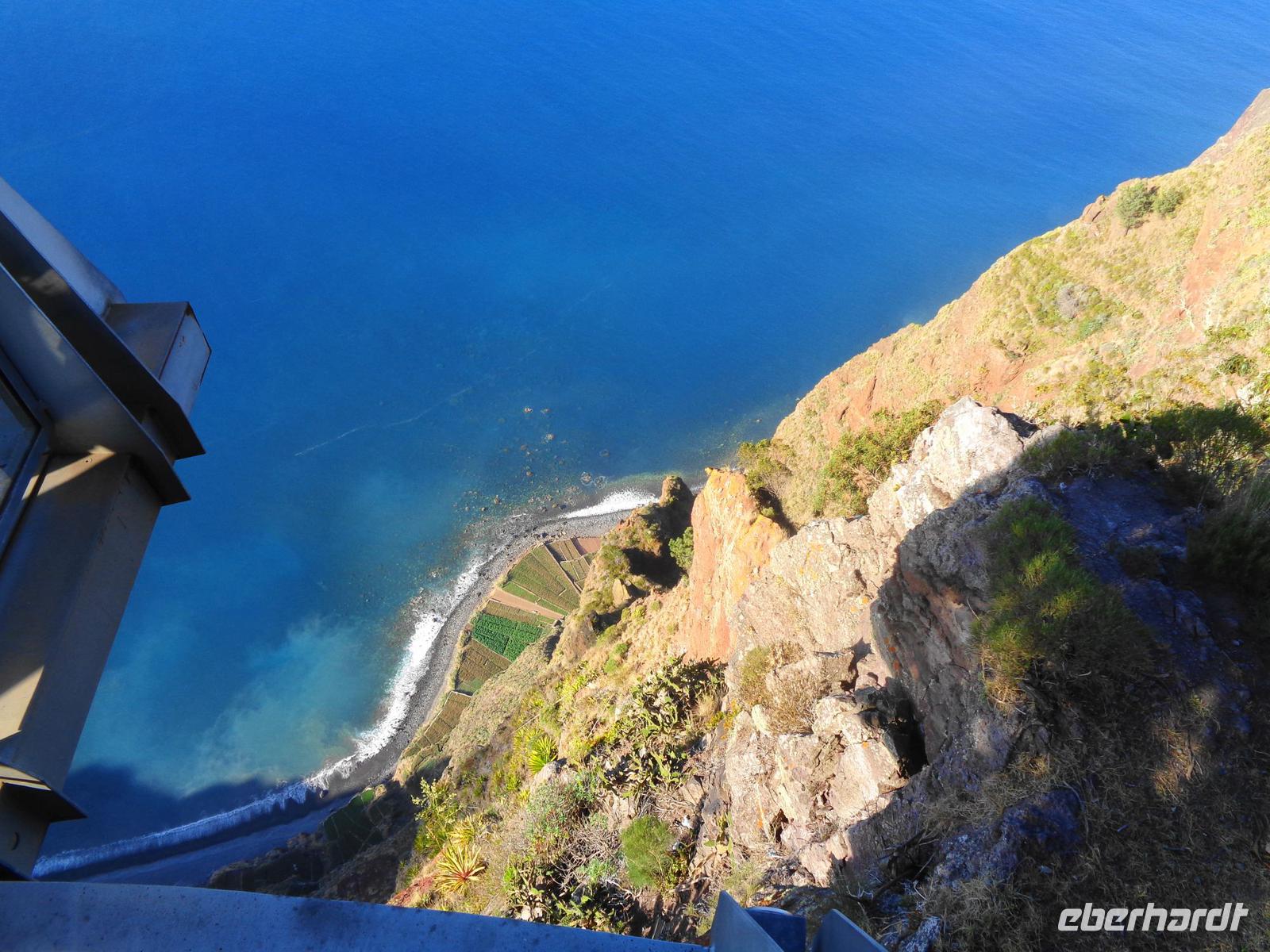 Unser erster Stopp war die Aussichtsplattform über dem Cabo Girão. Es gehört schon ein gehöriges Maß an Schwindelfreiheit dazu, aus einer Höhe von 578 m von der gläsernen Plattform aus auf die atemberaubende Steilklippe unter seinen Füßen zu blicken!