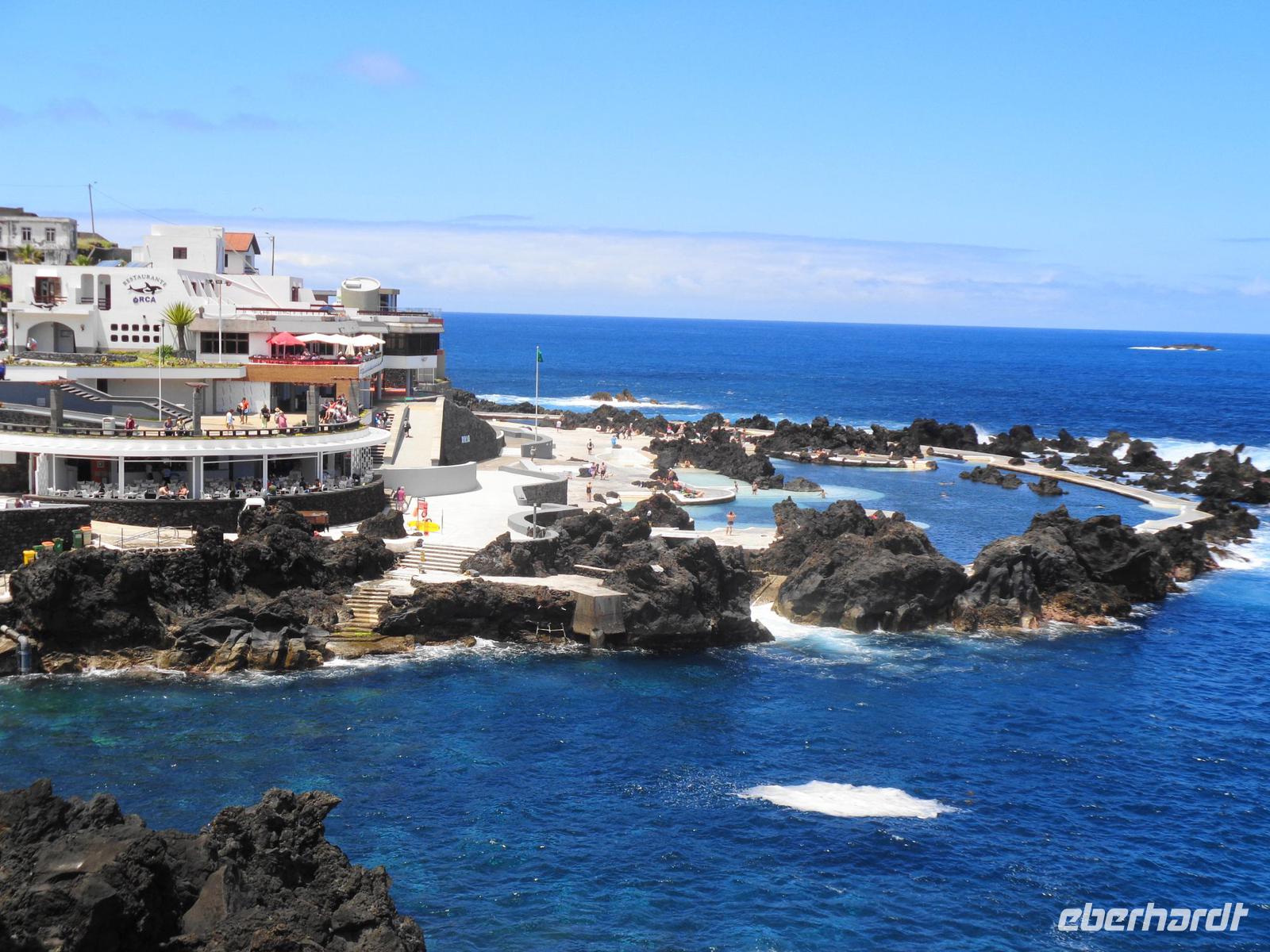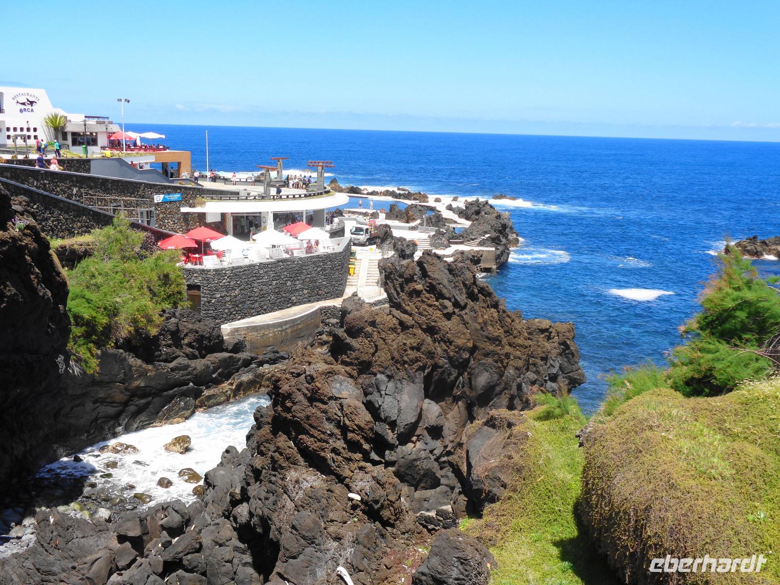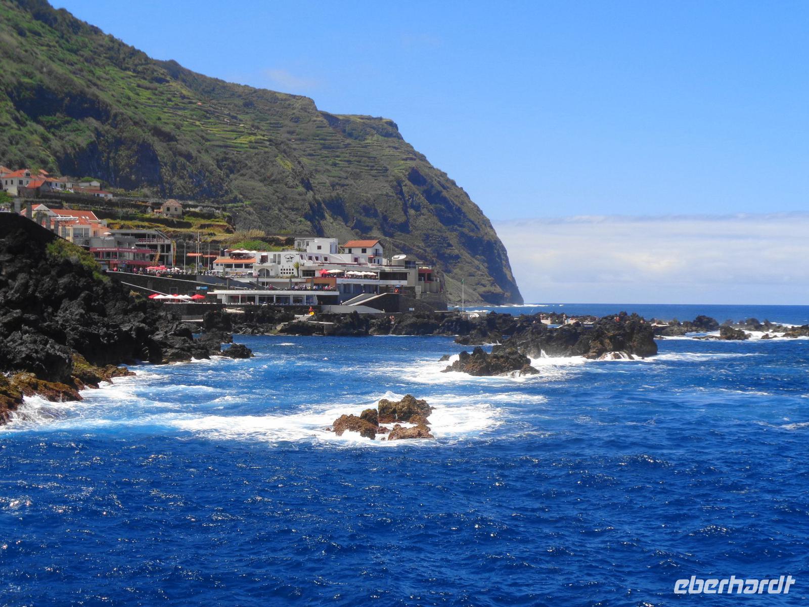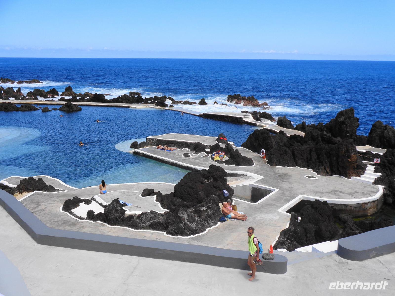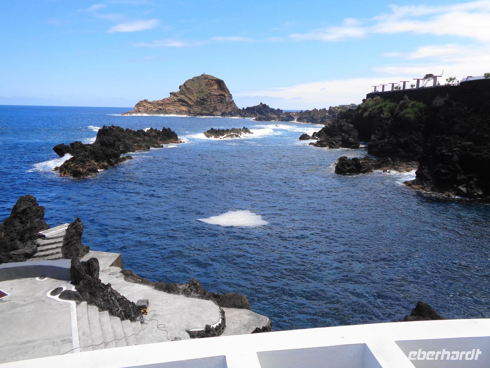 Nach Ankunft in Porto Moniz gönnten wir uns zunächst ein leckeres Mittagessen im Restaurant „Mar a Vista", wo Marco schon für uns reserviert hatte. Besonders charakteristisch für das kleine Städtchen im äußersten Nordwesten der Insel sind die natürlichen, vulkanischen Badebecken, die sich im Halbrund vor der einladenden Promenade erstrecken. Einige unserer Gäste gönnten sich tatsächlich ein erfrischendes Bad im klaren Wasser der Naturbecken.