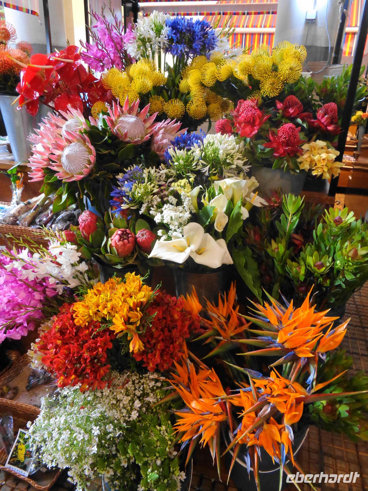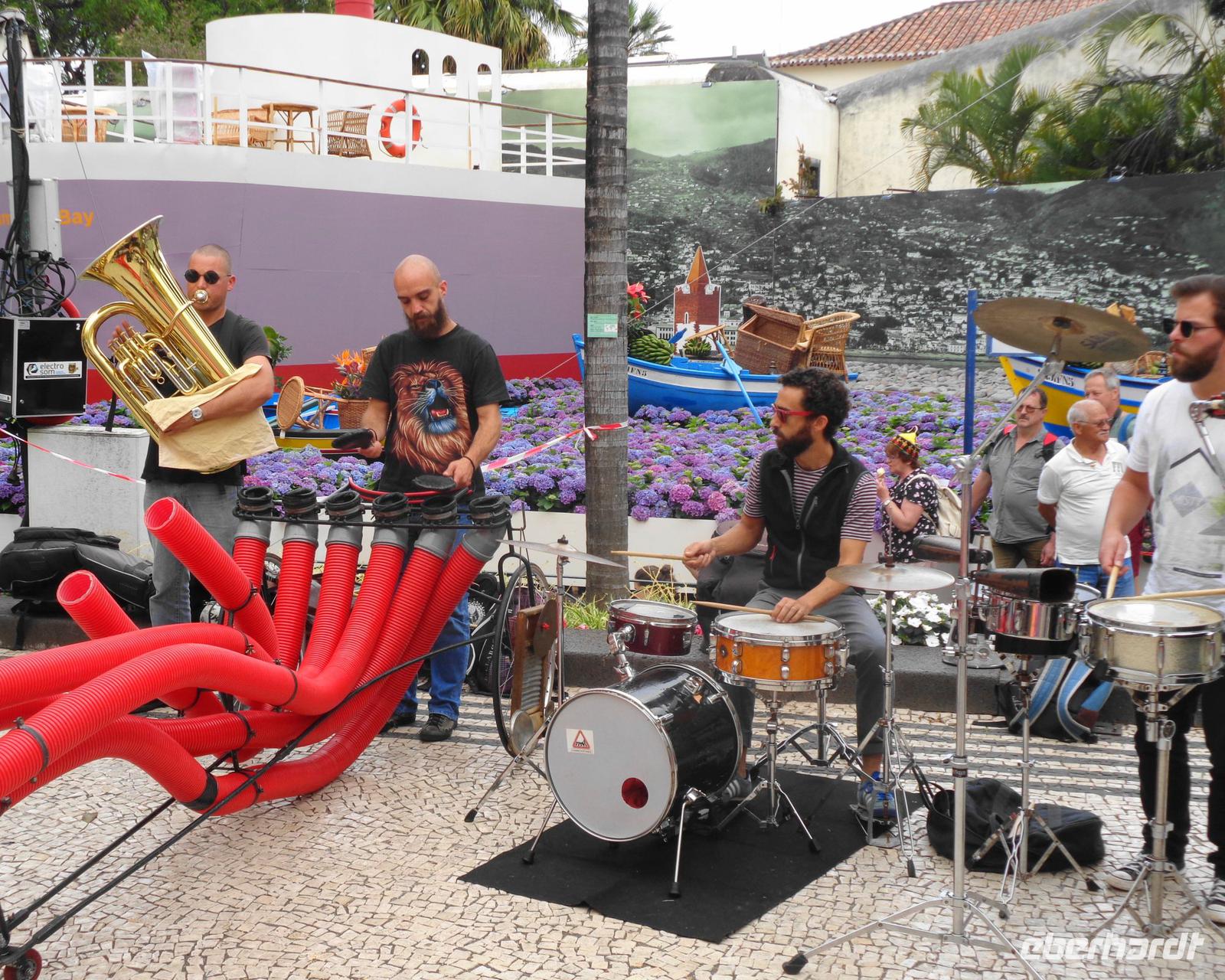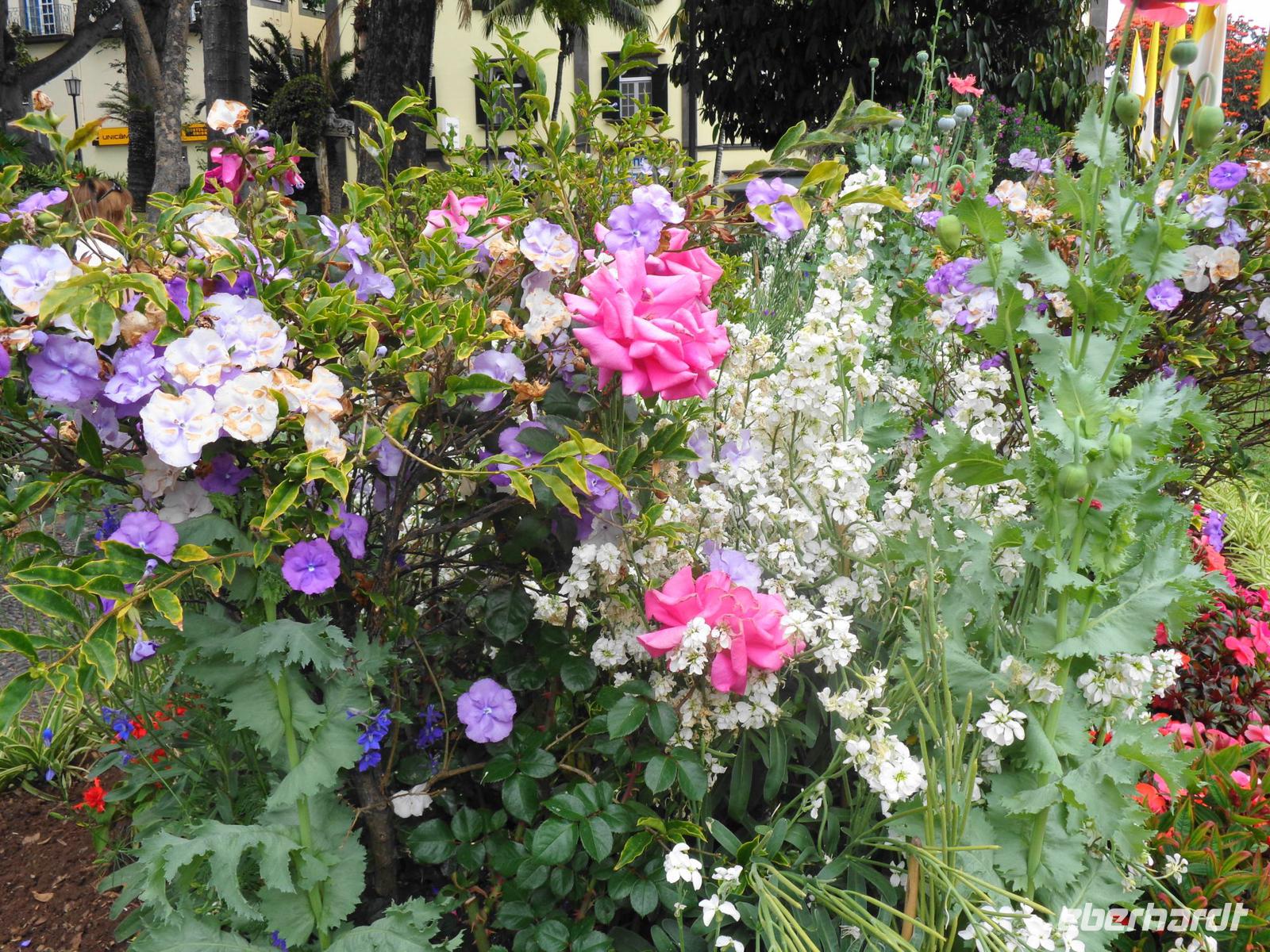 Danach spazierten wir durch die mit bunten Blumenarrangements geschmückte Fußgängerzone zu Blandy's Wine Lodge. Hier, im Herzen der wunderschön dekorierten Innenstadt, herrschte wegen des Blumenfestes reges Treiben. Auftritte von Musikgruppen und Verkaufsstände luden zum Verweilen ein. Nachdem wir bei Blandy's viel über den Weinanbau auf Madeira erfahren hatten, erwartete uns die Verkostung einiger Sorten des berühmten Madeira-Weines und der köstlichen Pralinen.