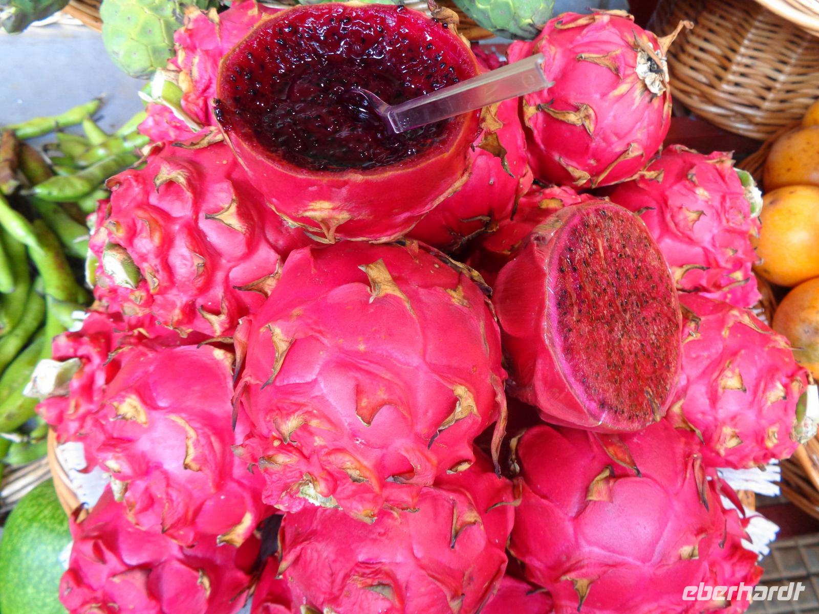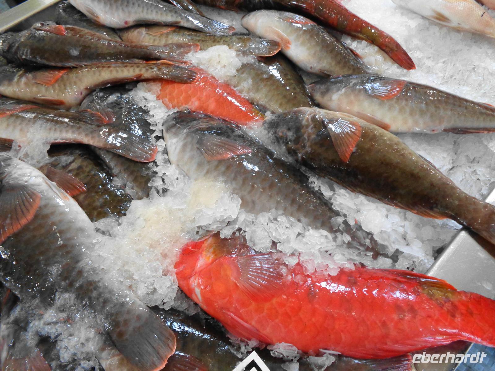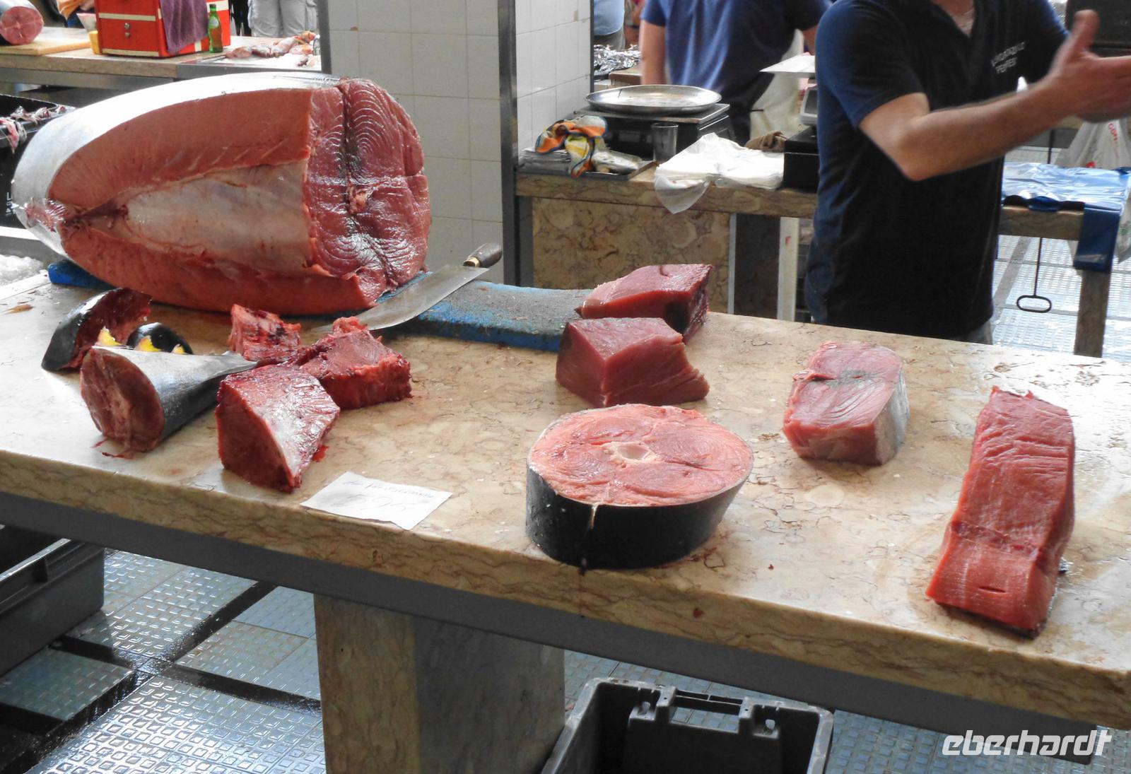 Anschließend fuhr uns unser Bus zur berühmten Markthalle. Bei unserem Rundgang mit Marco wurden uns allerhand köstliche Früchte zum Verkosten angeboten und wir schlenderten an den Ständen mit den herrlichen Früchten, dem erntefrischen Gemüse, den Gewürzen und Pflanzen entlang zum Bereich der Fischhändler. Zum Glück schmeckt der schwarze Degenfisch sehr viel besser, als er aussieht!