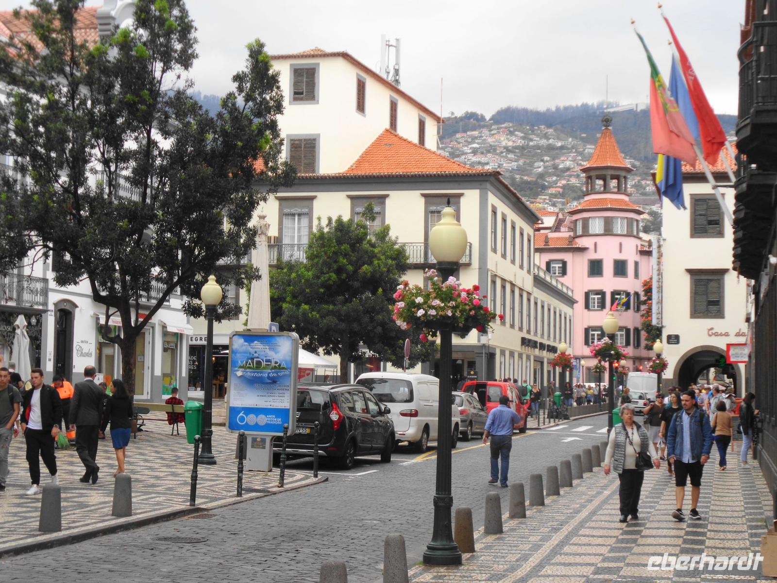 Vor dem Hotel halten die öffentlichen Busse ins Zentrum von Funchal und etliche Gäste brachen nach dem Einchecken sofort wieder auf, um vom Zentrum aus mit der Seilbahn nach Monte zu fahren oder sich am geschäftigen Treiben in der Fußgängerzone zu beteiligen. Da in der zweiten Wochenhälfte das Abendessen nicht mehr inkludiert war und alle irgendwo unterwegs waren, fand das Abendessen auf Wunsch der Gäste heute in Eigenregie statt. In der quirligen Innenstadt von Funchal ist es nicht schwer, geeignete Lokale zu finden.