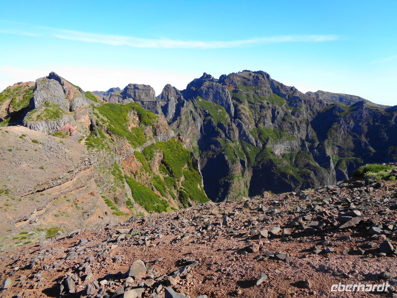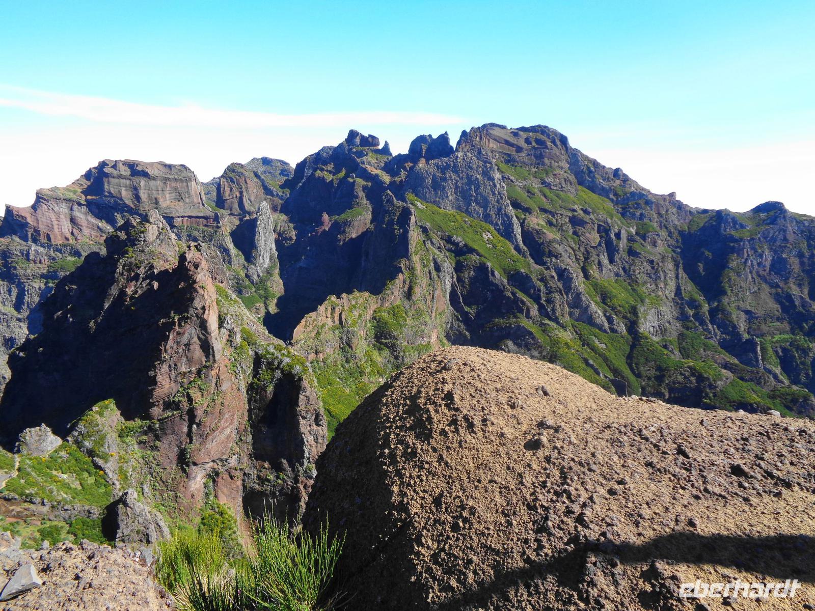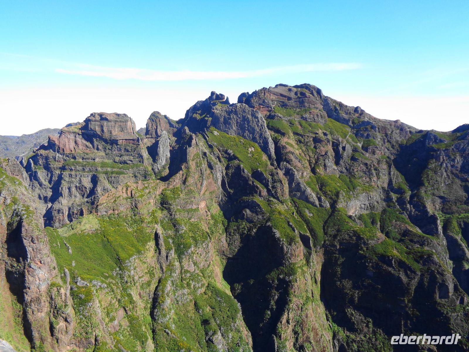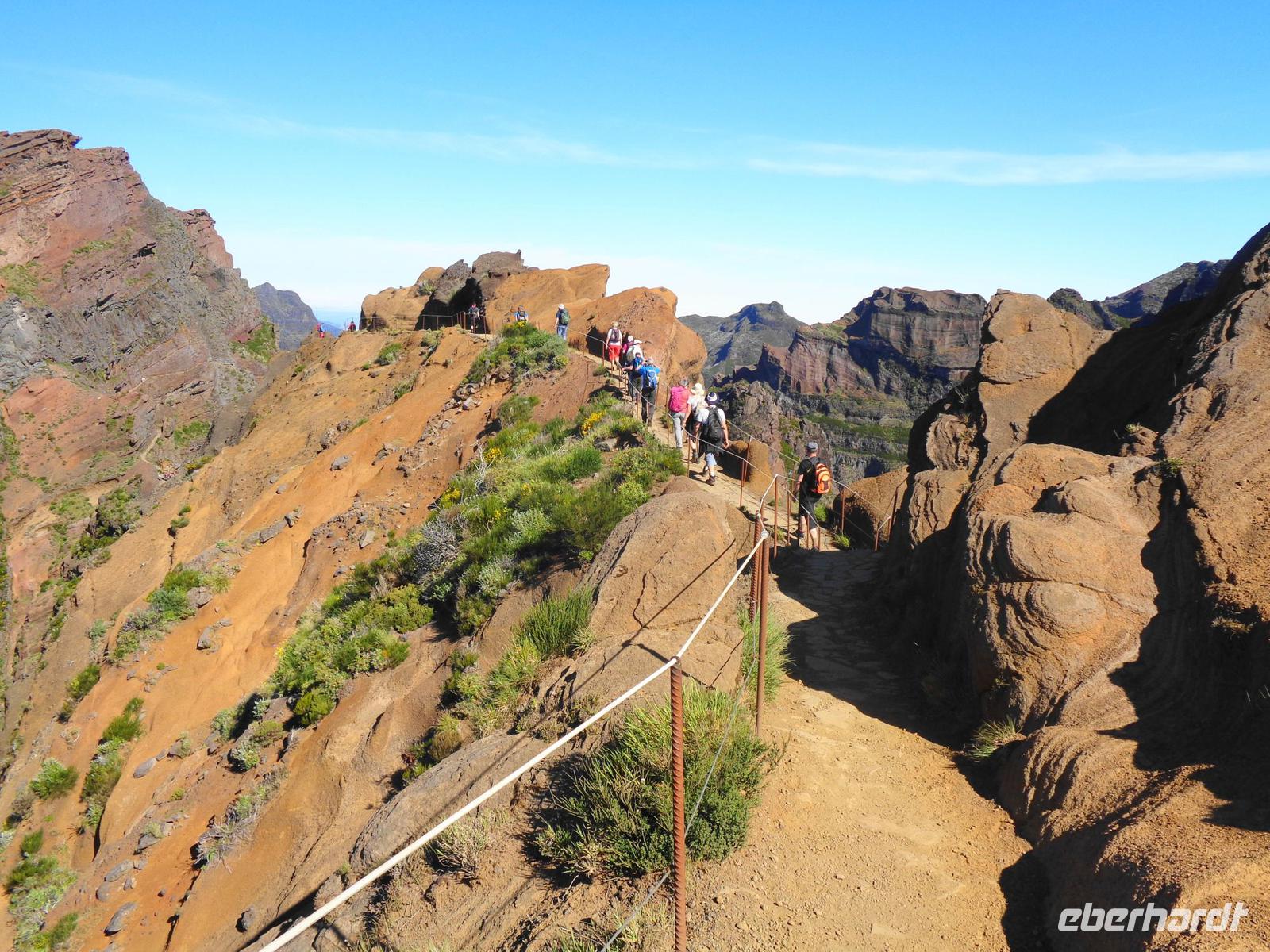Heute stand der unumstrittene Höhepunkt jeder Wanderreise auf Madeira auf dem Programm: der Panoramaweg vom 1818 m hohen Pico do Arieiro zum Pico Ruivo, dem mit 1862 m höchsten Gipfel der Insel. Der ehemals gefährliche Weg ist inzwischen gut ausgebaut und kann von schwindelfreien und trittsicheren Wanderern mit etwas Kondition gut bewältigt werden.