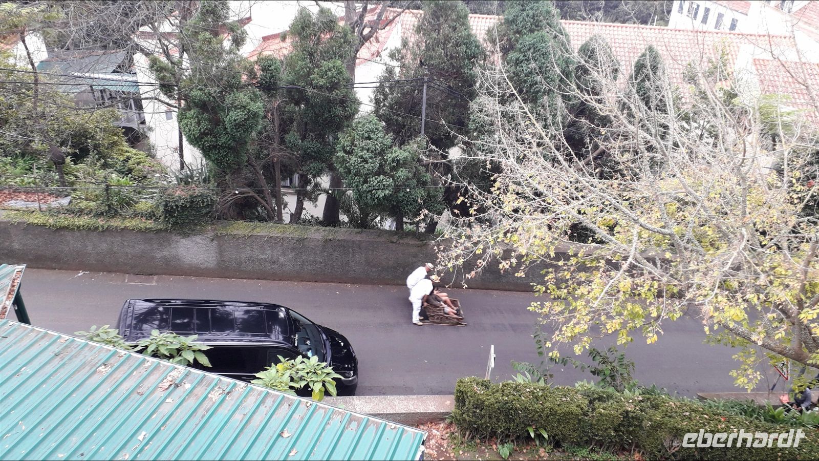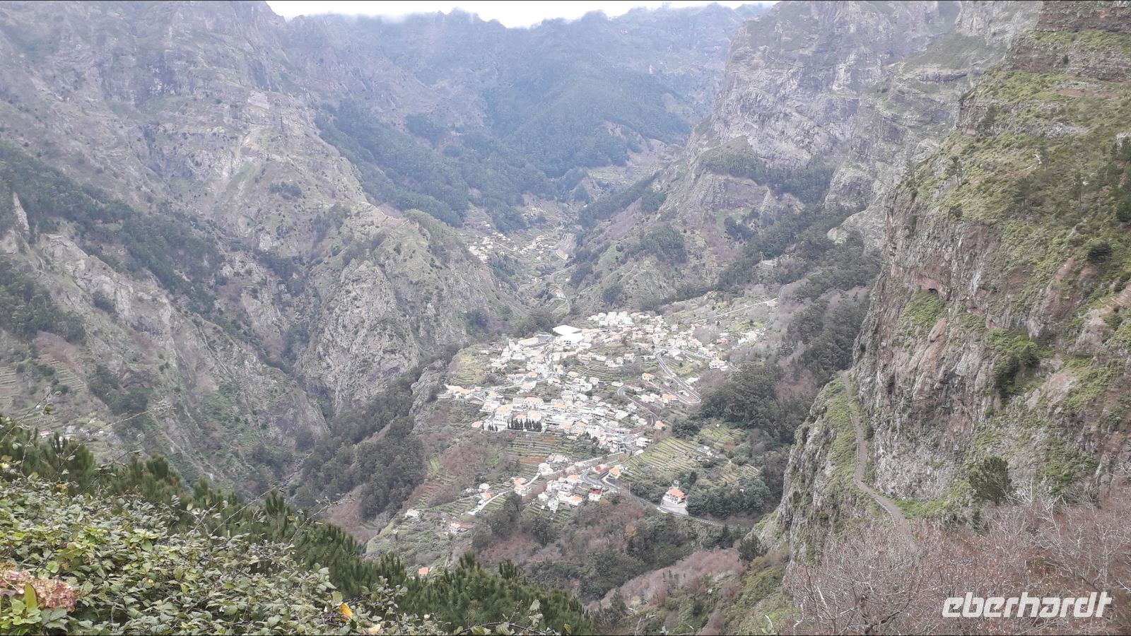 Danach nehmen wir eine kurvenreiche Straße nach Eira do Serrado, das 1094 Meter hoch liegt. Hier schaut man nach unten in das Dorf Curral das Freiras, das sogenannte Nonnental. Genau in diesem Tal sollen sich viele Nonnen vor den Piraten versteckt haben. Dieses Tal ist nicht durch einen Vulkanausbruch entstanden, so Paula. Als wir wegfahren, fängt es an, zu regnen.