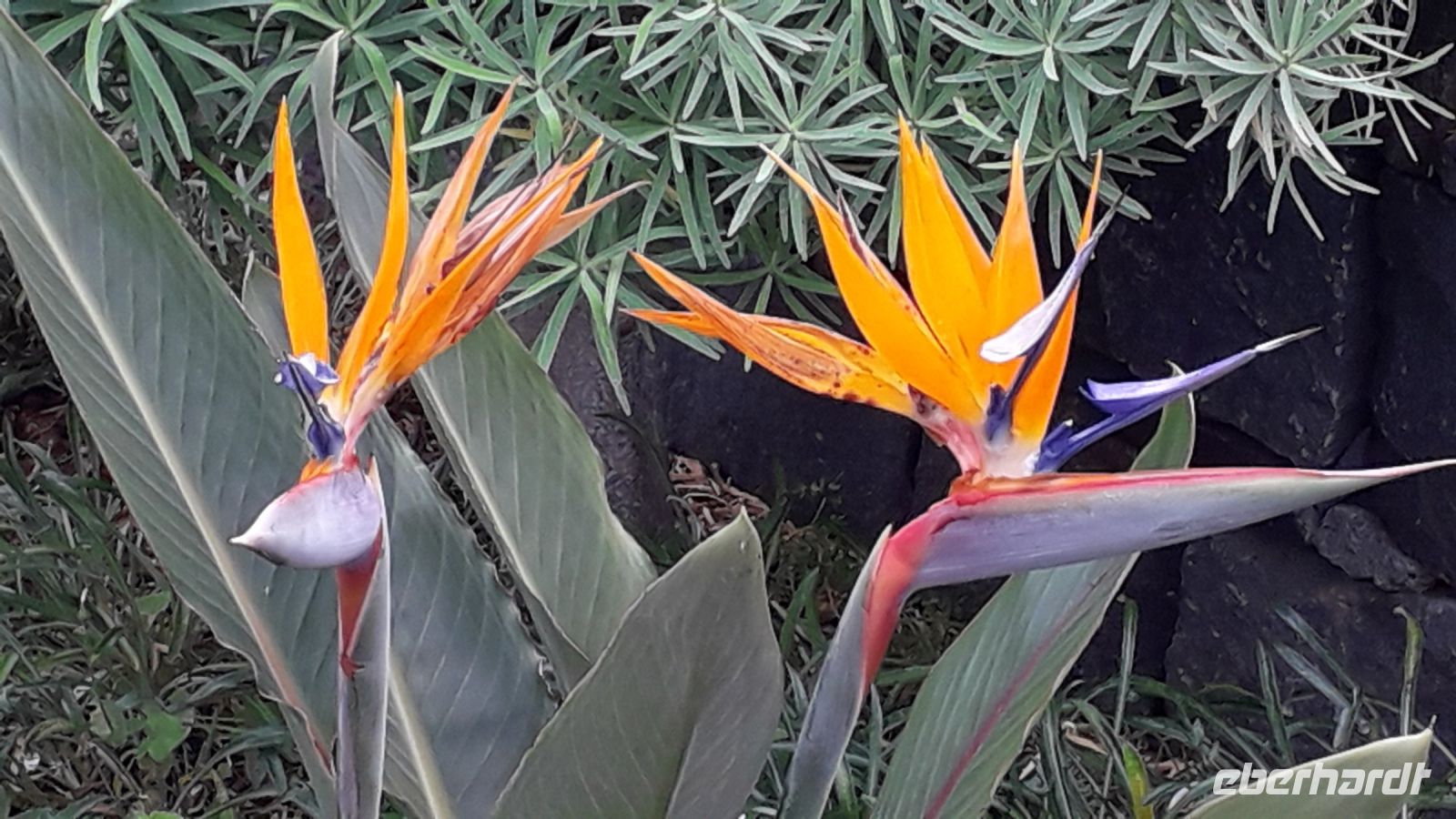Der heutige Morgen ist ganz der Botanik Madeiras gewidmet. Als erstes laufen wir fast zwei Stunden lang durch den artenreichen und sehr gut gepflegten Garten, wo die Weinhändlerfamilie Blandy zu Hause ist. Zahlreiche Kamelien-, Strelitzien-, Magnolien-, Bromelien- und Proteablüten, etc. sowie viele exotische Bäume aus der ganzen Welt wurden hier gepflanzt. Das hiesige Klima lässt Pflanzen prächtig gedeihen. Nicht umsonst nennt man sie - die Blumeninsel! Ein Teehäuschen, ein Golfplatz sowie eine Kapelle sind auch hier zu finden.