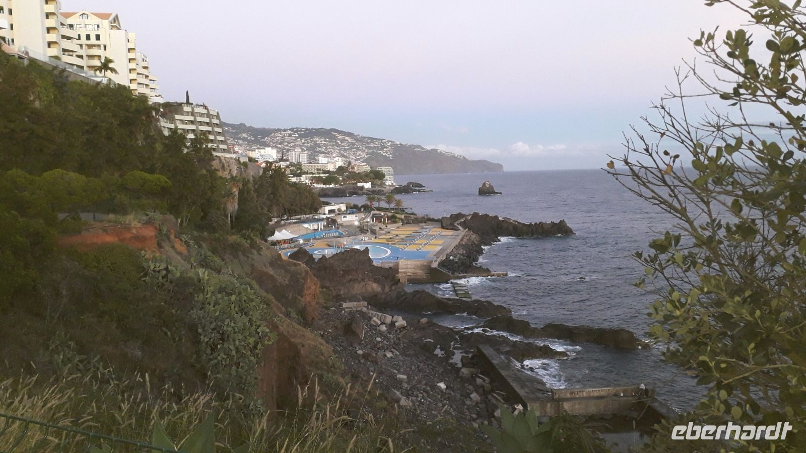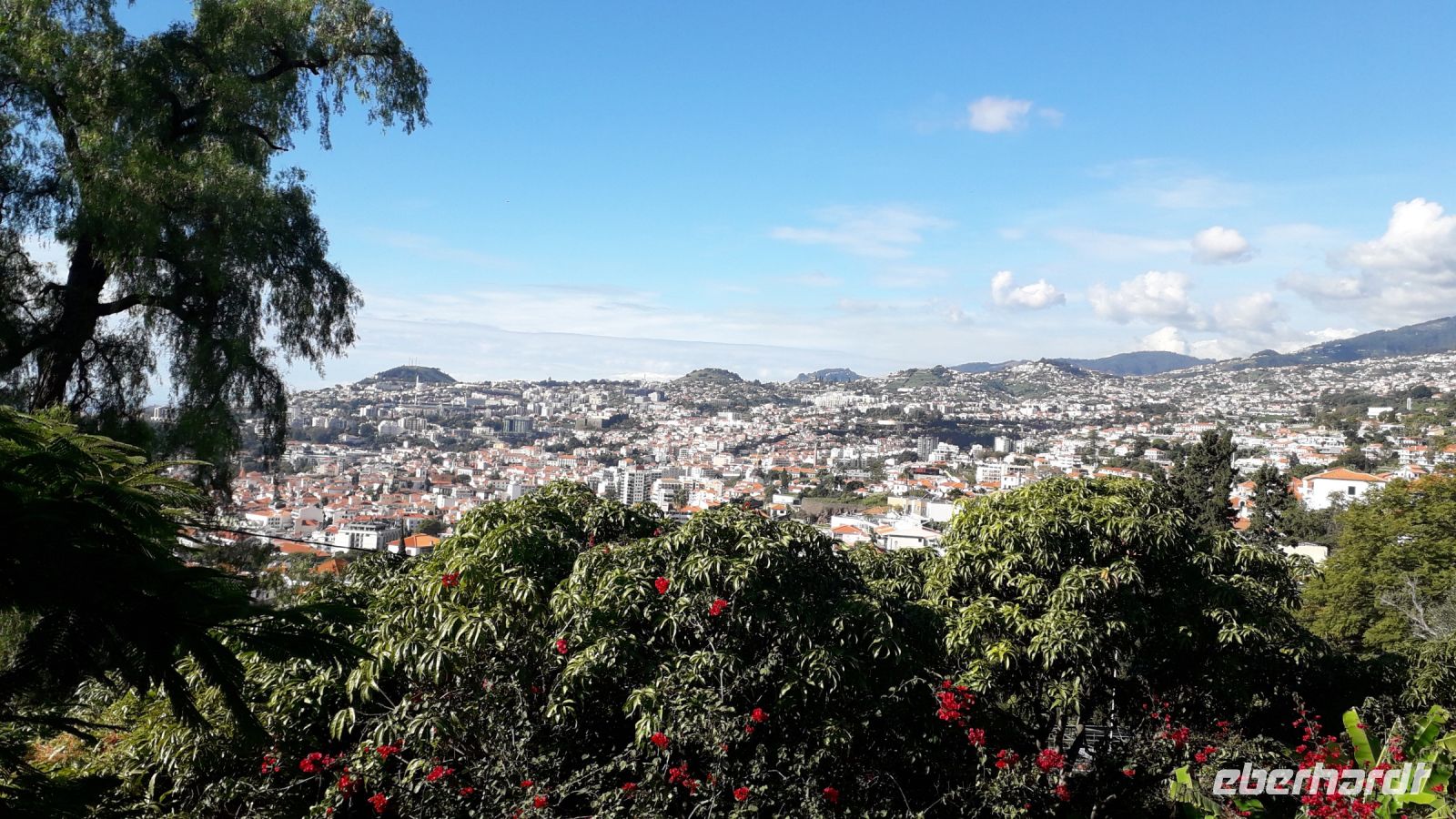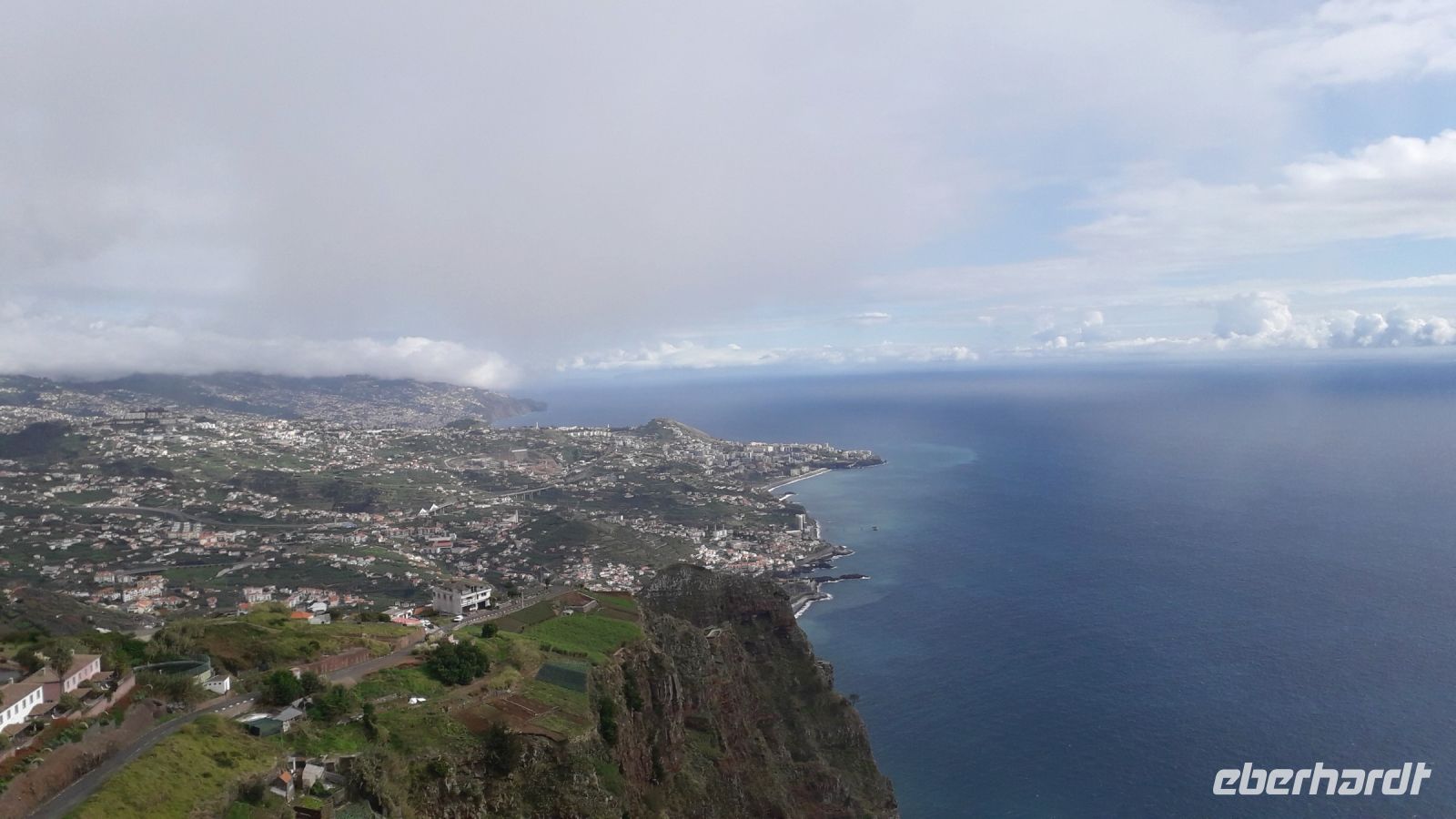 Nach dem Frühstück geht es direkt zum Aussichtspunkt Pico dos Barcelos, von wo man einen guten Blick auf die Hauptstadt Madeiras hat. Es ist etwas bewölkt an diesem Morgen.