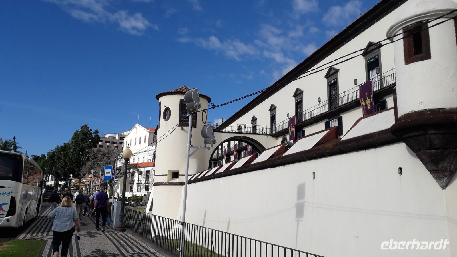 Heute Morgen lernen wir Funchal bei einem Stadtrundgang kennen. Als erstes laufen wir durch eine der ältesten Straßen dieser Stadt - die Rua de Santa Maria: Viele Künstler haben hier Türen bemalt. Danach kommen wir zur Markthalle der Bauern und laufen gemeinsam durch ein Meer von Blumen, Obst und Gemüse. In der Fischhalle unten sehen wir den berühmten Degenfisch. Wir werden ihn noch öfters hier und da probieren.
