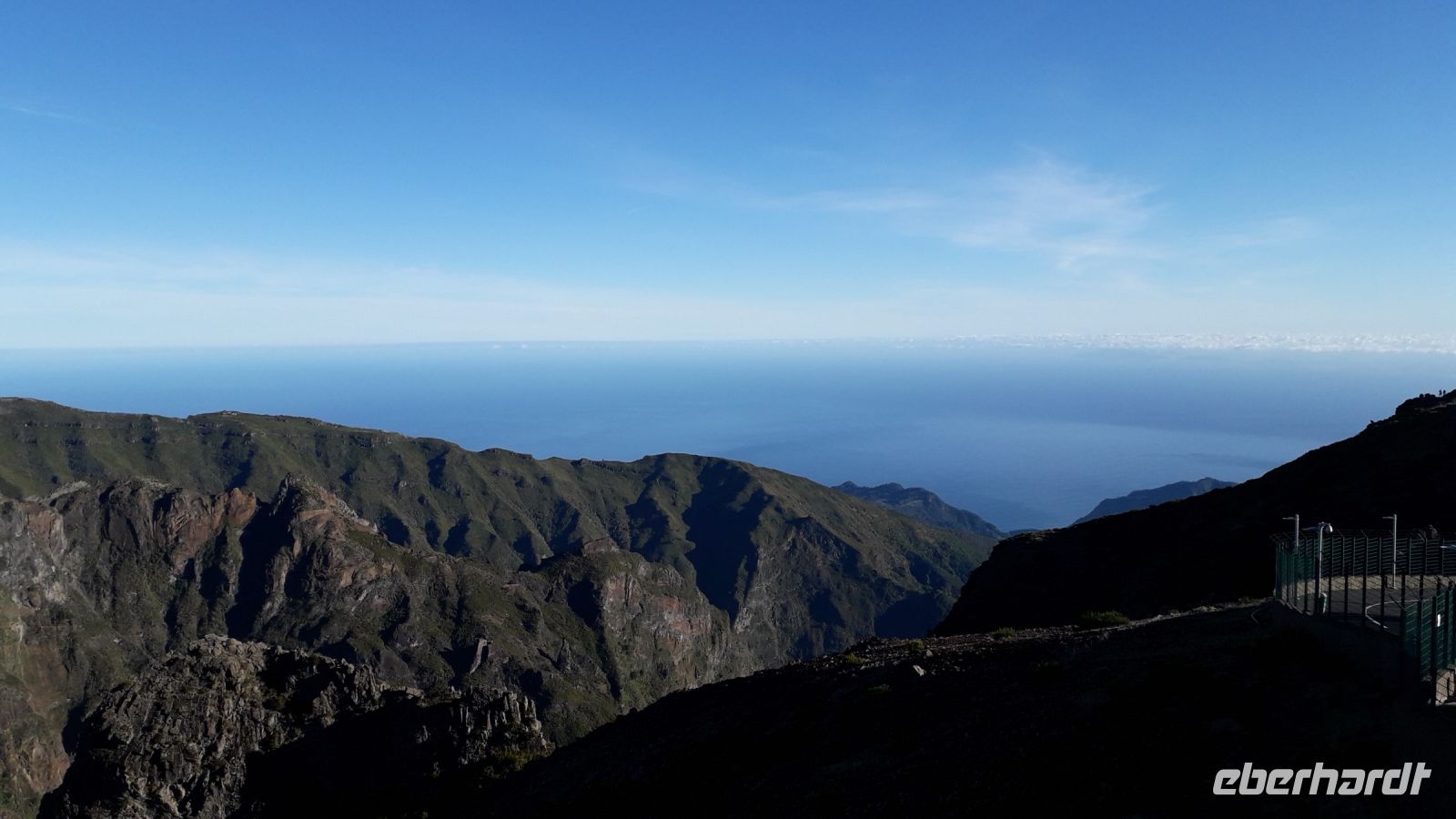 Die Sonne lacht an diesem Morgen, so können wir den Blick vom dritthöchsten Berg Madeiras Pico da Arieiro (1818 Meter) wunderbar genießen. Danach fahren wir zum Poiso Pass vorbei an vielen Heidelbeer- und Erikasträuchen vorbei. In Ribeiro Frio machen wir einen Waldspaziergang entlang der Levadas zu einem Aussichtspunkt Balcones, von wo man einen atemberaubenden Blick auf die drei höchsten Gipfel Madeiras hat.